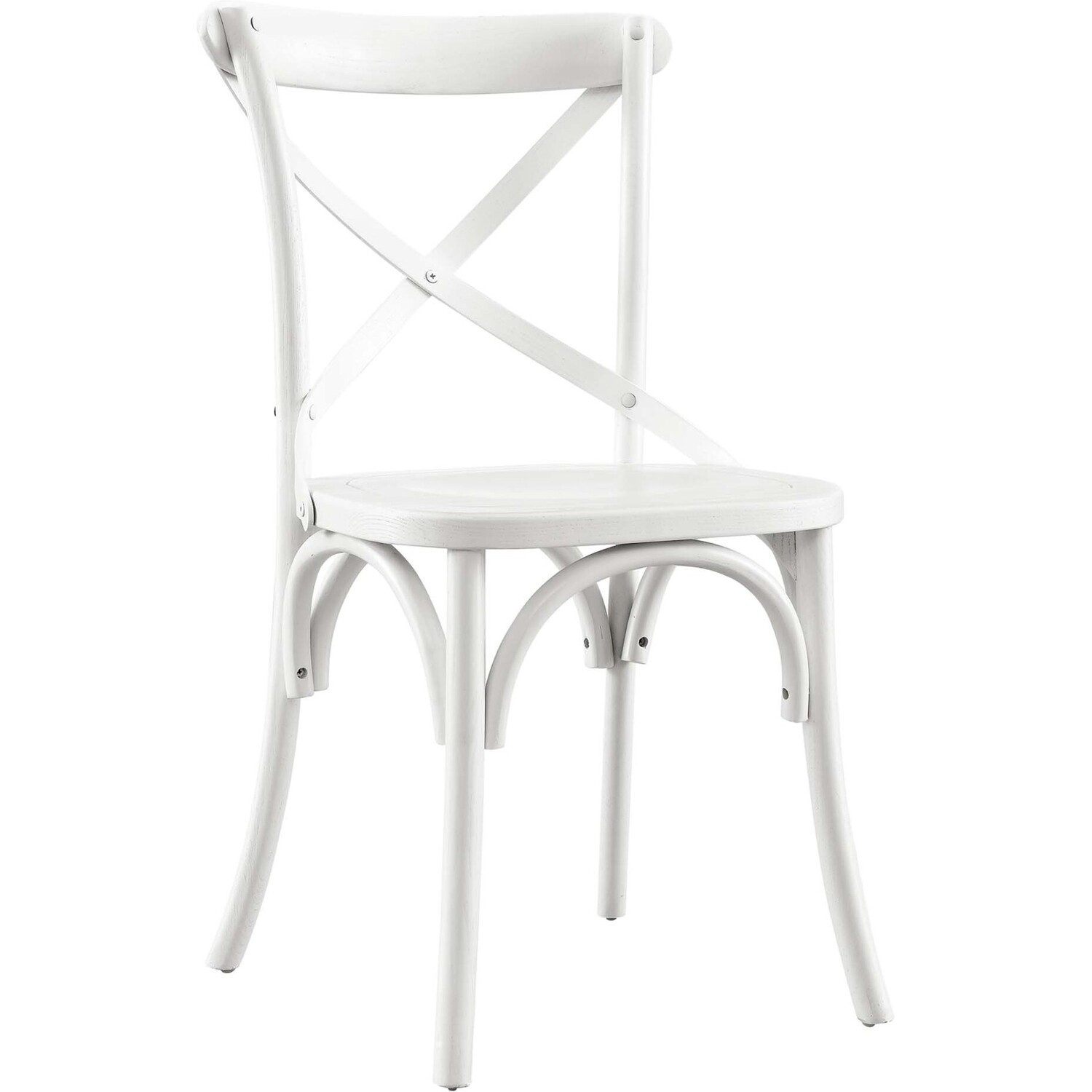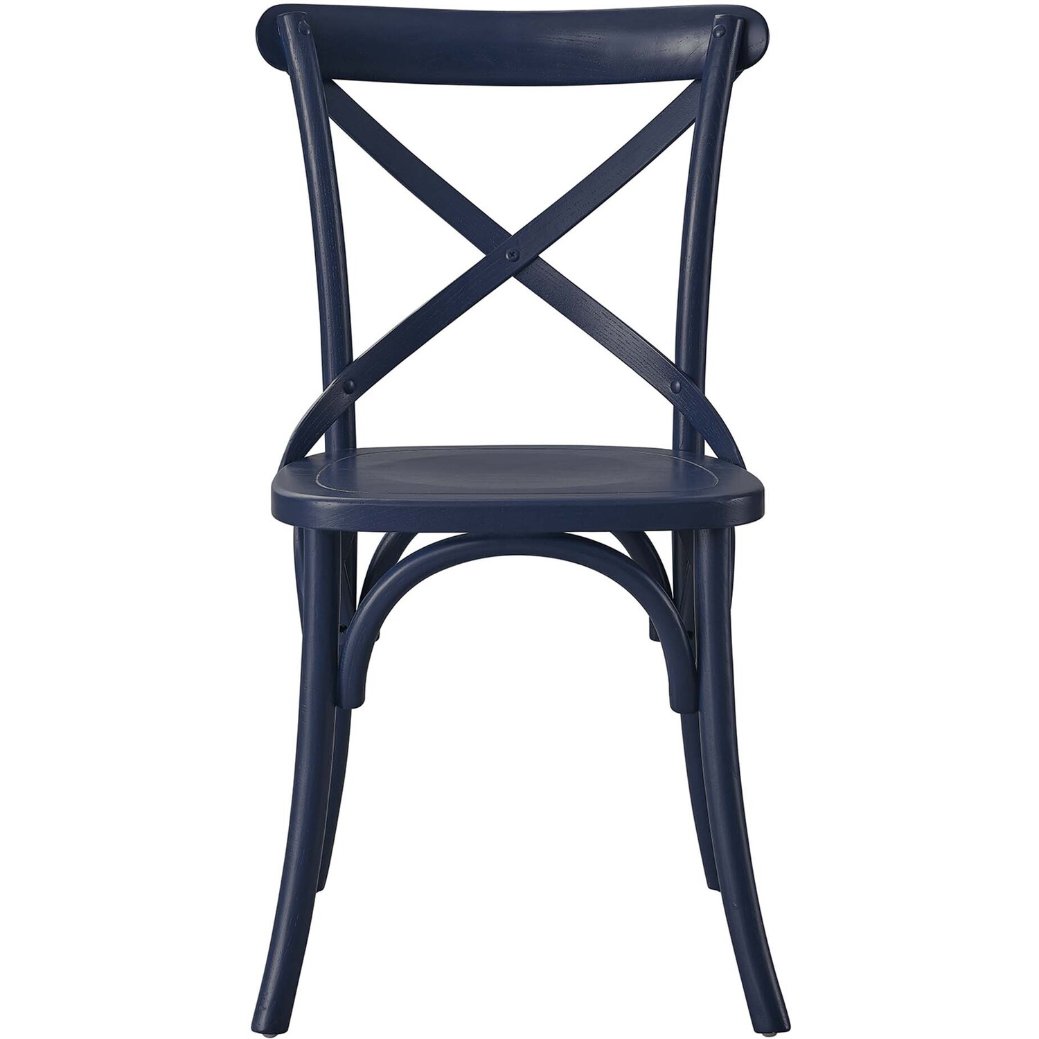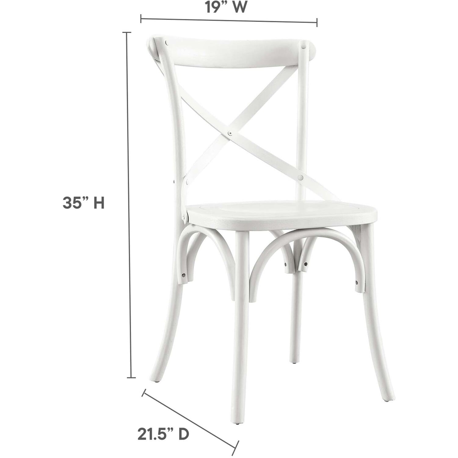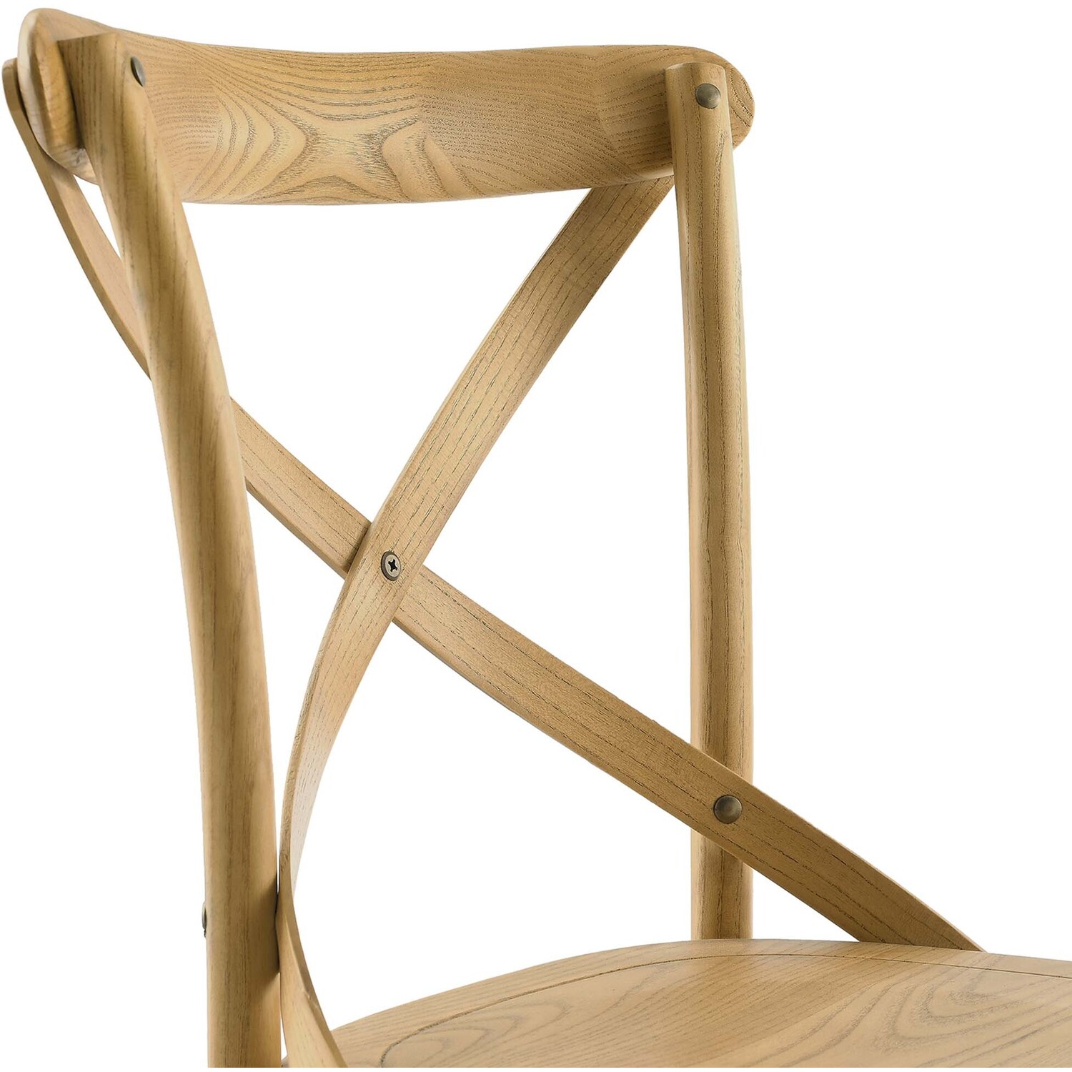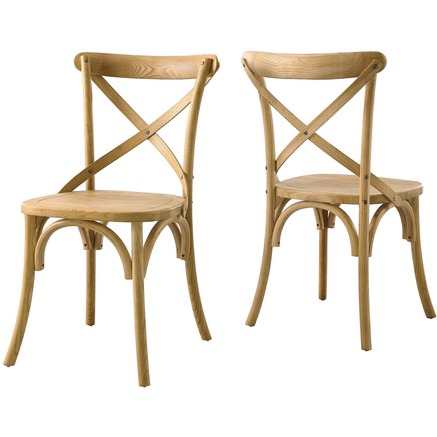 Introduce feelings of nostalgia as you gather around the dining table for a quick breakfast or dinner with friends with the Gear Dining Side Chair. Blending farmhouse charm with modern style, this dining chair features an X-brace back and stretchers between splayed legs. With non-marking foot caps to protect flooring, this side chair is durably crafted with durable elm wood for a sturdy construction built to last. Make a statement in your dining space or kitchen nook with this versatile wood dining chair that can also be used as an accent chair in a living room or desk chair in a home office. Weight Capacity: 330 lbs.Modern Farmhouse Dining Side Chair