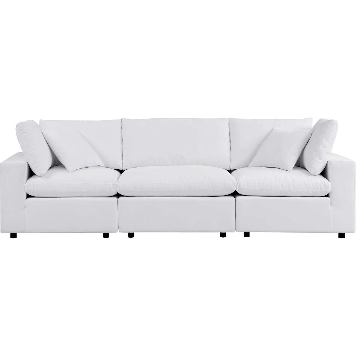 A haven for cozy relaxation right in your own backyard, Commix features plush comfort, a clean-lined design, and a spacious profile that makes an attractive statement on the porch, patio, or by the poolside. Made for sprawling out in the sun or curling up with a good book, this patio sofa features generously padded cushions covered in water-repellent and UV-resistant Sunbrella® fabric covers making them ideal for your outdoor space. This outdoor three-seater sofa features an all-weather construction with a powder-coated aluminum frame and non-marking foot caps to protect flooring surfaces. Beckoning guests to sit and stay a while, the Commix Outdoor Patio Collection is perfect for al fresco entertaining or lounging amidst warm weather. Each Seat Weight Capacity: 300 lbs.Outdoor Patio Sofa
