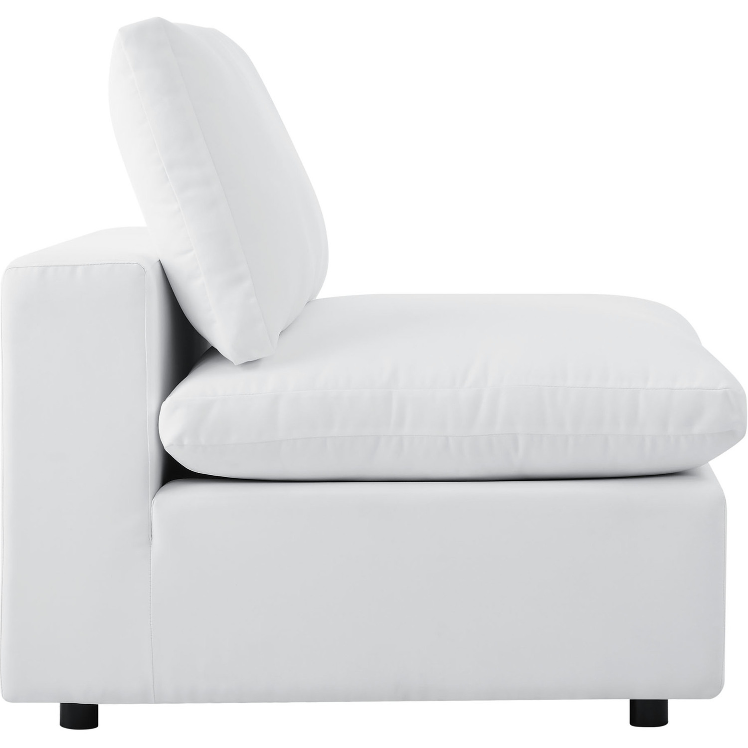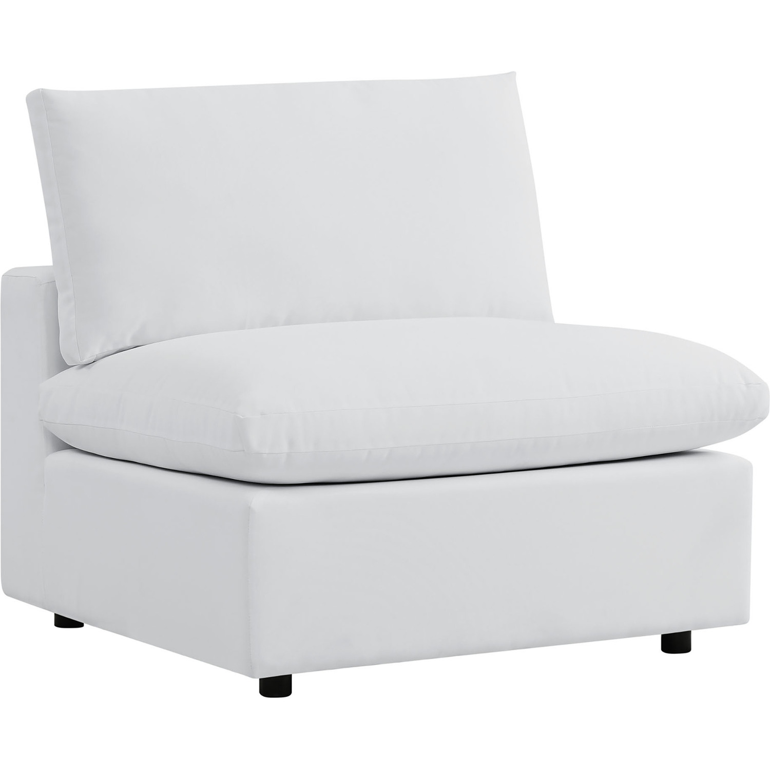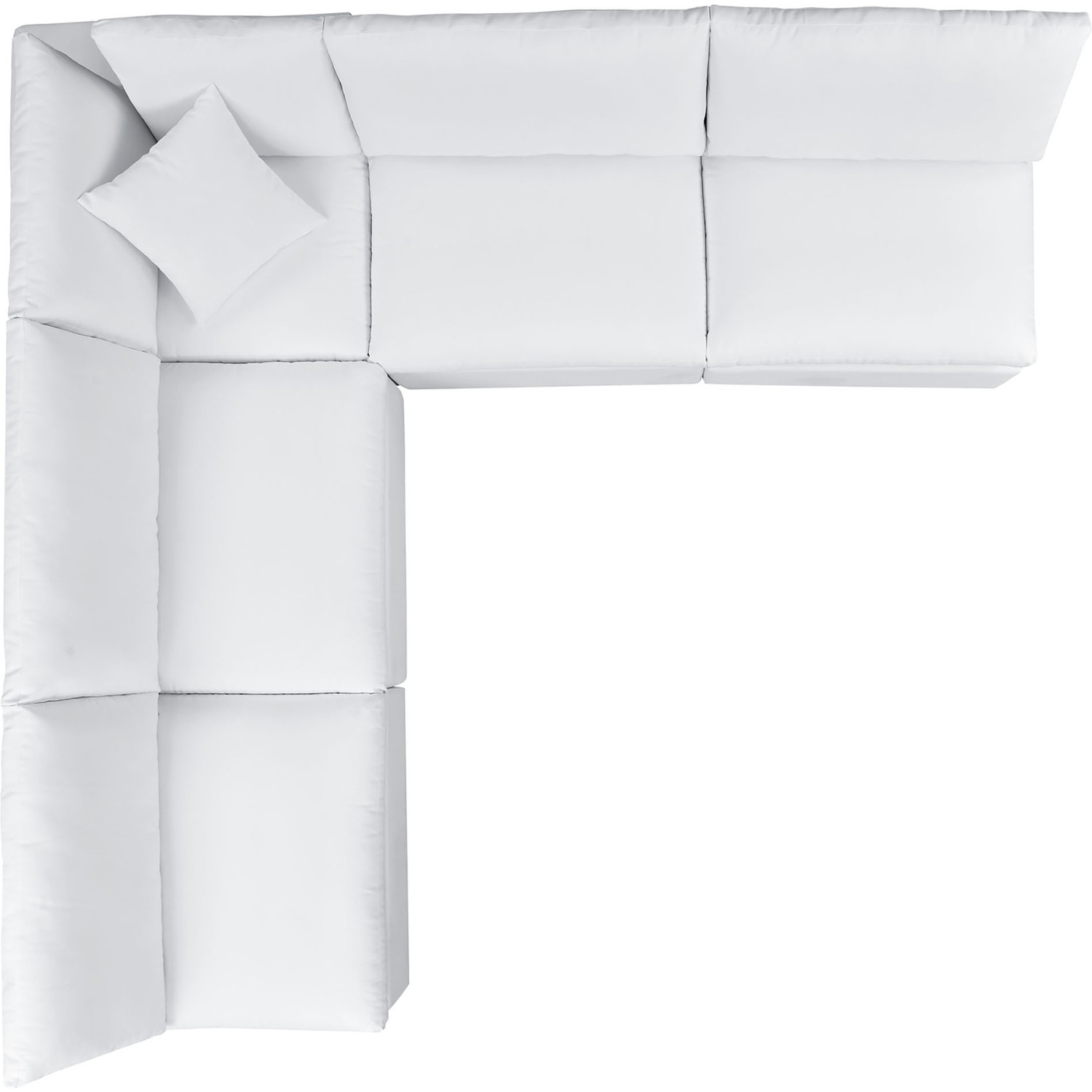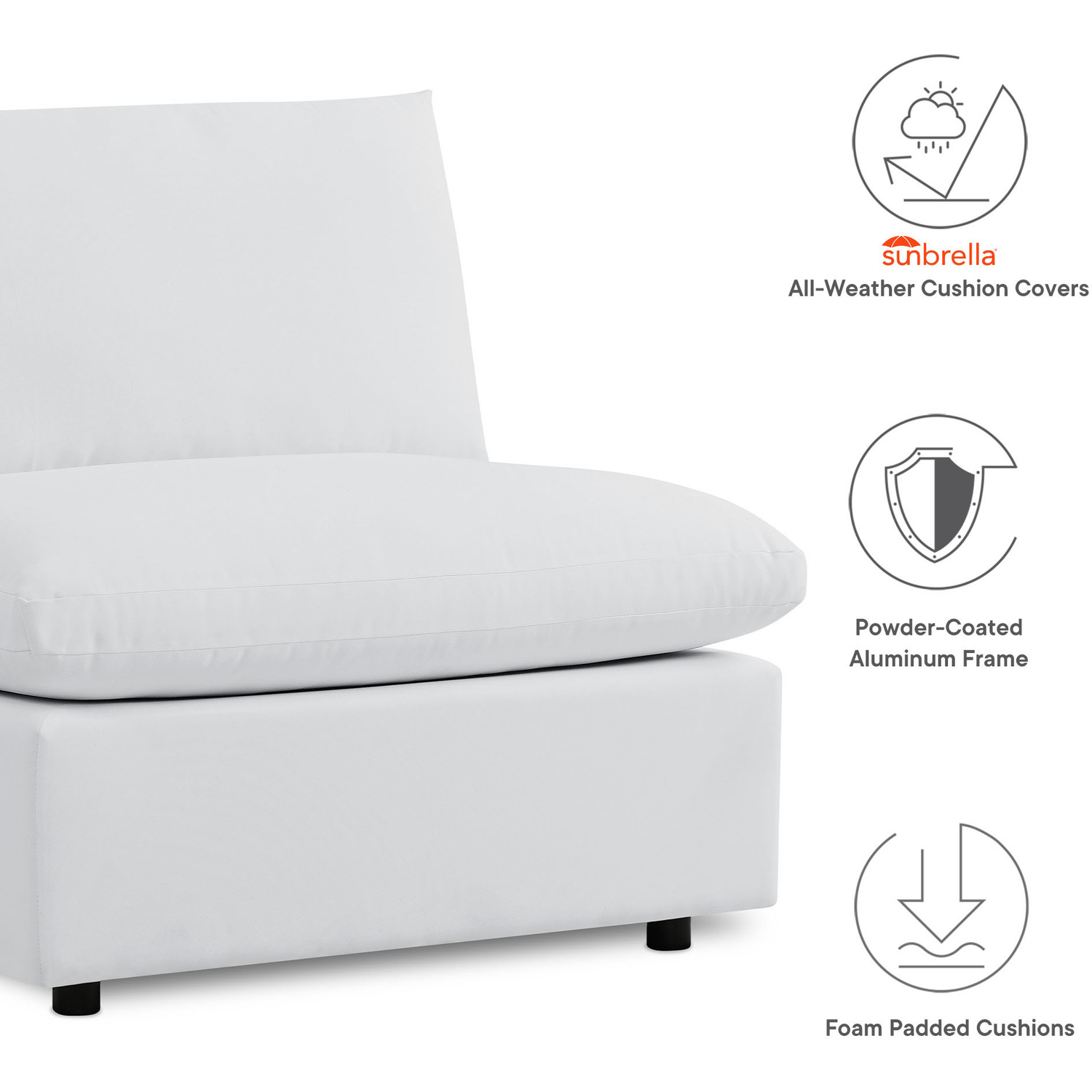 A haven for cozy relaxation right in your own backyard, Commix features plush comfort, a clean-lined design, and a spacious profile that makes an attractive statement on the porch, patio, or by the poolside. Made for sprawling out in the sun or curling up with a good book, this outdoor patio sectional sofa features generously padded cushions covered in water-repellent, UV-resistant Sunbrella® fabric covers making them ideal for your outdoor space. This outdoor sectional sofa features an all-weather construction with a powder-coated aluminum frame and non-marking foot caps to protect flooring surfaces. Beckoning guests to sit and stay a while, the Commix Outdoor Patio Collection is perfect for al fresco entertaining or lounging amidst warm weather. Set Includes: 4 Armless Chairs, 1 Corner Chair. Each Chair Weight Capacity: 300 lbs.Outdoor Patio Sectional Sofa