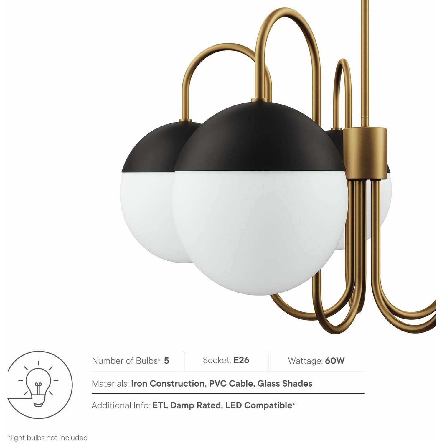 Requires 5 E26 60W Lightbulbs (Not Included)