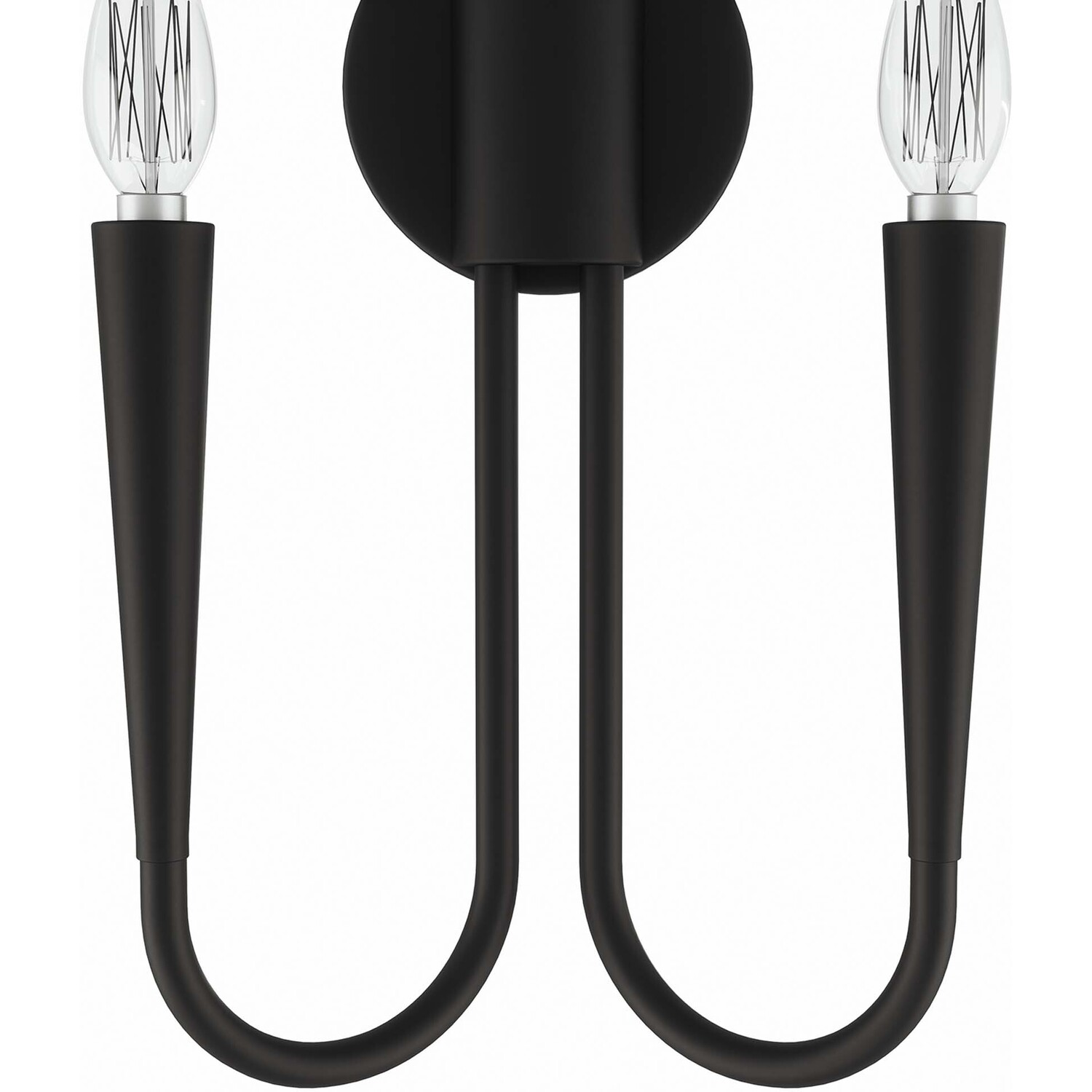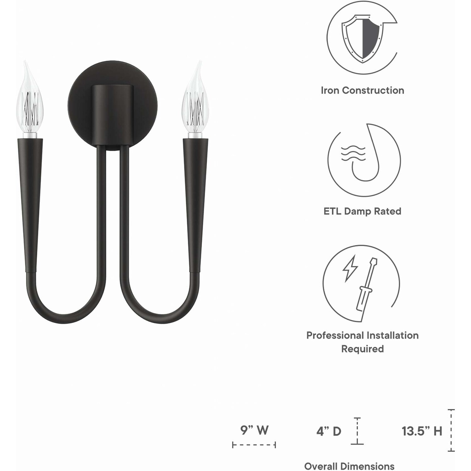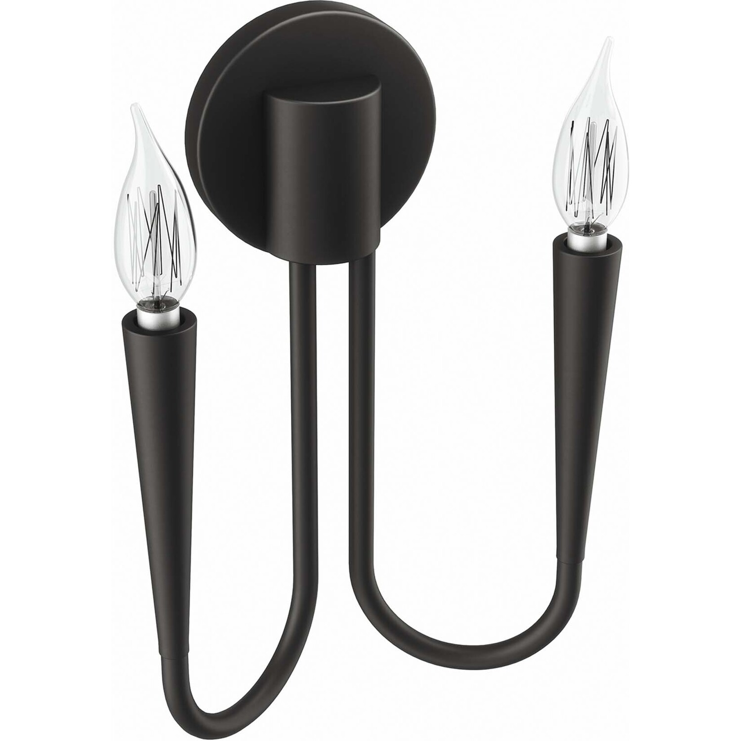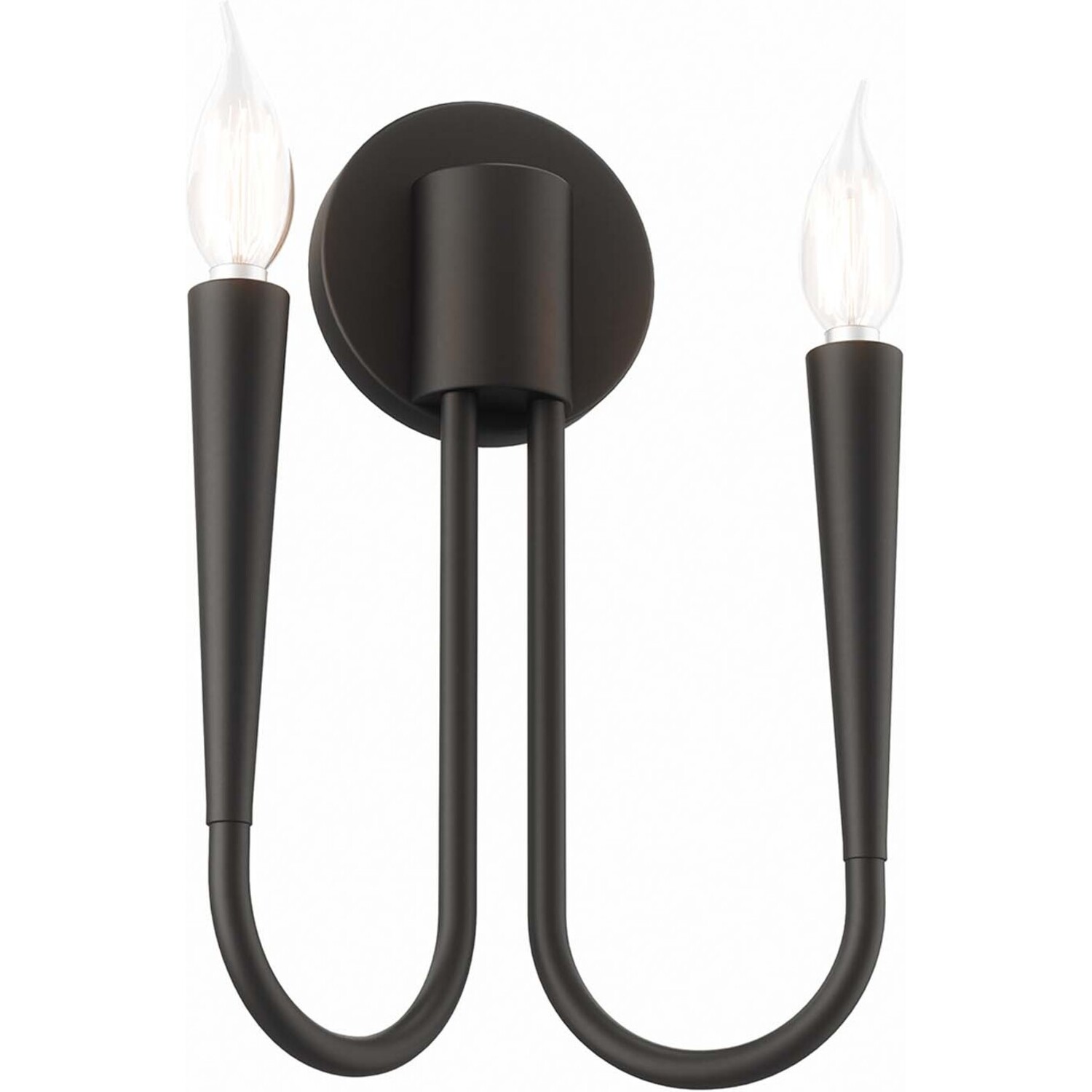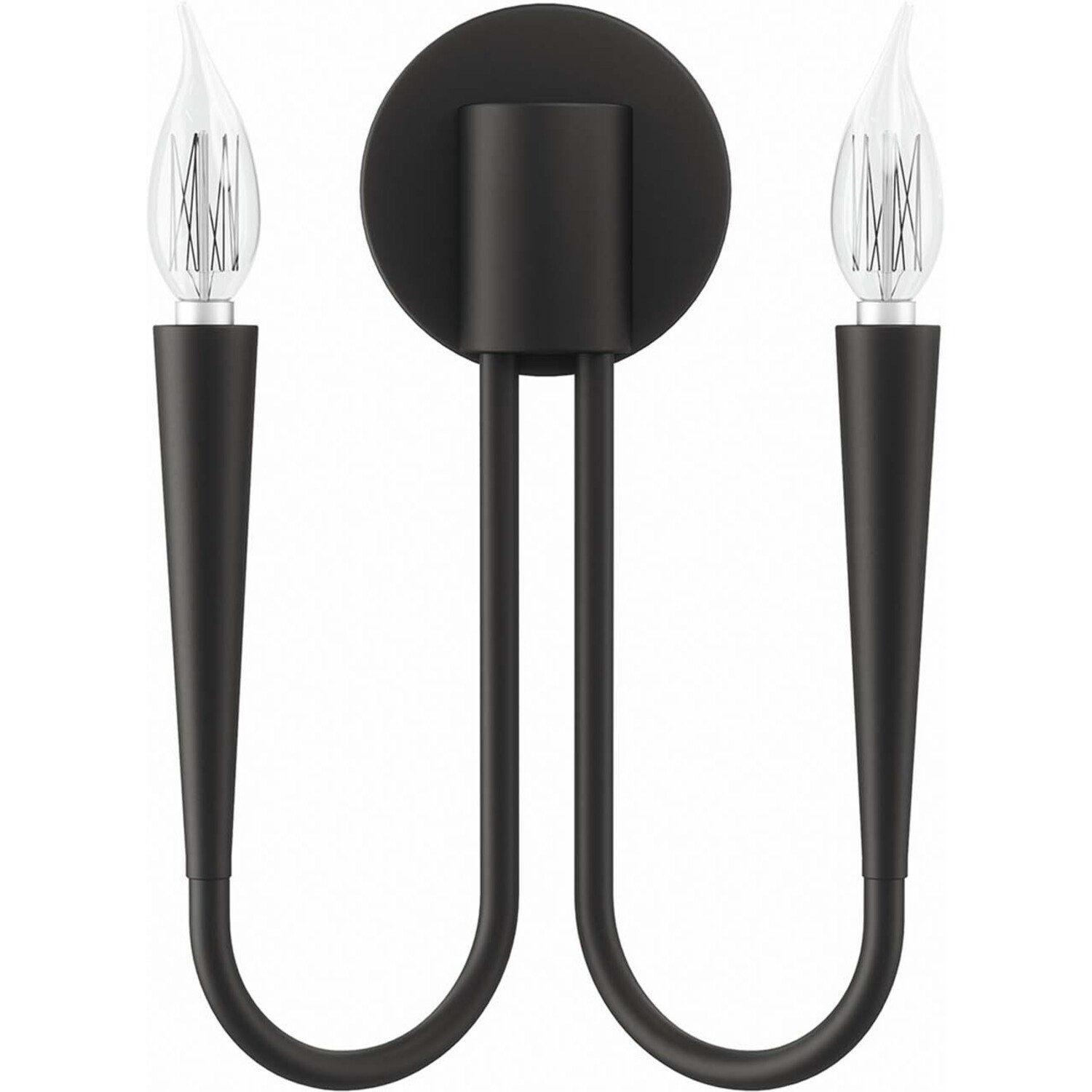Sweeping lines and modern simplicity make the Penrose 2-Light Wall Sconce a sleek addition to a home or apartment. A beautiful light fixture in the dining room, entryway, hallway, bedroom, bathroom, or other living space, this wall light features two upturned metal arms that each hold a single exposed bulb (not included). This wall sconce is by a round backplate and cylindrical base. This wall light requires two E12 bulbs 60W max or LED equivalent (not included). UL Listed for Damp Locations. Luminaires that are “Suitable for Damp Locations” are approved for areas that are regularly exposed to moisture and condensation like the bathroom. Professional installation required.Modern 2-Light Wall Sconce