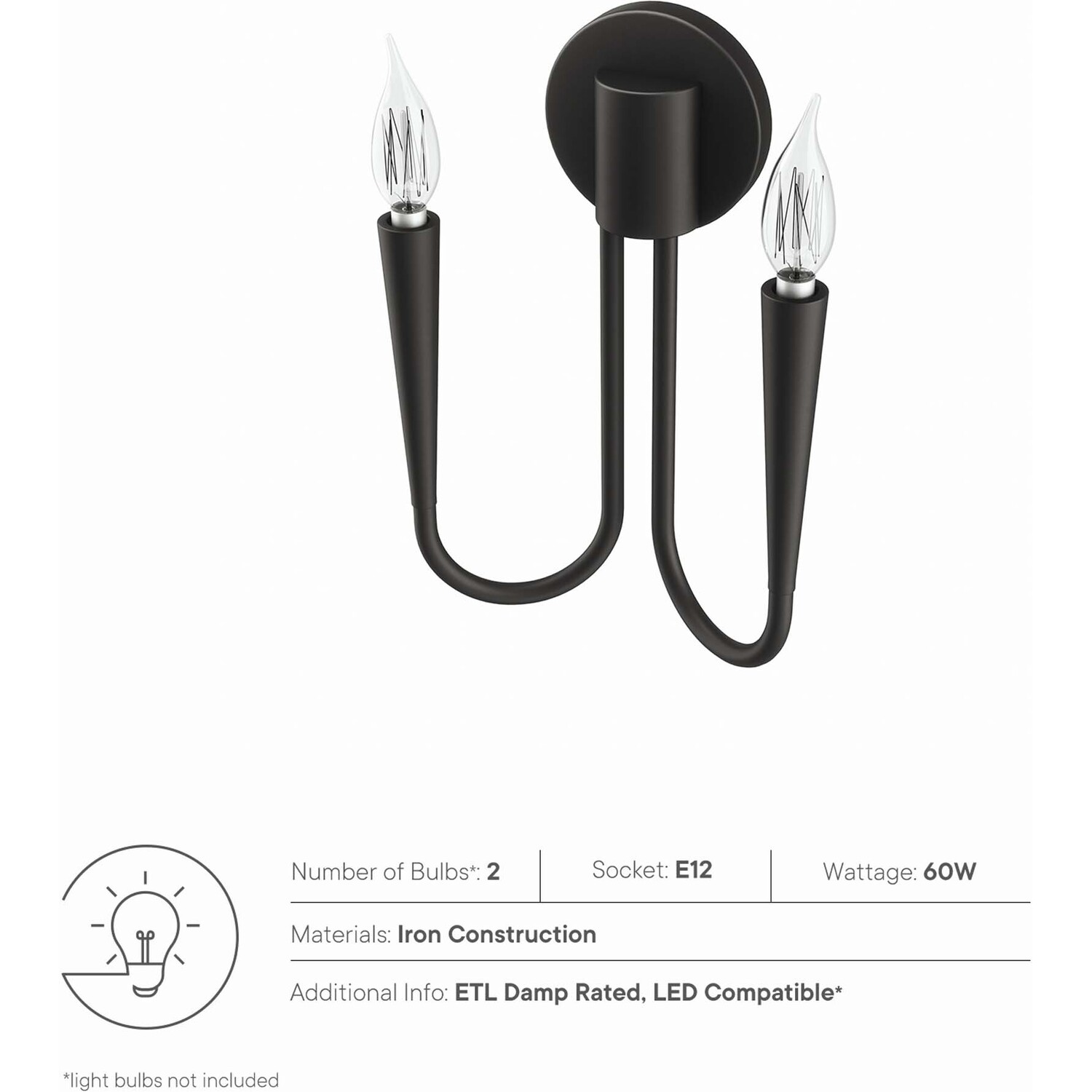 Requires 2 E12 60W Lightbulbs