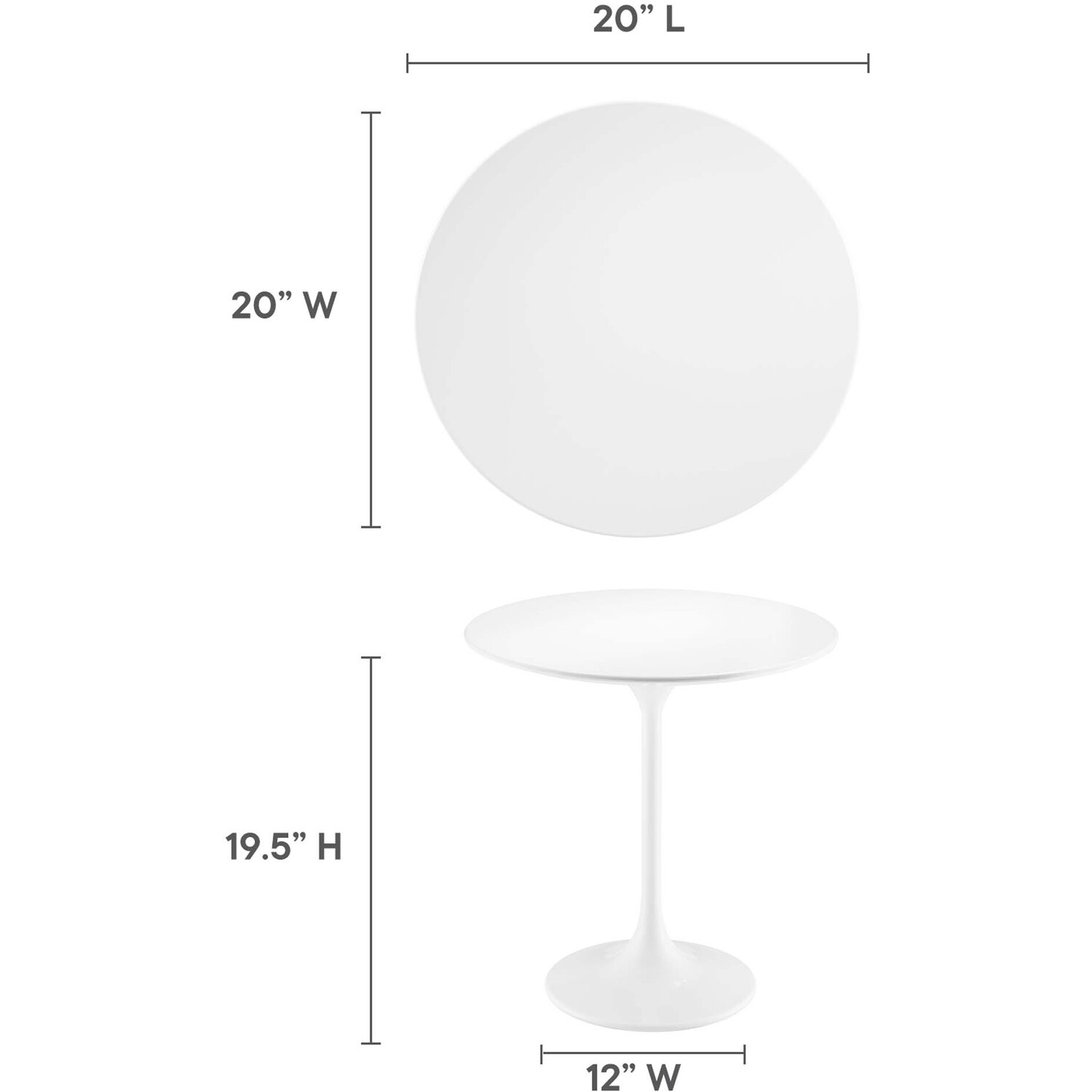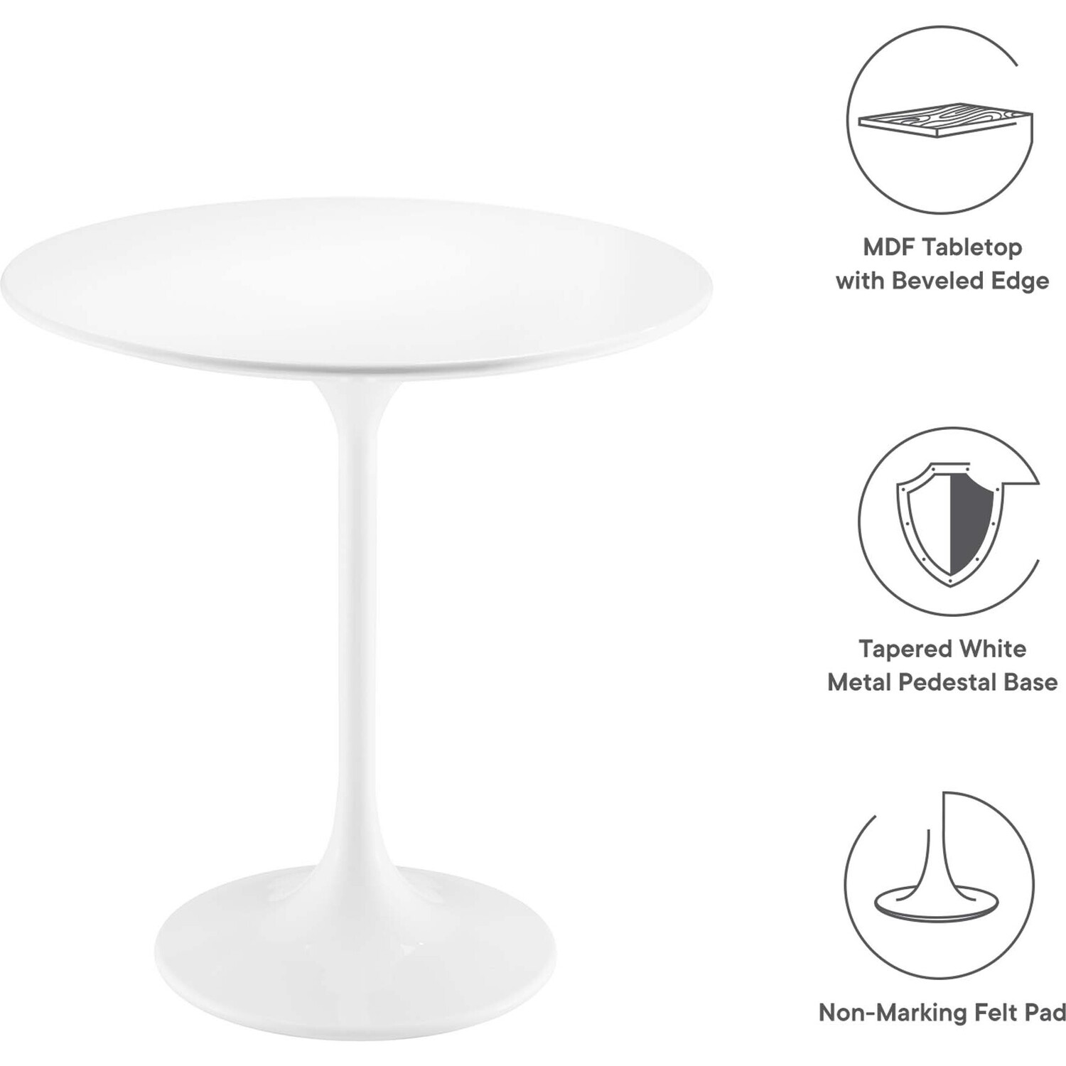 Let modern inspiration flow from the Lippa 20" Round Side Table. This pedestal table is perfect for the living room, office, lounge area, or entryway. Its round tabletop is crafted with MDF with a high gloss finish and beveled edge for a contemporary yet timeless design. Embodying an iconic mid-century silhouette, this pedestal dining table floats on a sleek tapered metal pedestal base with a chip-resistant lacquered finish. Includes non-marking felt pad to protect flooring. Assembly required.Modern Side Table