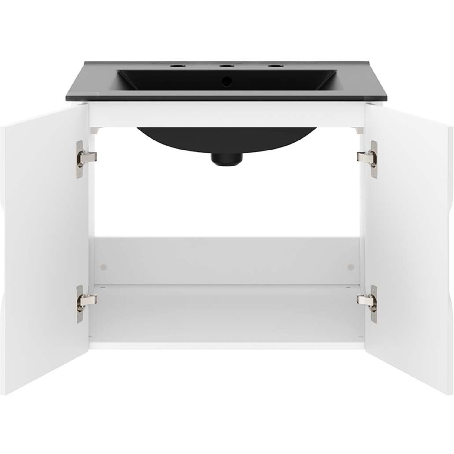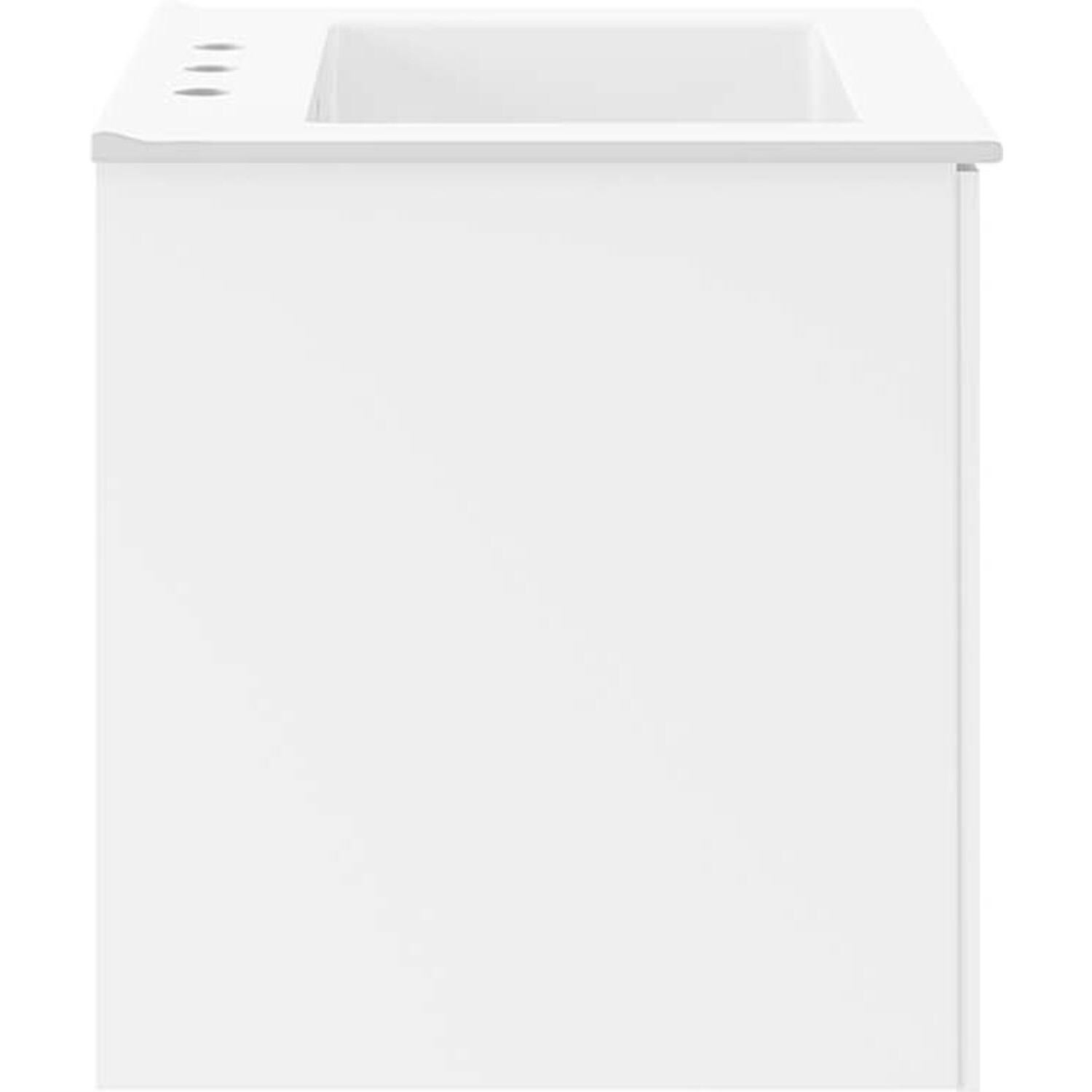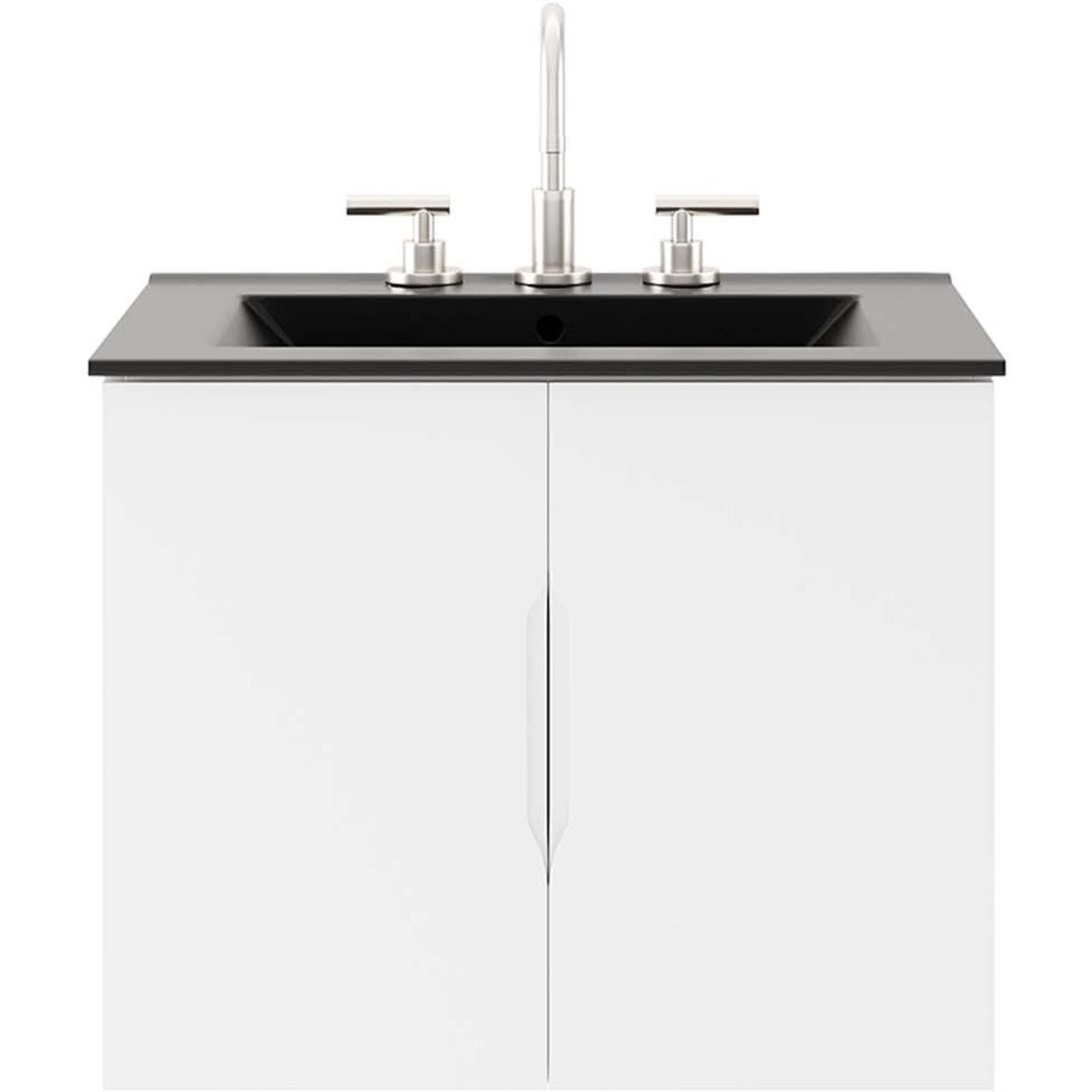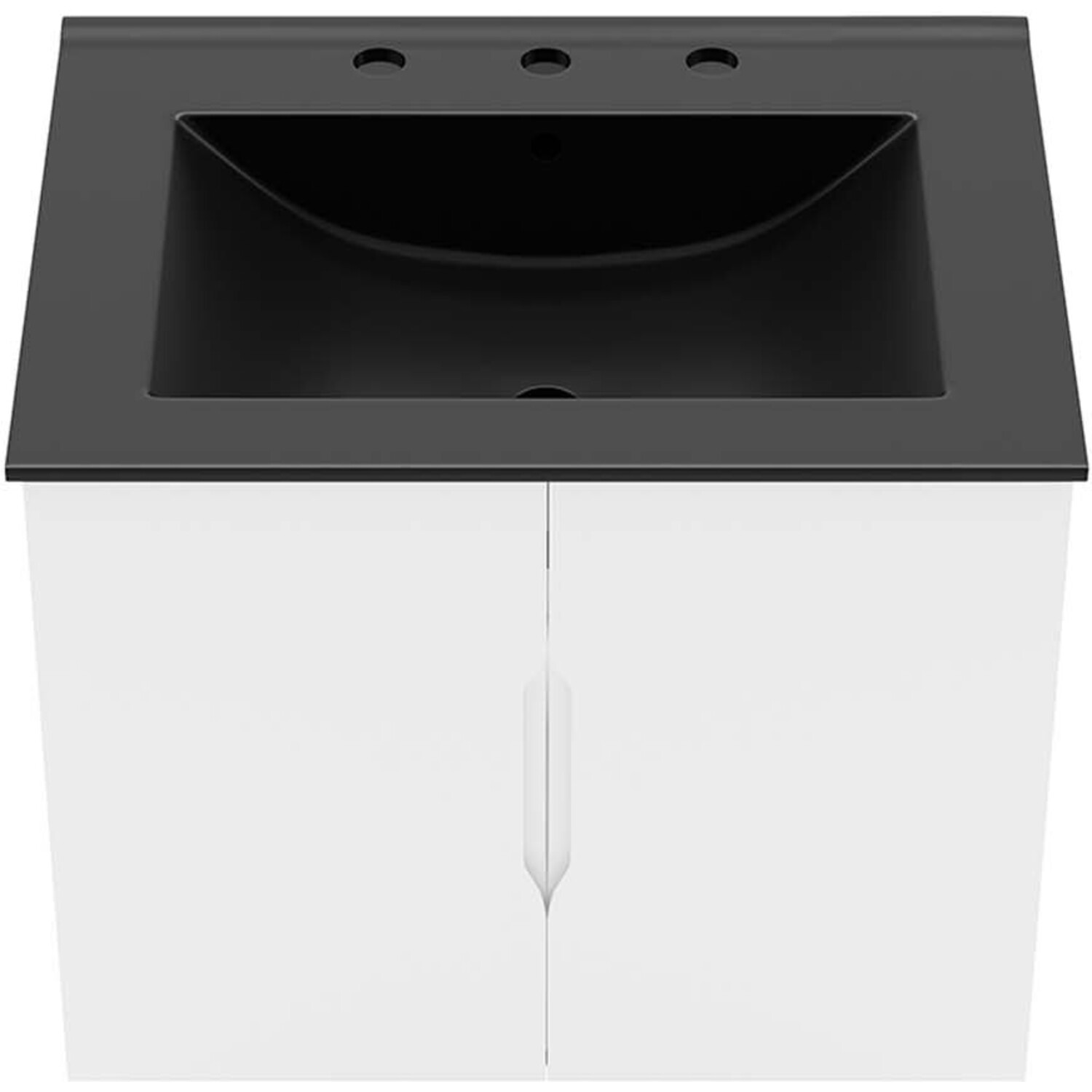 Energize your bathroom space with the modern design of the Vitality 24" Wall-Mount Bathroom Vanity. Boasting a sleek, clean-lined silhouette, this vanity is durably crafted with particleboard and MDF with a melamine finish. This vanity features a wall-mount design and is complete with ample storage space for all your bathroom essentials behind two soft-close doors. This vanity is complete with a ceramic sink basin with 8-inch centerset faucet holes and an integrated countertop. Organize bathroom essentials and keep counter space clean with ample storage space behind two soft-close doors. This vanity boasts an open back to accommodate plumbing. Fixtures not included. Assembly required.Modern Bathroom Vanity