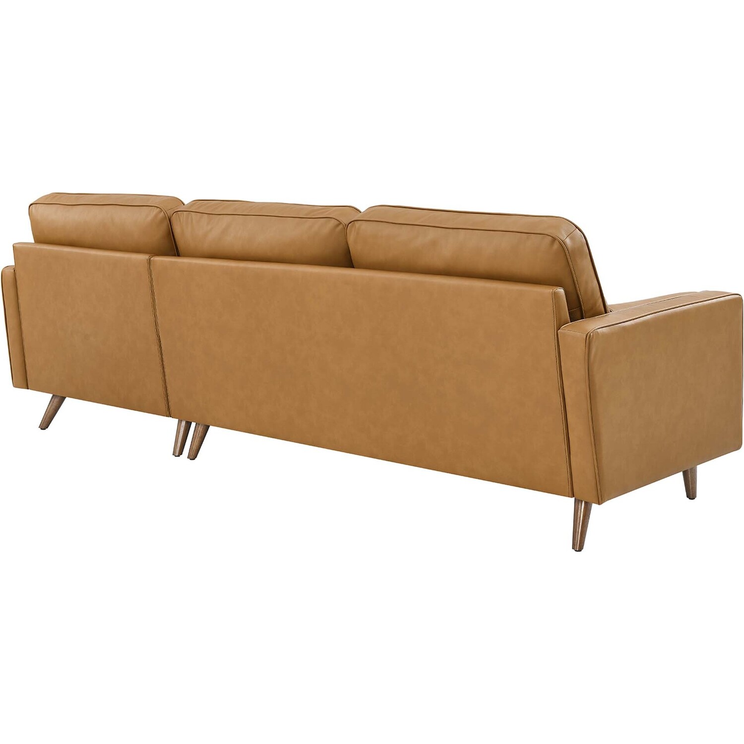 Update your home or apartment with the mid-century style and modern-day convenience of the Valour Leather Sectional Sofa. This comfortable living room sofa features a tailored profile with elegant biscuit tufting and two bolster pillows. Covered in beautiful top grain leather upholstery, this sectional sofa has dense foam padding, an innerspring pocket structure, and a sinuous spring support system for a comprehensive seating experience that fits perfectly into apartment settings. This luxe modern sofa comes with walnut-stained wood legs and non-marking foot caps to protect floors. Say goodbye to the days of hauling heavy furniture. This tufted sectional sofa ships in a portable box for easy maneuvering. Weight Capacity Each Seat: 330 lbs.Mid-Century Modern Sectional Sofa