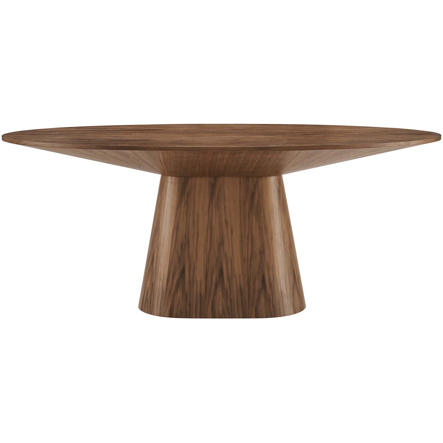 Gather around the Provision 75" Dining Table to enjoy good food and conversation with friends and loved ones. Make a striking statement in your dining space with this bold yet simplistic modern design. This oval table features a sturdy MDF construction with beautiful wood grain veneer. This 75" dining table comfortably accommodates six dining chairs. Includes a non-marking felt mat to protect flooring. Assembly required. Weight Capacity: 330 lbs.Modern Dining Table