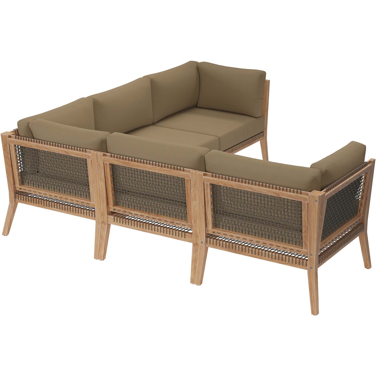 Modway Furniture Clearwater 5-Piece Outdoor Patio Teak Wood Sectional Sofa by Modway, 889654273196, EEI-6123