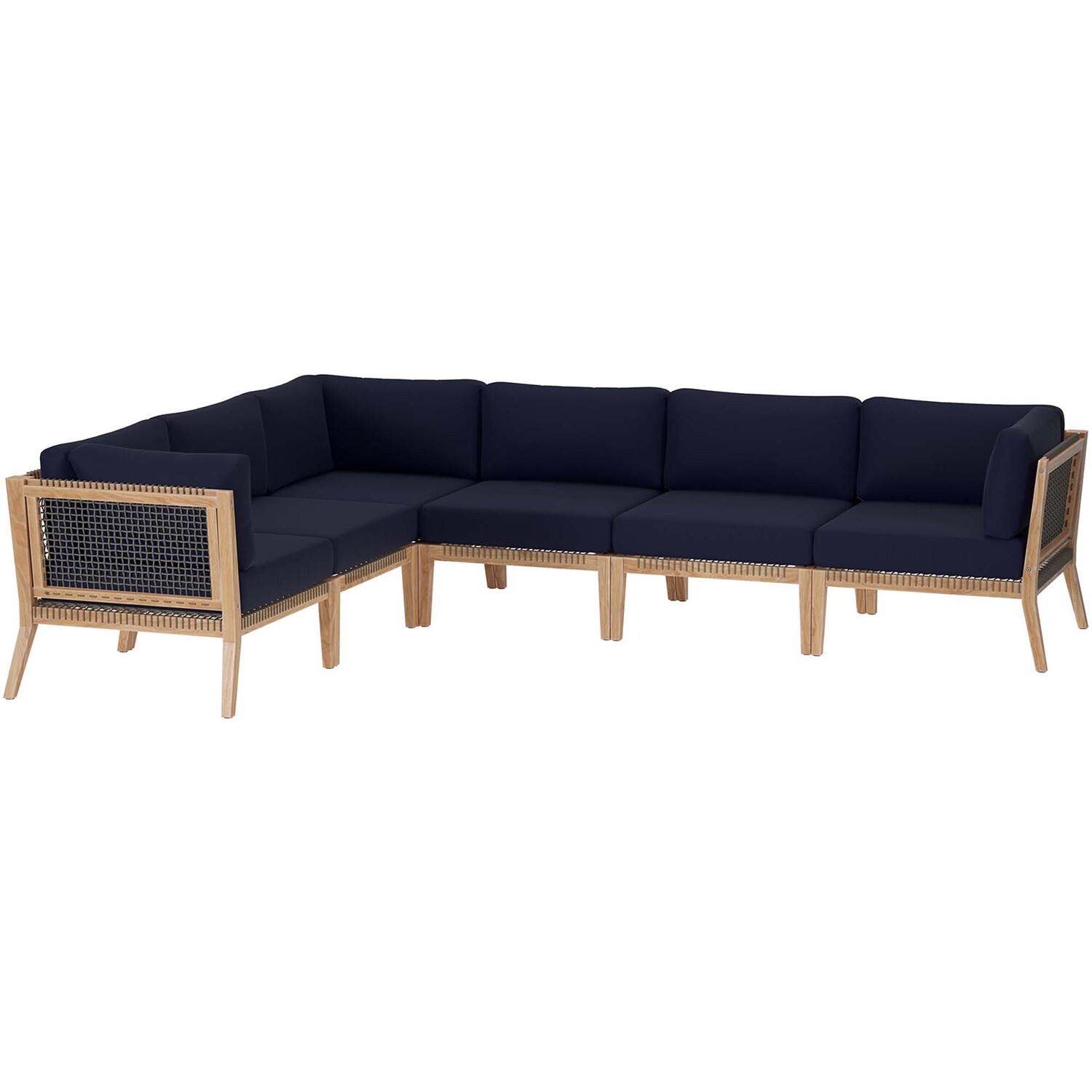 Modway Furniture Clearwater 6-Piece Outdoor Patio Teak Wood Sectional Sofa by Modway, 889654273271, EEI-6125