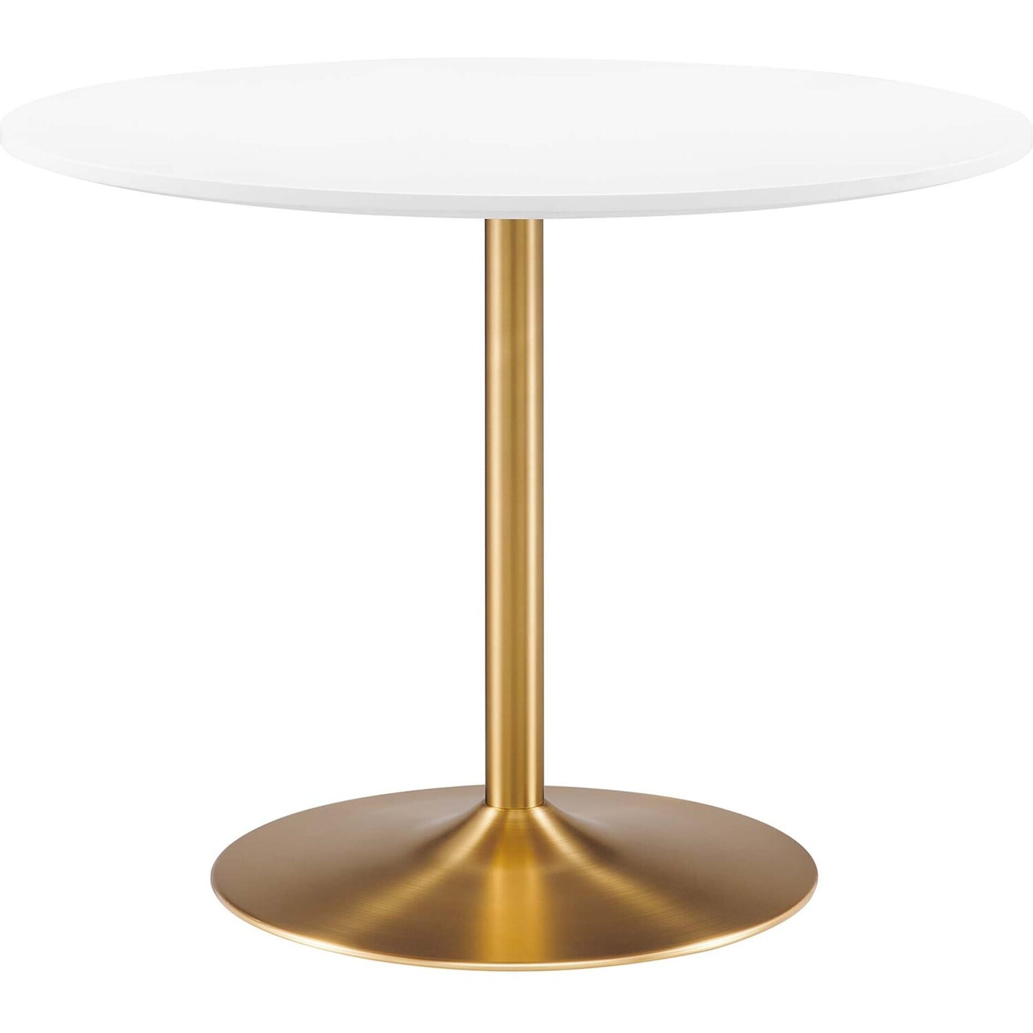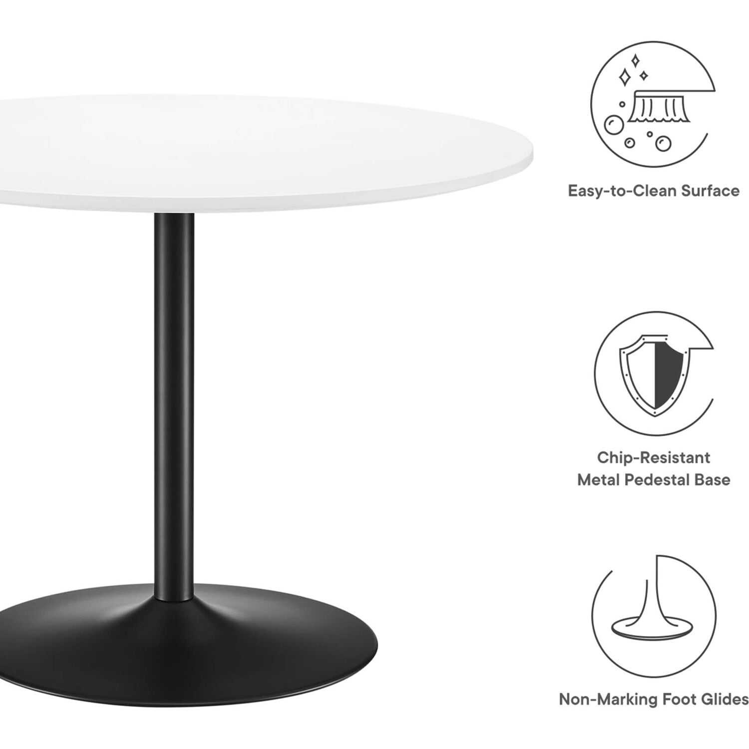 Achieve a modern look in your dining space with the Amuse 40" Dining Table. Its contemporary design and mid-century silhouette bring appreciated style to a kitchen, dining room, or small living space, while its painted iron metal base provides sturdy durability. Gather family and friends around the round MDF tabletop that features a beveled edge and is easy to clean. Comfortably seating four, this pedestal dining table is perfect for everyday dining or entertaining. Includes non-marking foot glides to protect your flooring. Assembly required.Modern Dining Table