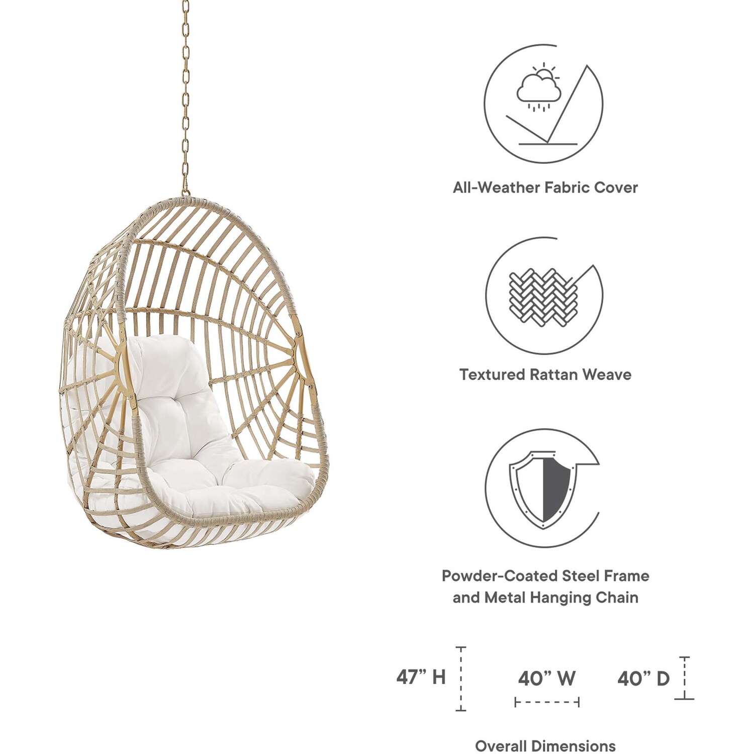 Sway into peaceful relaxation with the Amalie Outdoor Patio Swing Chair. Wrapped in a textured rattan weave, this outdoor chair features a plush removable cushion with an all-weather fabric cover. The sturdy frame is crafted with powder-coated steel, making this patio swing a lasting addition to your porch, patio, backyard, or poolside. This outdoor hanging chair includes a complementary hanging chain allowing it to hang suspended from the ceiling. Amalie's charming coastal design is also popularly used indoors in the lounge area, living room, or bedroom space. Assembly required. Weight Capacity: 330 lbs.Outdoor Patio Hanging Swing Chair