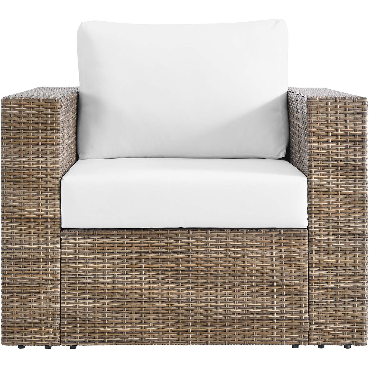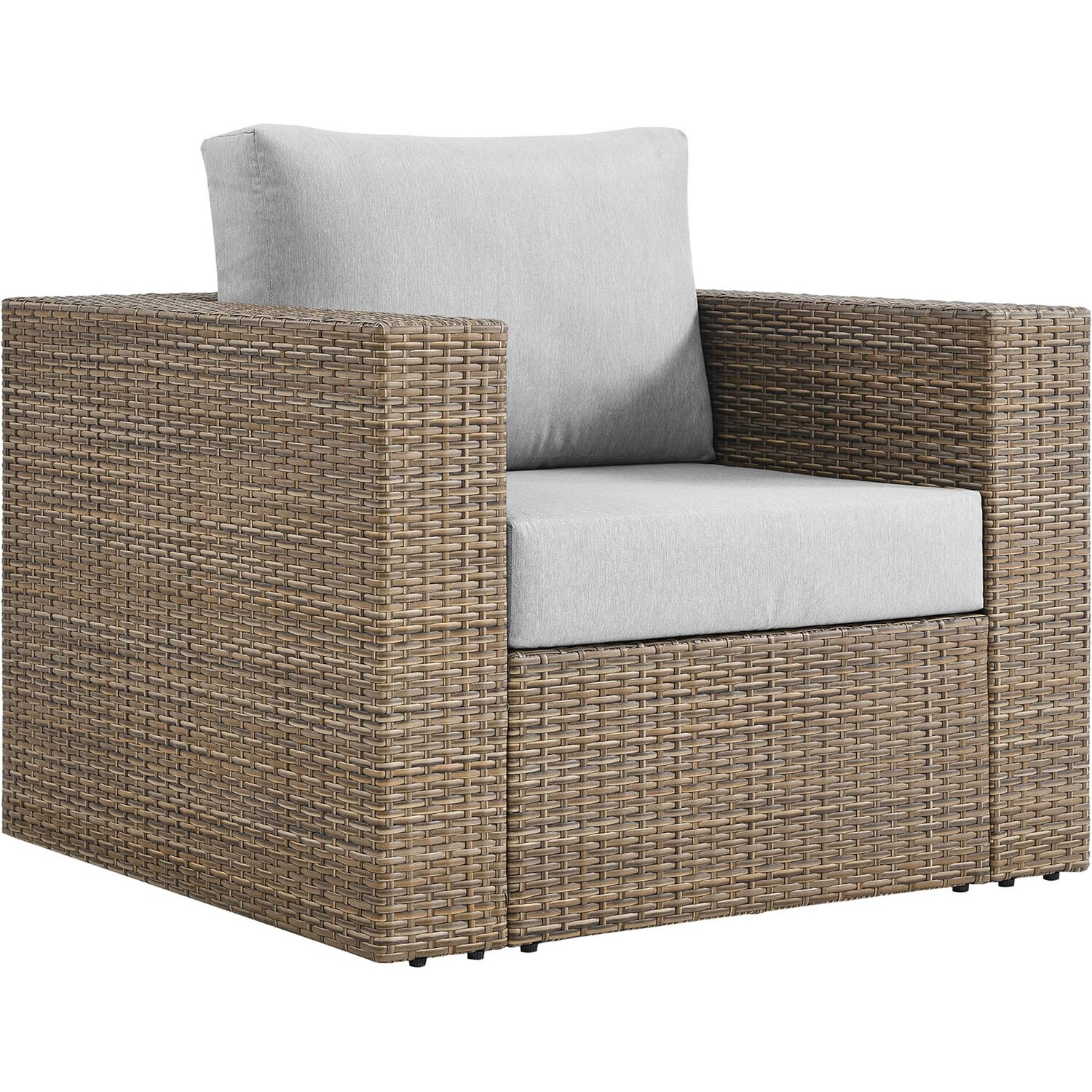 Surround yourself with warm weather and good company with the Convene Outdoor Collection. Made with synthetic rattan weave and a powder-coated aluminum frame, this outdoor armchair leaves a positive impression on your guests while enhancing your patio, backyard, porch, or poolside with modern style and appreciated texture. A lasting all-weather addition to your outdoor space, this patio accent chair is complete with dense foam padded cushions with water-resistant zippered covers and non-marking foot pads to protect your flooring. Assembly required. Easy to follow instructions included. Weight Capacity: 330 lbs.Outdoor Patio Armchair