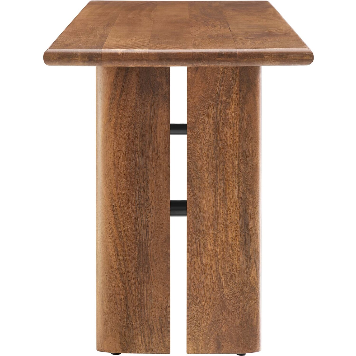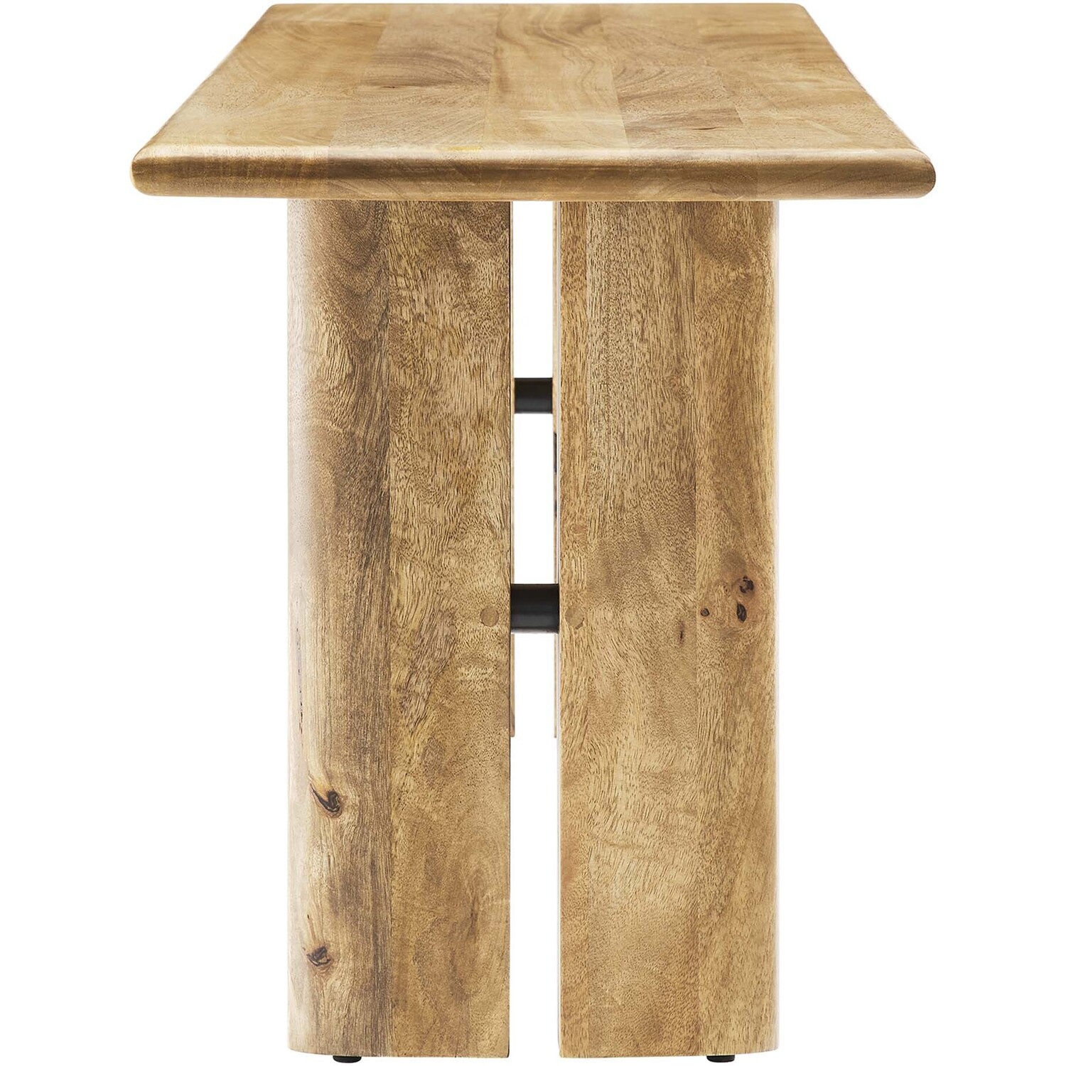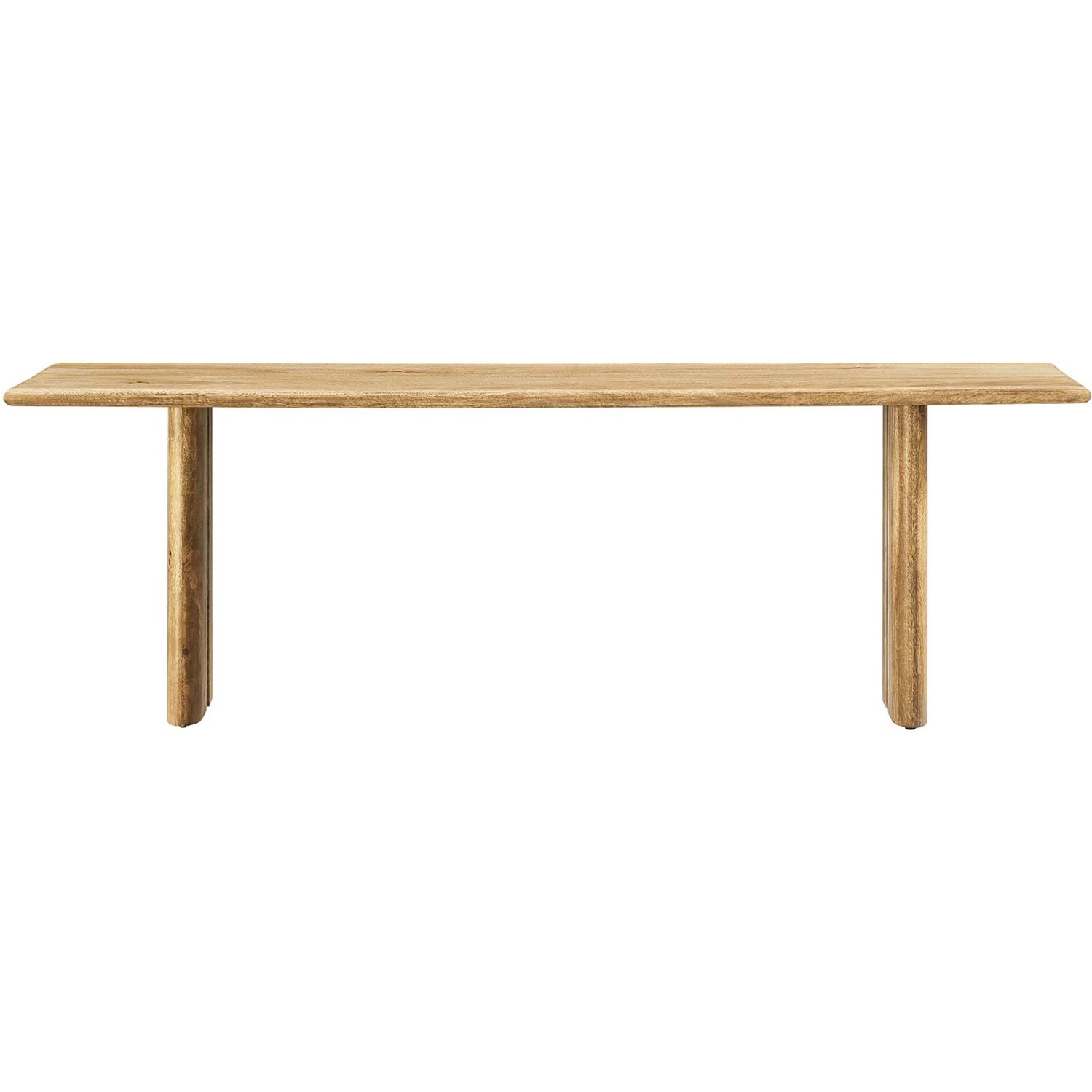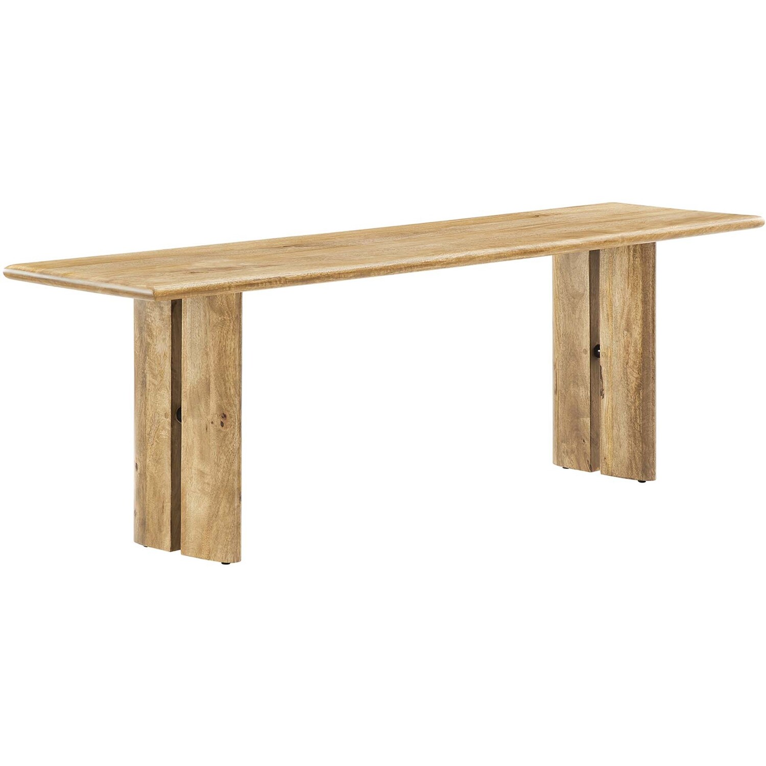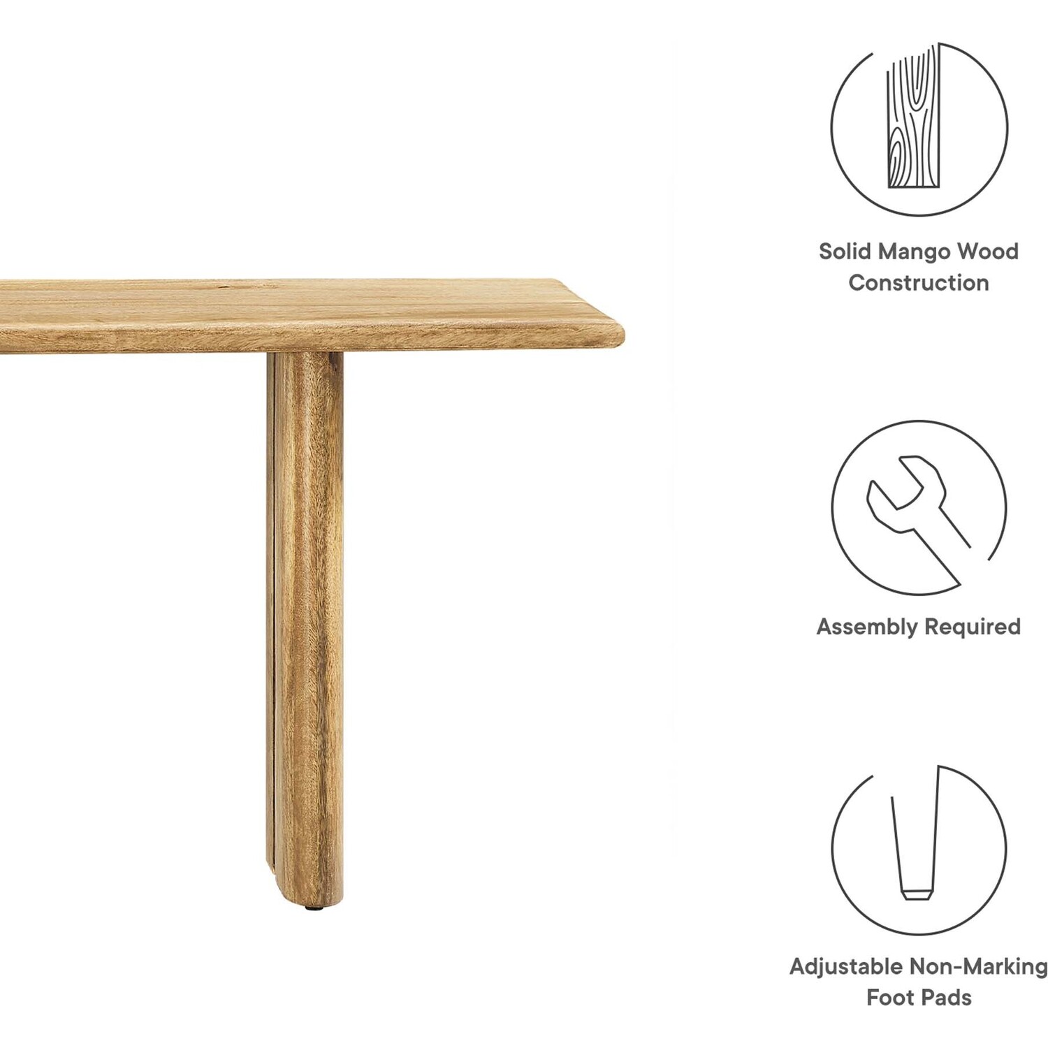 Experience the seamless fusion of natural elegance with the Amistad 58" Wood Dining Bench. This versatile piece breathes life into your dining space, living room, mudroom, or even the bedroom with its warm, inviting charm, and provides endless opportunities for seating or a simple decor accent. Meticulously crafted with authentic mango wood, this dining bench's durability matches its stunning aesthetics. Further enhancing its functionality, adjustable non-marking foot pads ensure stability while safeguarding your flooring from scuffs and scratches. Perfect for any occasion of comfort and modern farmhouse style, this 58" bench can comfortably seat up to three people in the dining room and serve as a stylish accent in other living spaces. Assembly required.Modern Farmhouse 58" Dining Bench
