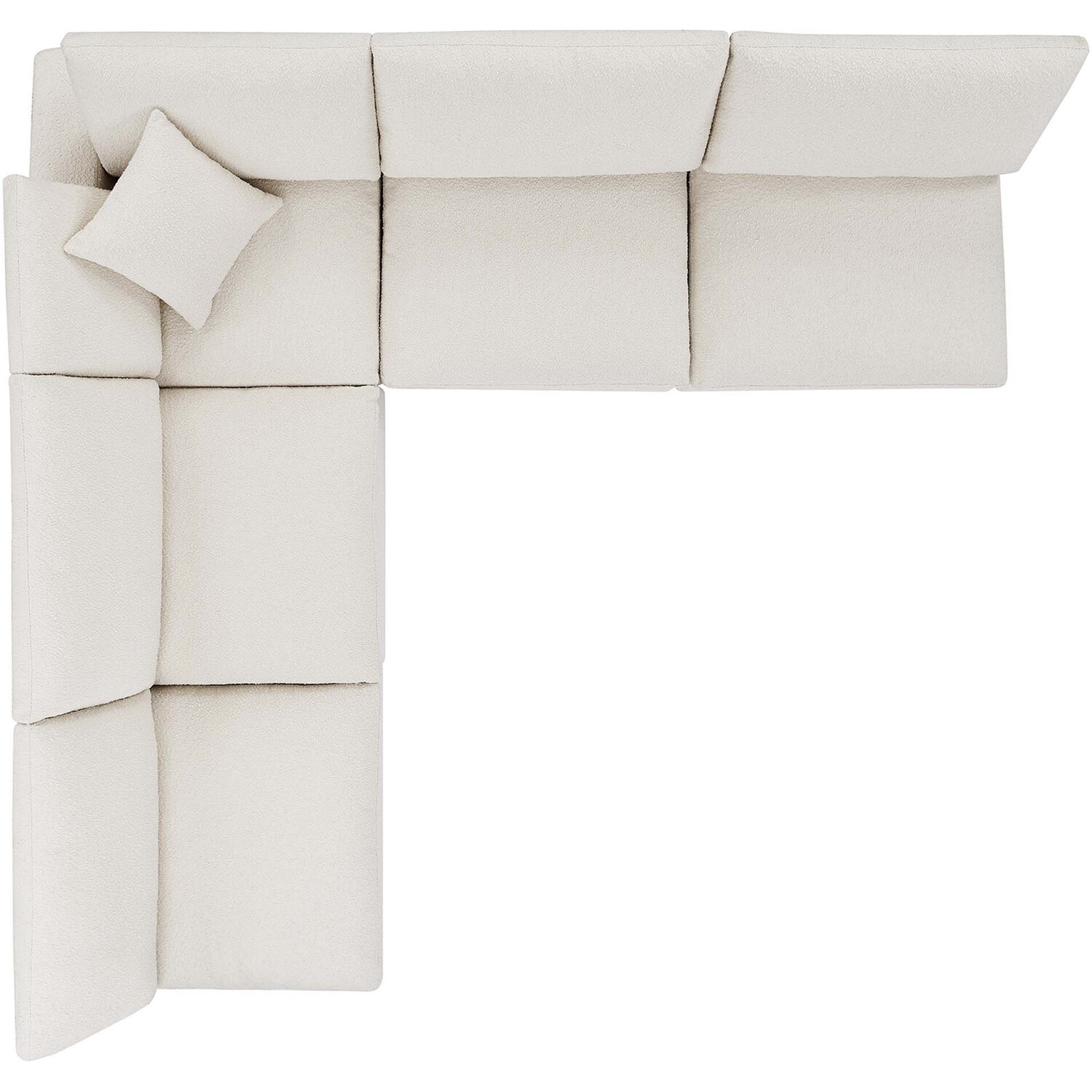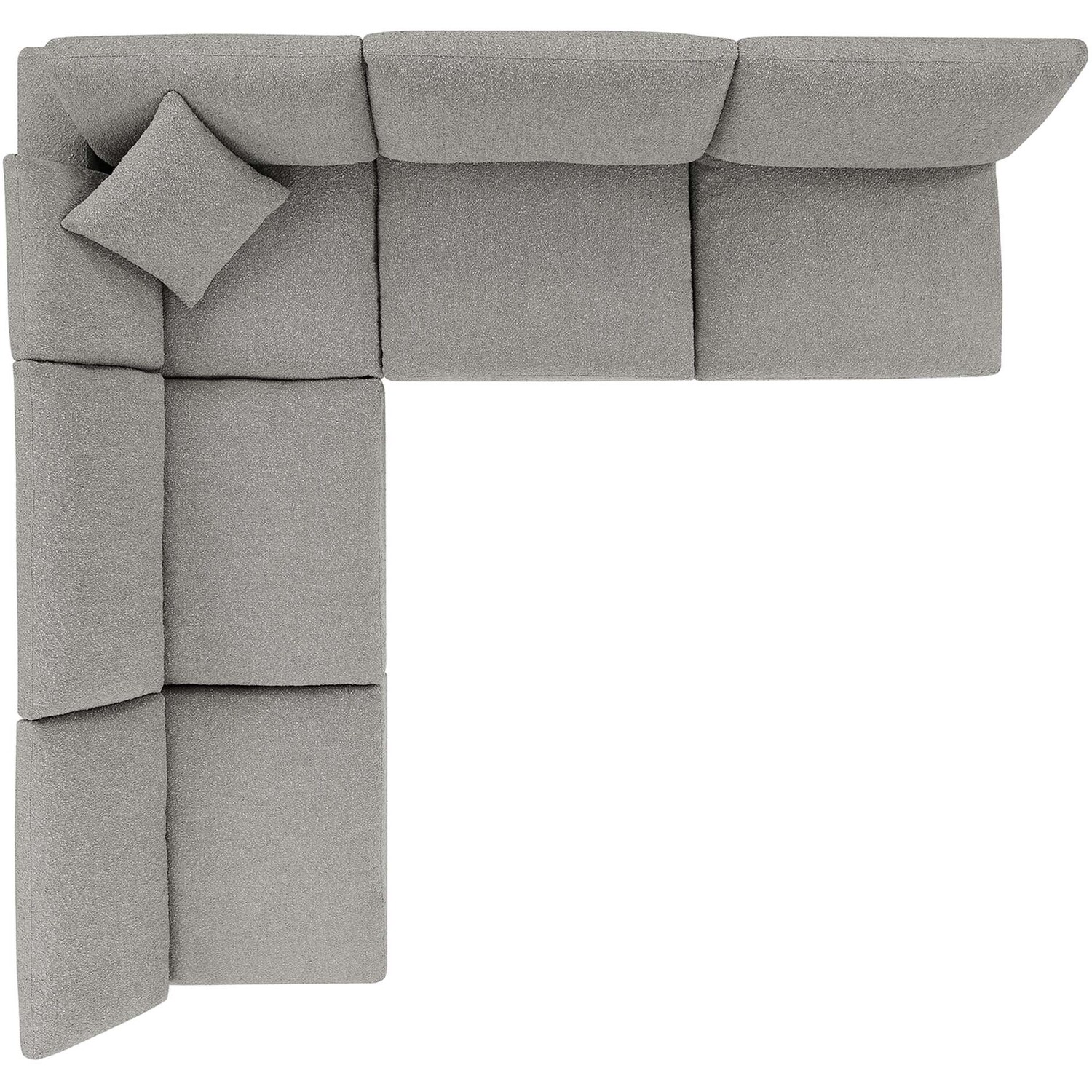 A haven for cozy relaxation, Commix features plush comfort and a clean-lined design. The spacious profile makes an attractive statement in the modern home. Covered in a boucle fabric with a charming nubby texture, this upholstered sectional sofa comes with a solid wood construction and foam padded and duck down cushions for a luxurious sink-in feel. Commix features overstuffed down feather cushions that offer a feeling of relaxation and calming comfort while lounging, making it the perfect addition to the living room, family room, or game room. Made for sprawling out or curling up, Commix beckons you and guests to sit and stay a while. Includes plastic foot glides. Weight Capacity of Each Piece: 331 lbs.Contemporary Modern Sectional Sofa