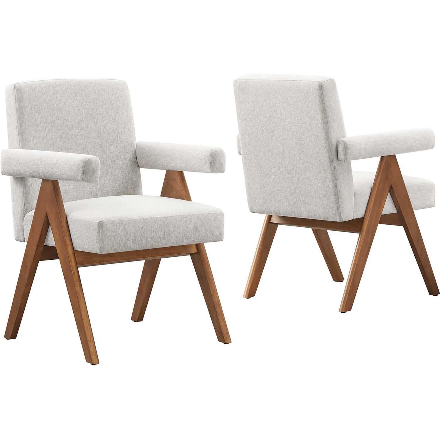 Add comfort and style to your home with Lyra Heathered Fabric Dining Chairs - Set of 2. These dining chairs are chic and luxurious, featuring a relaxed design with a subtly angled backrest. Lyra comes upholstered in woven heathered fabric, creating a comfortable resting spot where you can enjoy a meal or sip on a glass of wine. Featuring a sturdy plywood frame, inverted V-shaped rubberwood legs, and dense foam padding, these modern dining room chairs provide stability while enhancing the dining room, bedroom or entryway. Includes non-marking feet. Assembly Required. Weight Capacity: 331 lbs.Ergonomic Design for Comfort