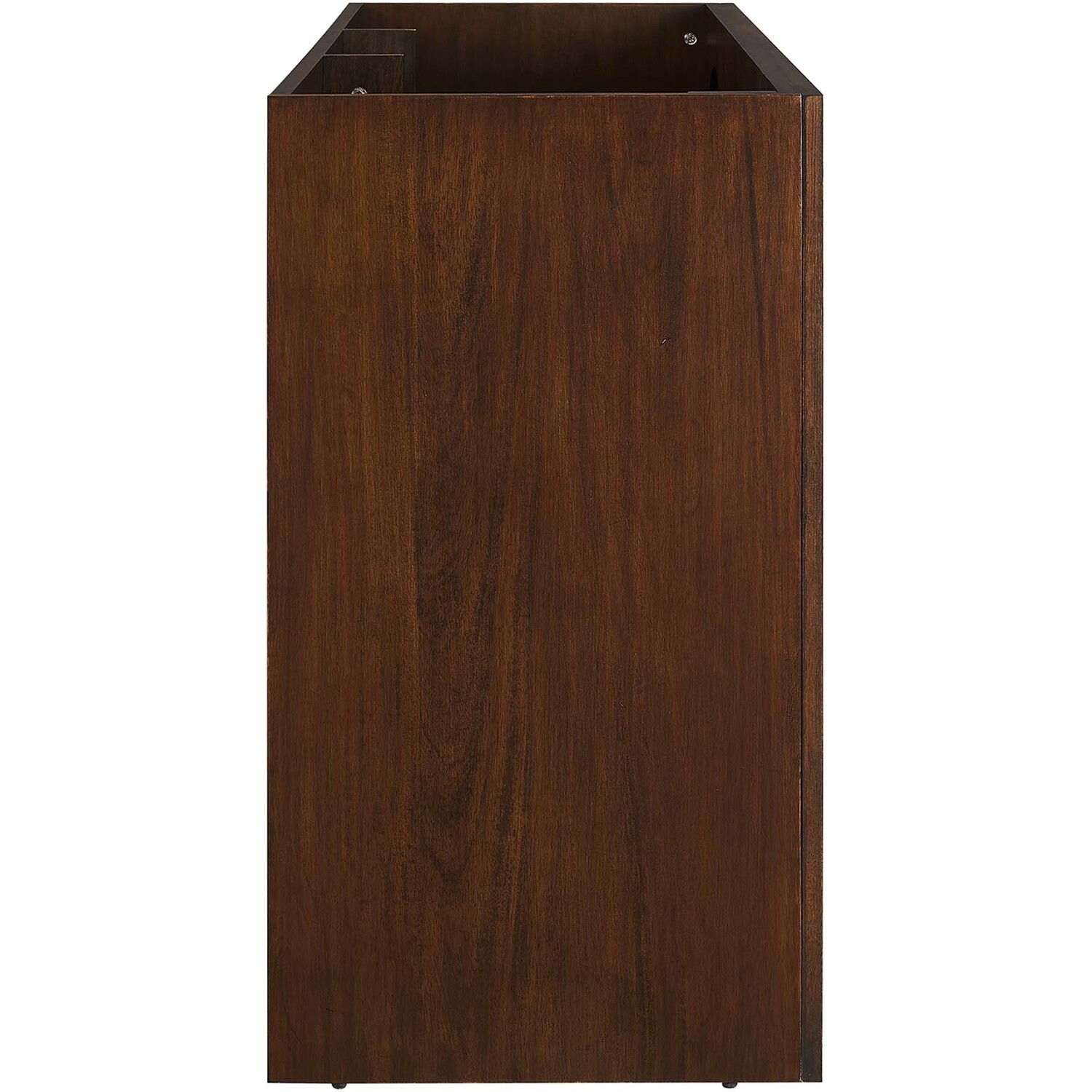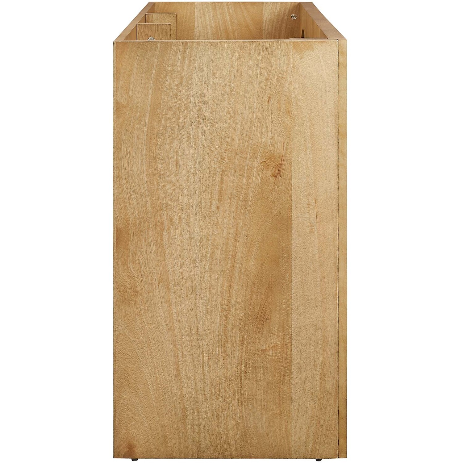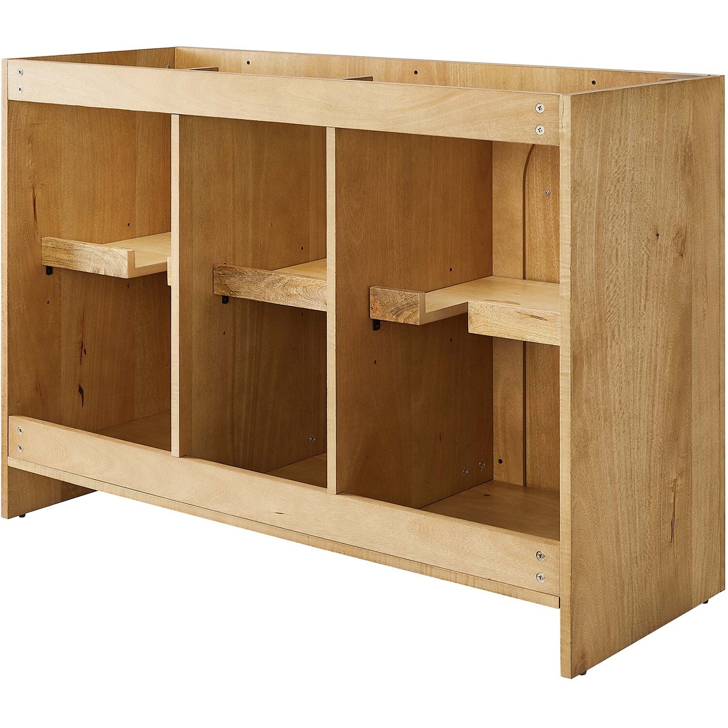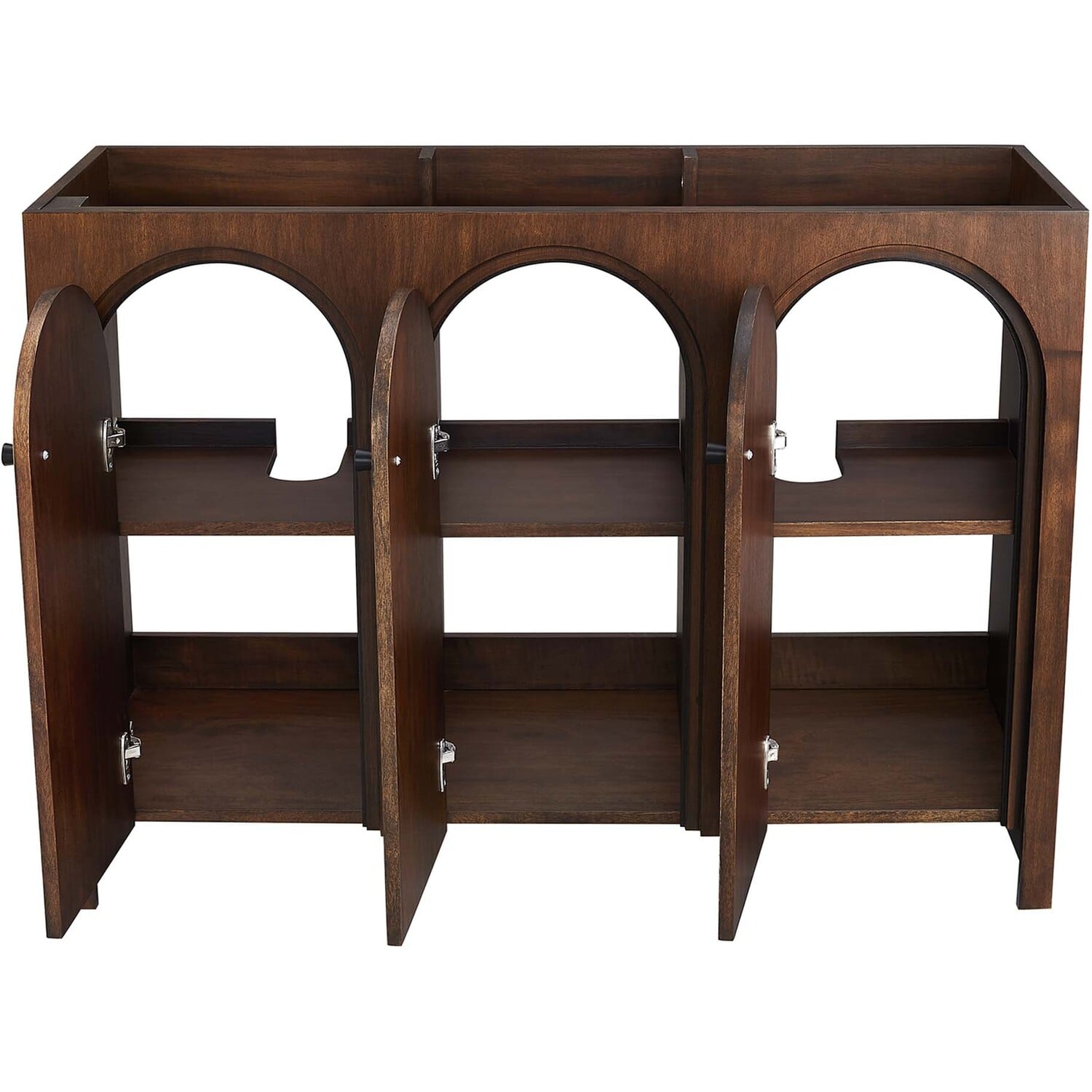 Elevate your bathroom's style with the Appia 48 Bathroom Vanity Cabinet, where retro elegance meets functionality. Expertly crafted from high-quality MDF and adorned with a mango wood veneer, this vanity cabinet brings stunning organic aesthetics to your bathroom. Its three arched doors add beautiful dimension to any primary or guest bathroom. Featuring soft-close hinges, the Appia compact vanity offers a smooth, quiet experience and includes adjustable shelves with convenient plumbing cut-outs for a double sink, providing ample storage for all your vanity bathroom essentials. Assembly is straightforward, ensuring you can enjoy this stylish and modern vanity effortlessly. Sink basin and fixtures are not included with this chic and practical bathroom vanity cabinet. Includes adjustable non-marking foot pads to protect flooring. Top Panel Weight Capacity: 250 lbs.Soft-Close Hinges