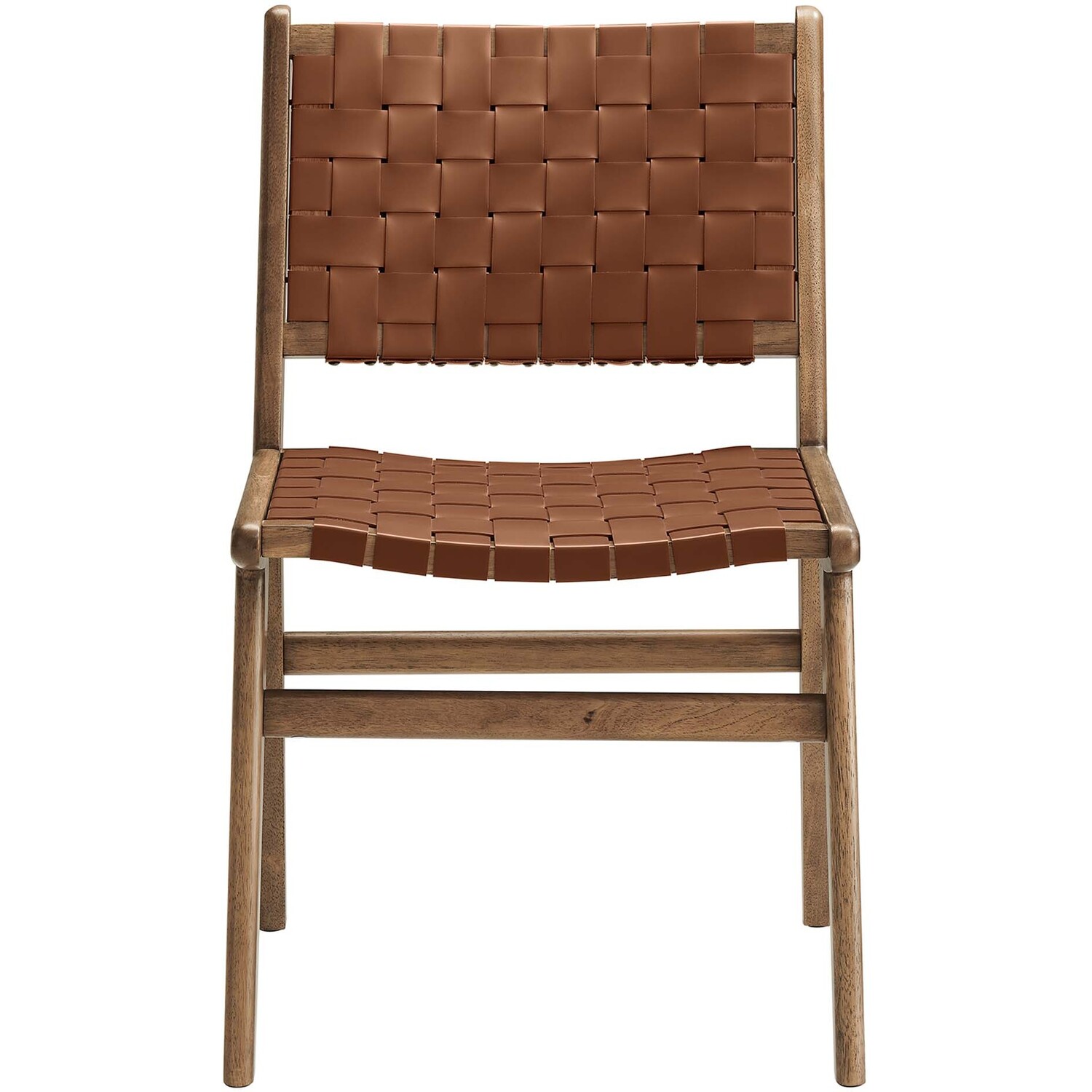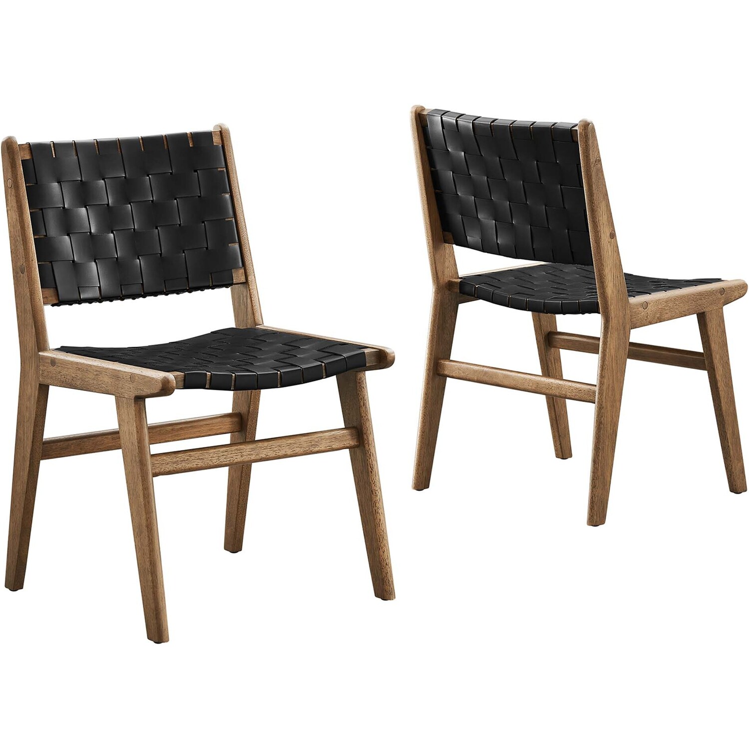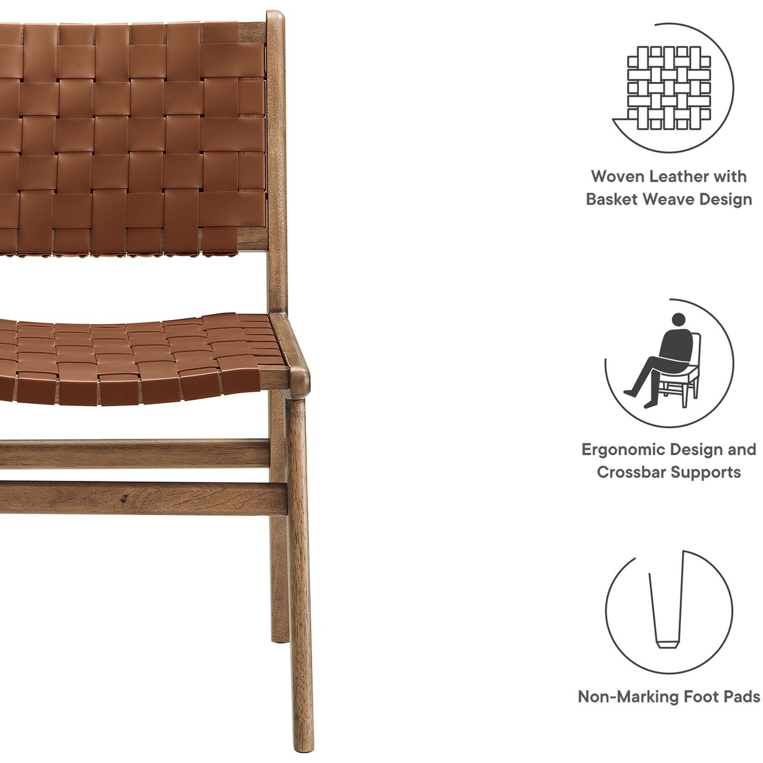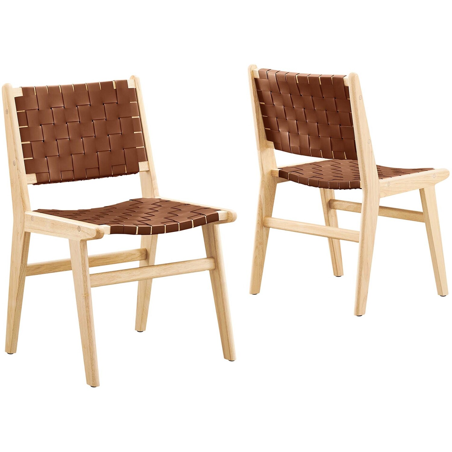 Spark engaging conversations with the Saoirse Dining Side Chair Set of Two. Artfully crafted with woven leather over a sturdy rubberwood frame, this set of two chairs blends contemporary design with tactile elegance. Non-marking foot pads ensure both stability and floor protection, while the basket weave design and crossbar supports make for a personalized seating experience. With an ergonomic design, these dining chairs are perfect for the dining room, living room, lounge area, home office, or bedroom. Assembly required. Weight Capacity: 331 lbs.Woven Leather
