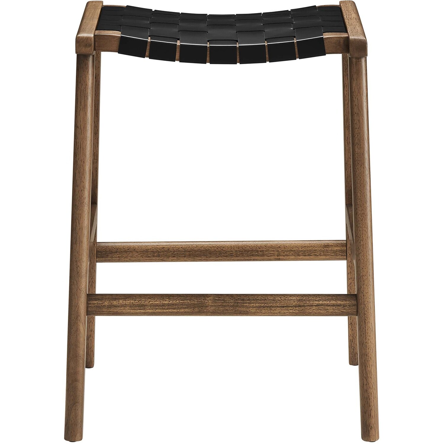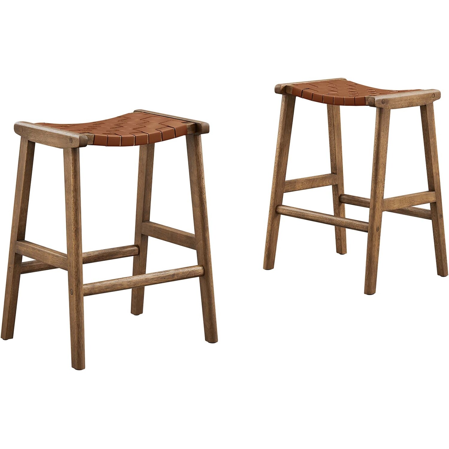 Spark engaging conversations with the Saoirse Counter Stool Set of Two. Artfully crafted with woven leather over a sturdy rubberwood frame, this set of two counter stools blends contemporary design with tactile elegance. Non-marking foot pads ensure both stability and floor protection, while the basket weave design, footrests, and side supports make for a personalized seating experience. These counter stools are perfect for the kitchen, breakfast nook, bar area, dining counter, or entertainment room. Assembly required. Weight Capacity: 331 lbs.Woven Leather