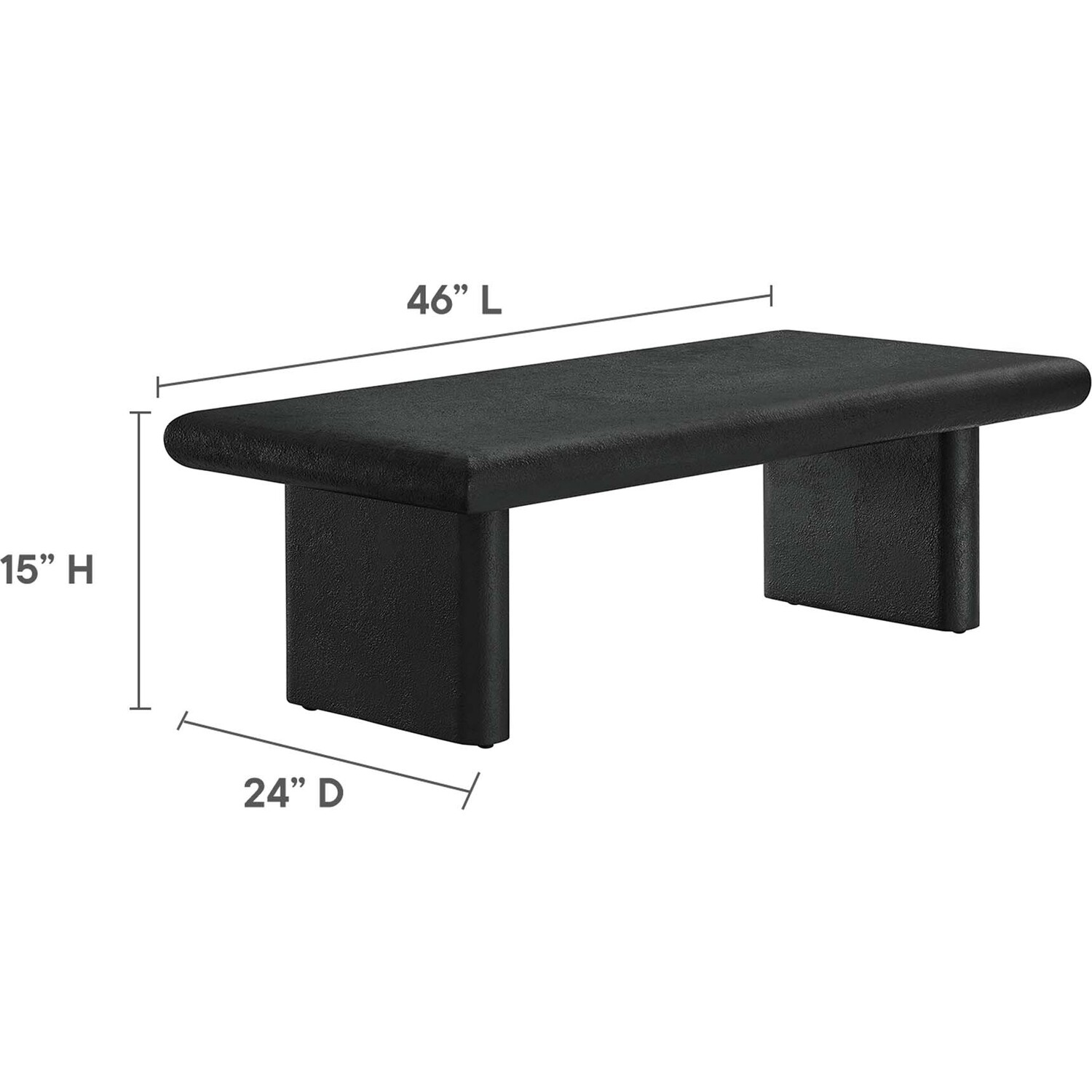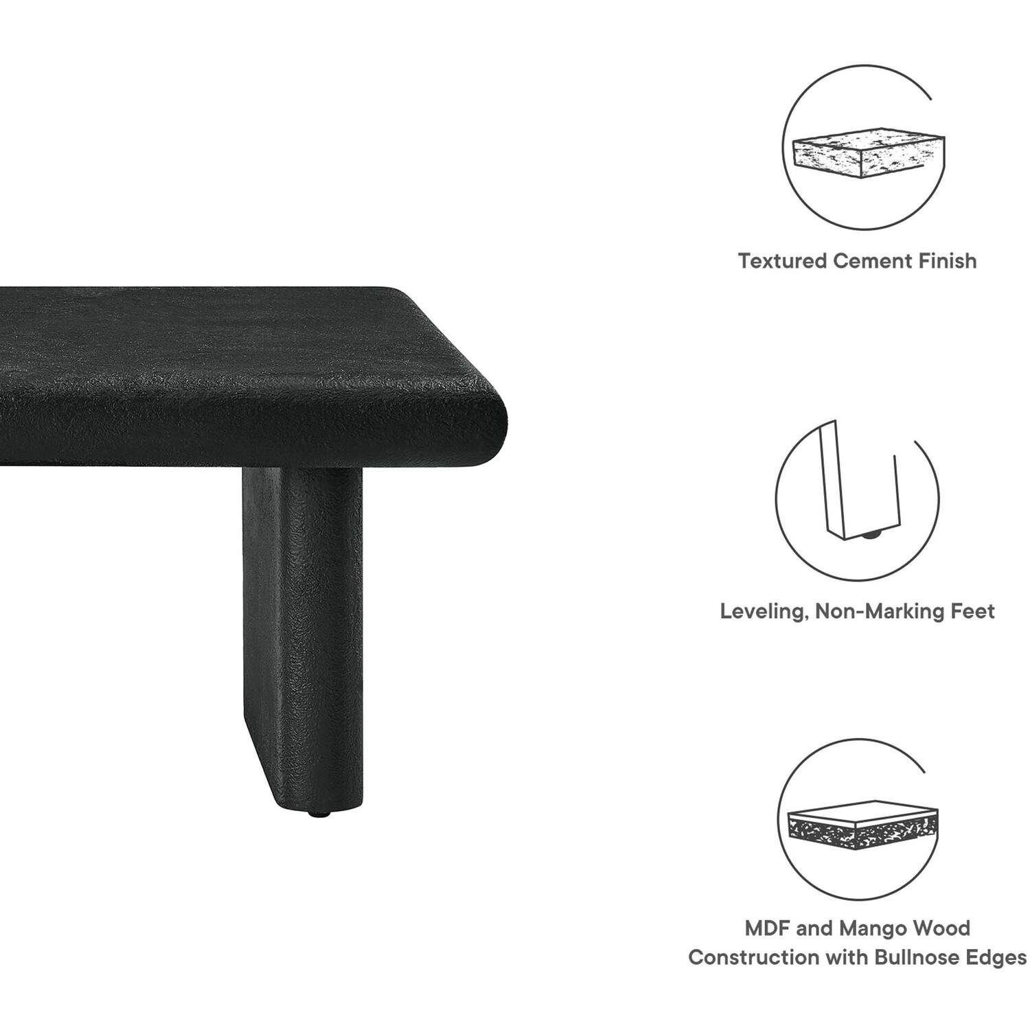 Step beyond the usual with the stylish Relic 46" Coffee Table. Crafted from MDF and mango wood and topped with a textured cement concrete finish, lasting durability complements the eye-catching design. With sleek bullnose edges, this coffee table boasts gentle contours, making it perfect for modern minimalist design schemes. An ideal spot for your latest read or preferred beverage, this table effortlessly elevates the living room, home office, or lounge. Equipped with leveling, non-marking feet. Assembly Required. Weight capacity: 287 lbsMDF and Mango Wood