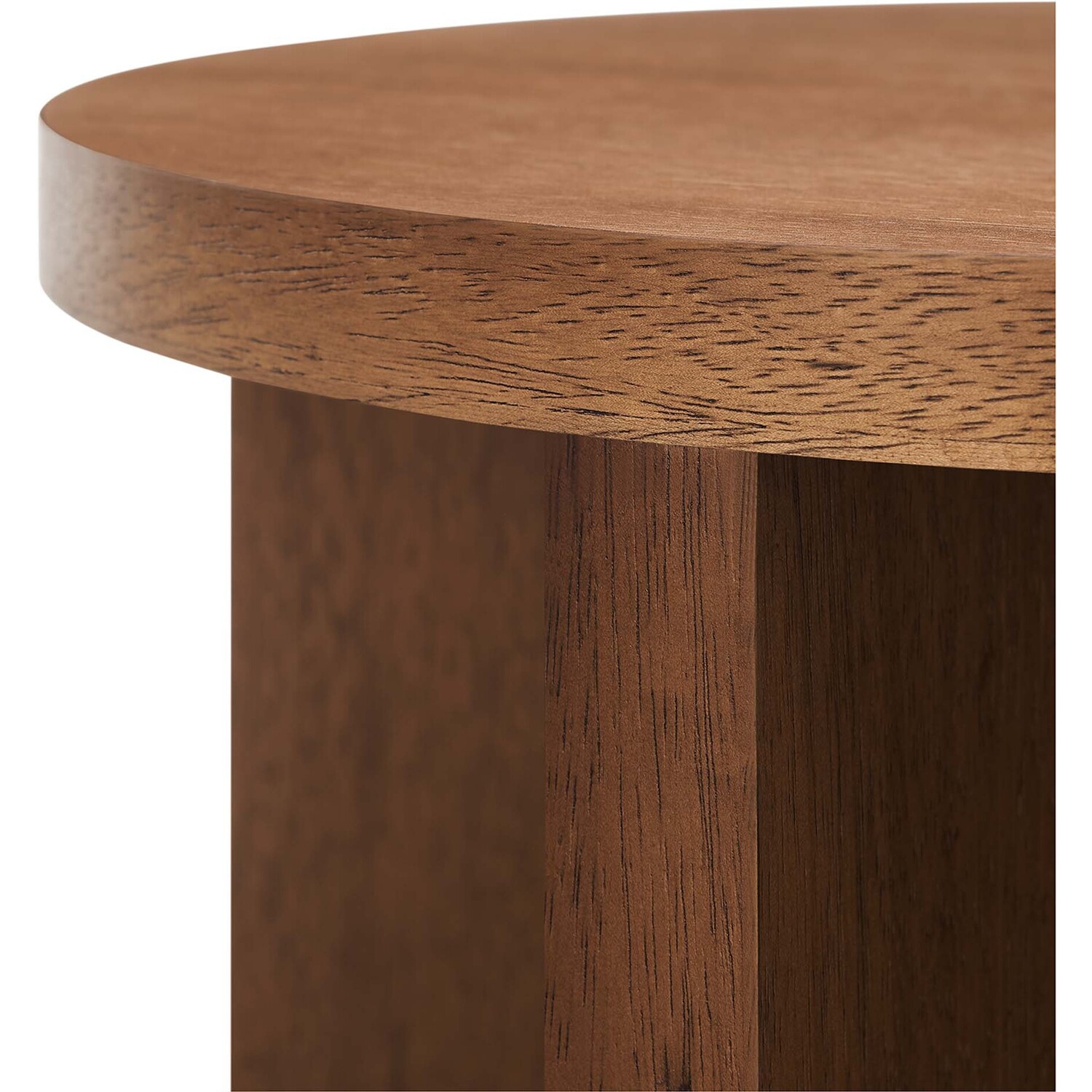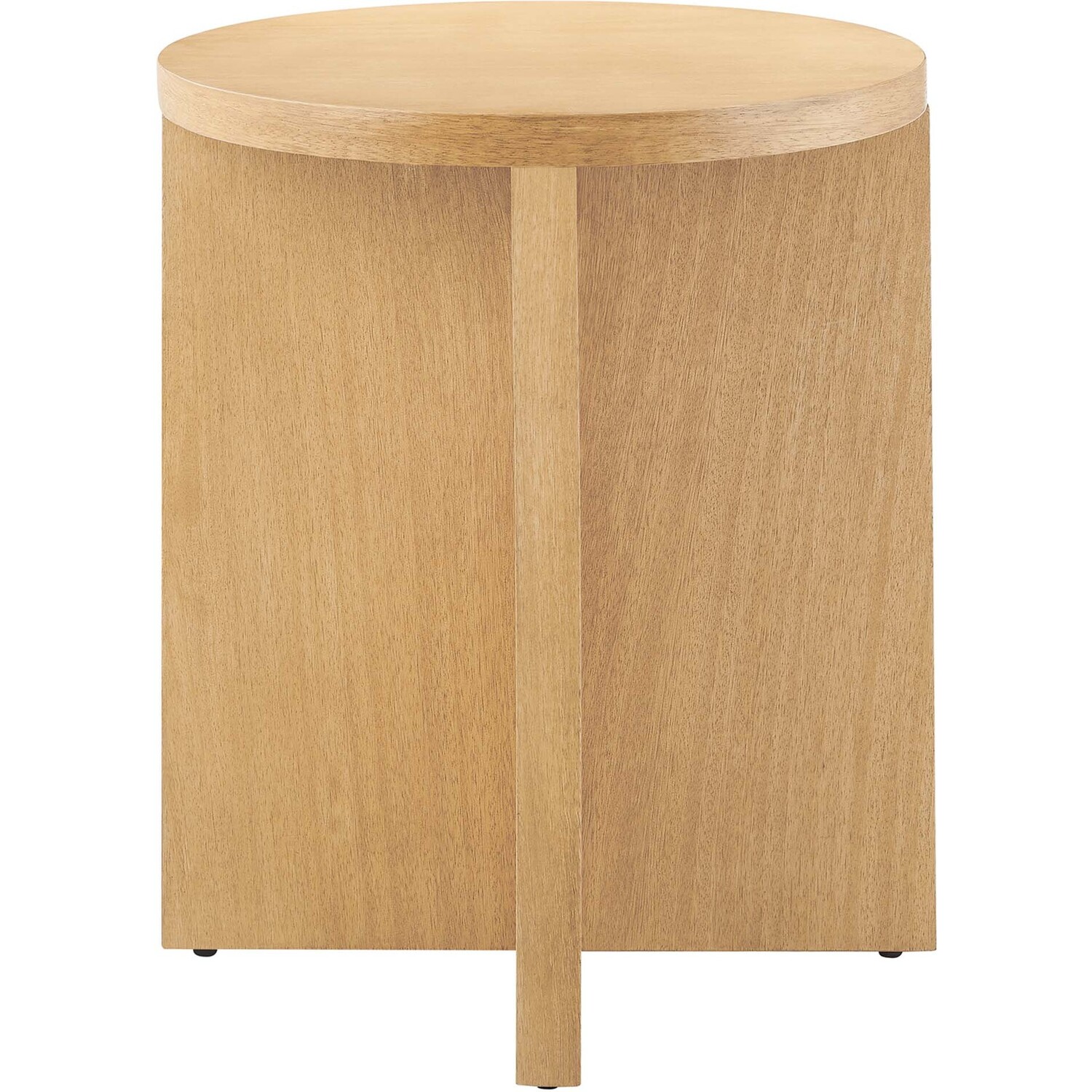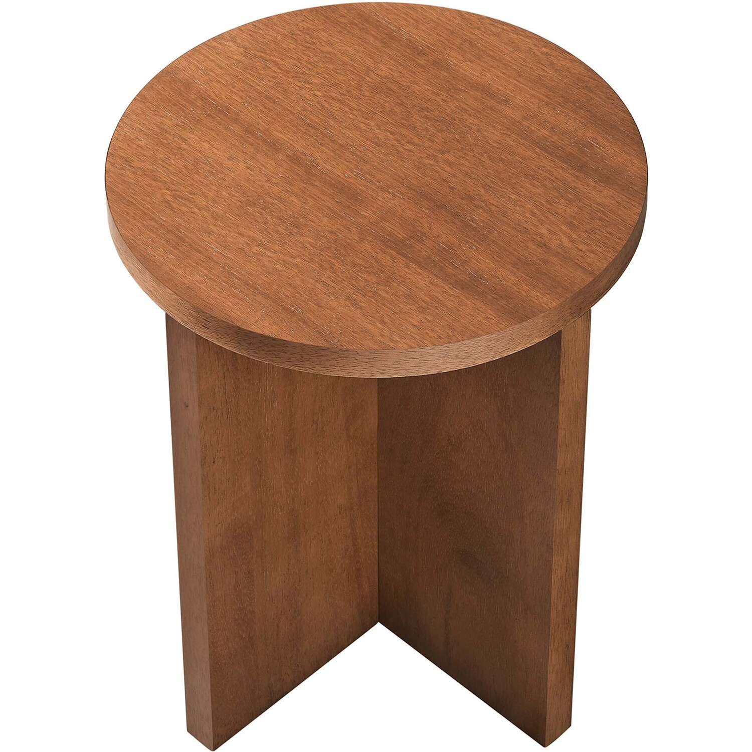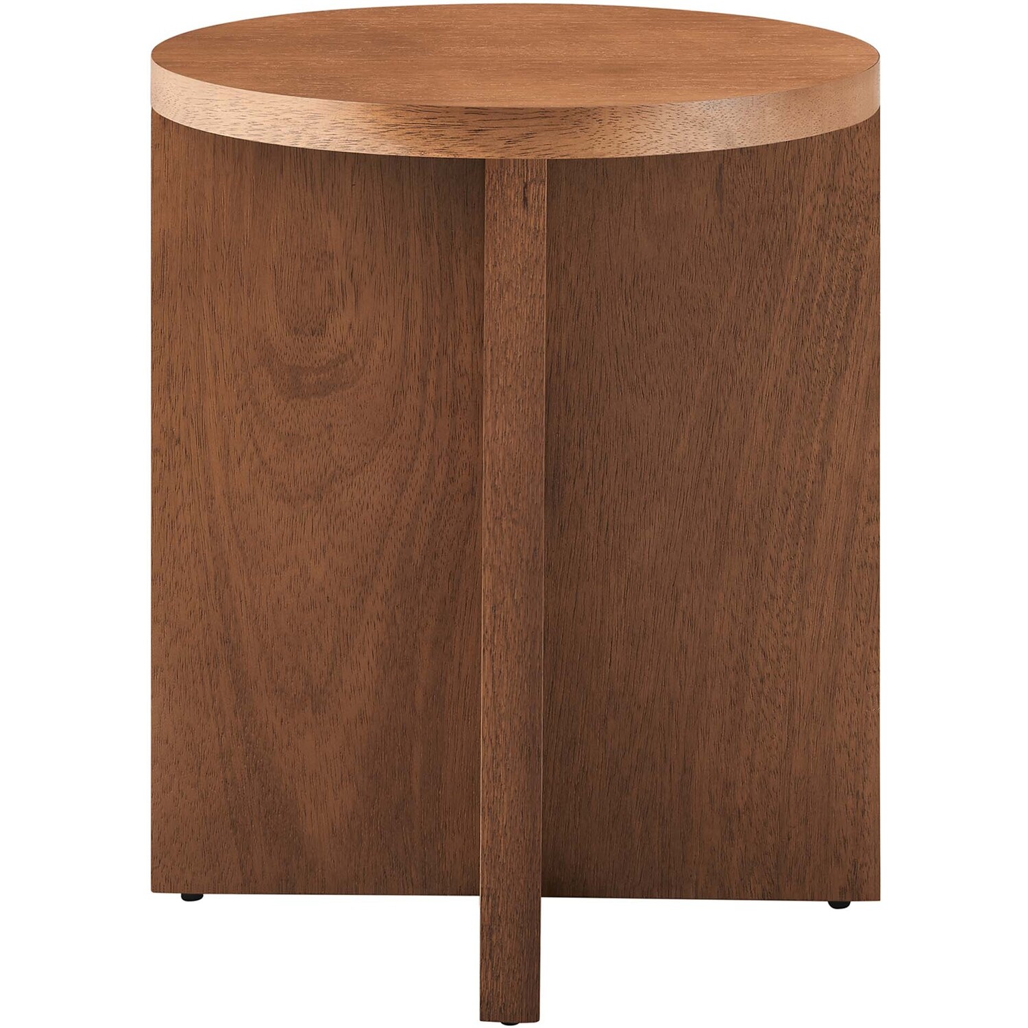Combining rustic charm with contemporary innovation, the Silas Round Wood Side Table stands out in modern settings. Made from solid mango wood and veneer, this accent table is anchored by a solid X-shaped base formed by two intersecting wood pieces, providing both stability and a cutting-edge design. With sleek contours and distinctive wood grain, this sofa end table exudes its own unique charm while showcasing the timeless allure of authentic mango wood. An impeccable addition to living rooms, lounge spaces, entryways, or hallways, this round side table balances raw beauty with polished finesse. Beyond the striking design, this living room end table serves as the perfect accent piece, gracefully holding your favorite beverage, books, or an indoor plant. For added practicality and floor protection, this table comes equipped with leveling, non-marking feet. Assembly Required. Weight Capacity: 132 lbsModern Round Side Table