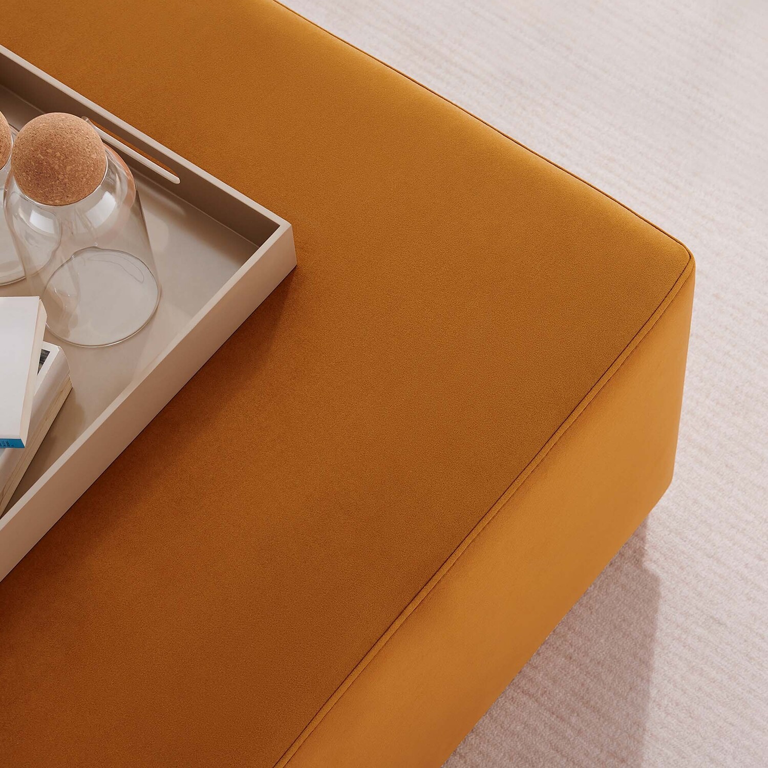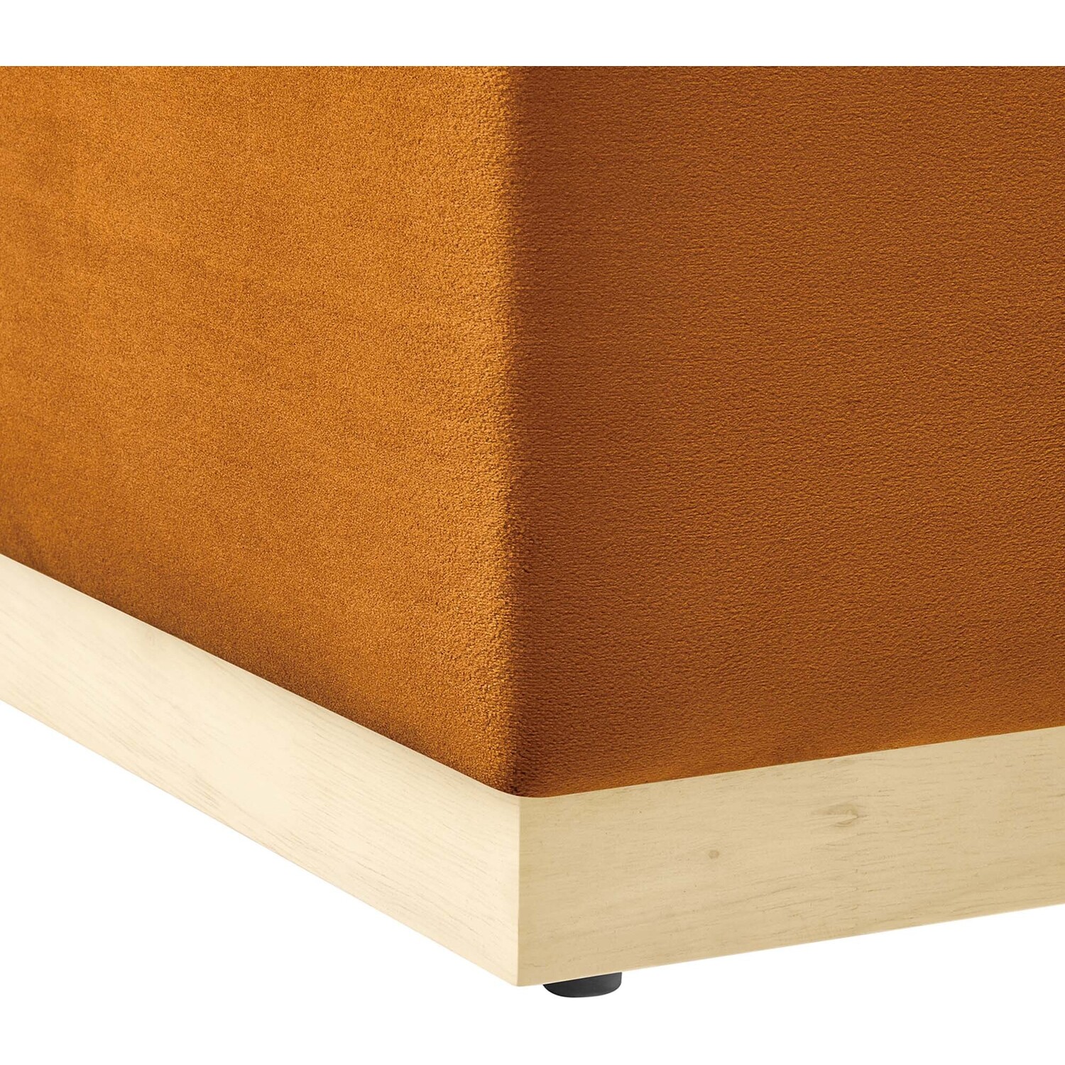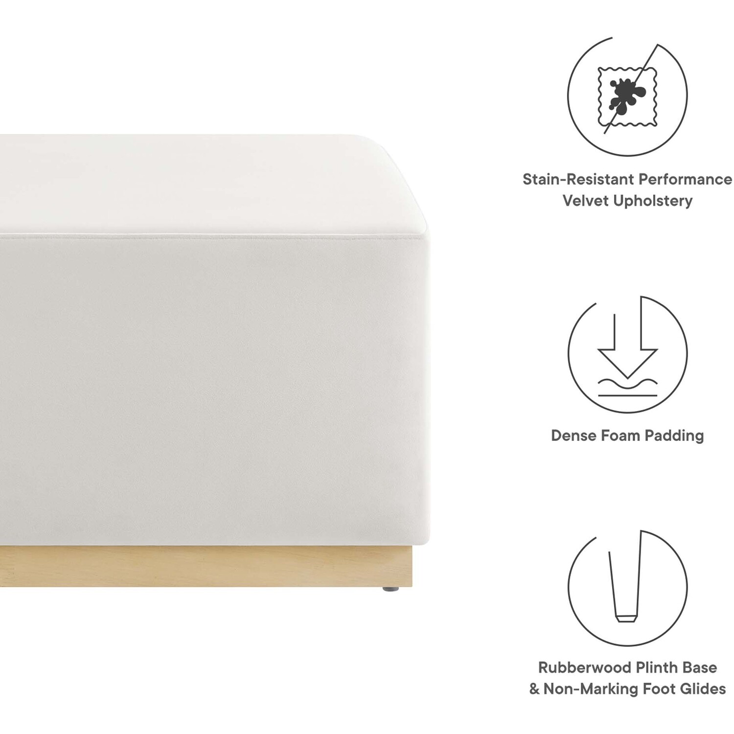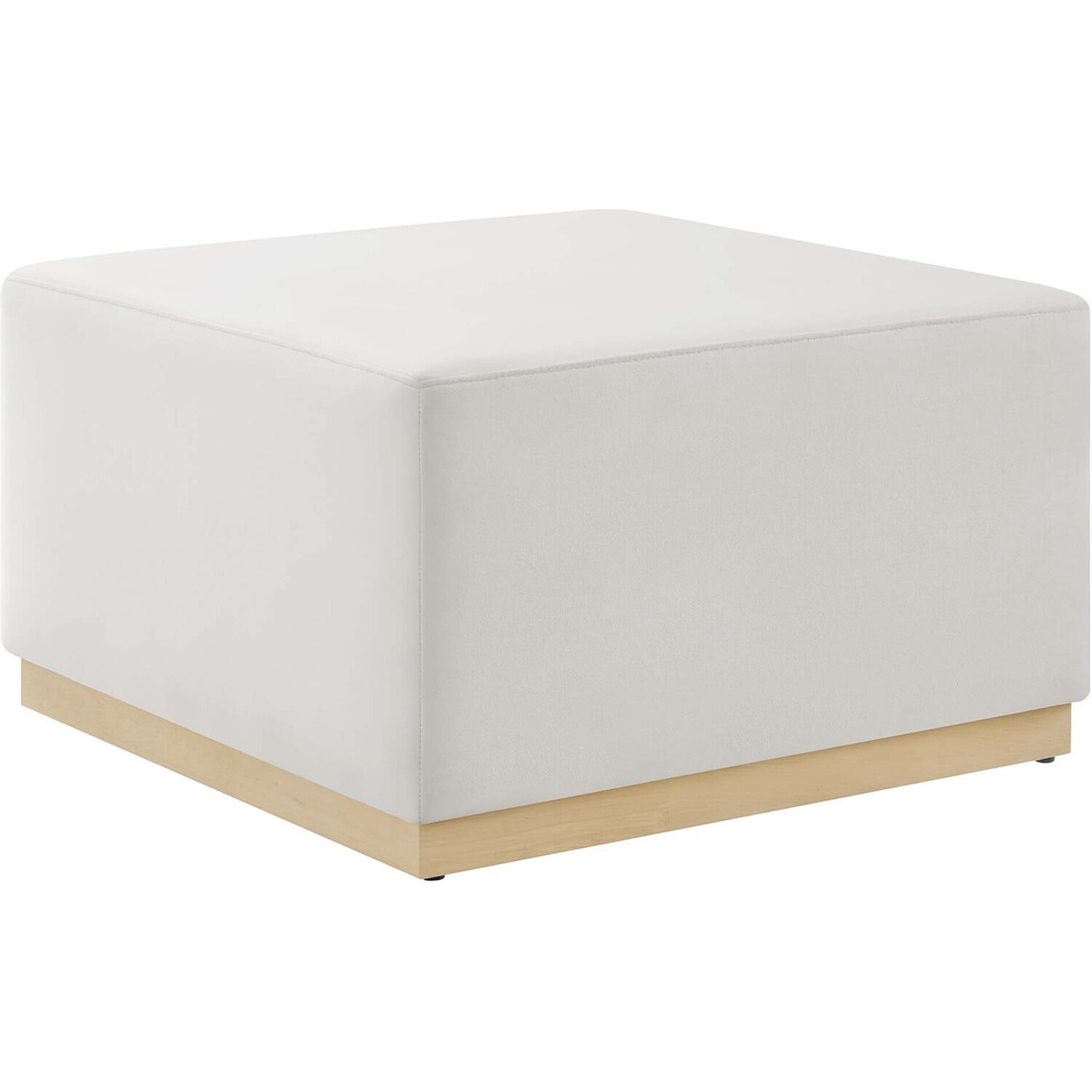 Delight in the elegance of the Tilden 28" Square Upholstered Ottoman, an ideal accent ottoman for modern homes, offices, or cozy apartments. Upholstered in stain-resistant performance velvet with French piping trim, this large ottoman footstool offers both luxury and durability. Its tailored silhouette complements contemporary décor, while the dense foam padding provides versatile use as a comfortable ottoman seat, large footrest, or living room ottoman coffee table. Resting on a rubberwood plinth base with non-marking glides, this ottoman table protects your floors from damage. Arriving fully assembled, the Tilden velvet ottoman combines chic style and functionality. Weight Capacity: 506 lbs.Performance Velvet Upholstery