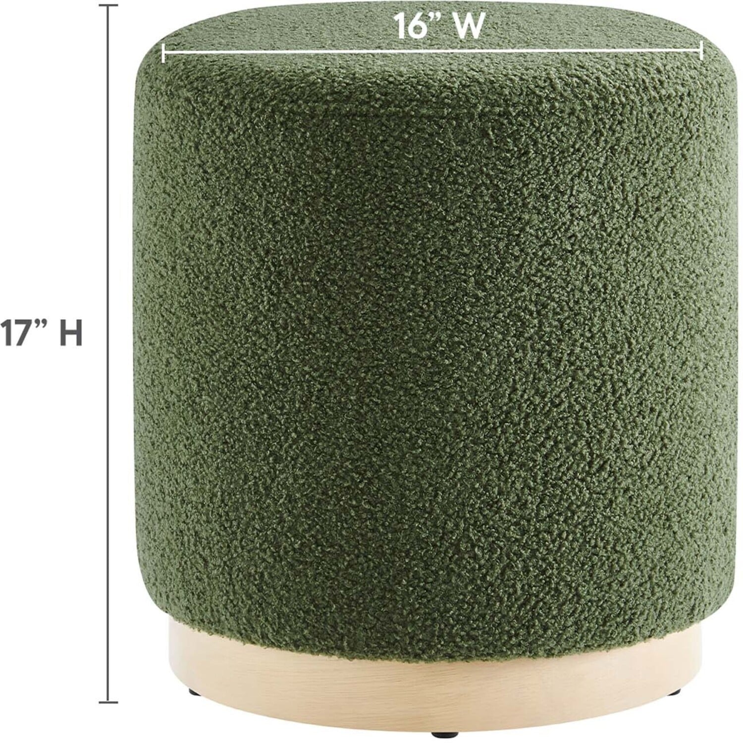 Delight in the elegance of the Tilden 16" Round Upholstered Ottoman, an ideal accent ottoman for modern homes, offices, or cozy apartments. Upholstered in sherpa fabric with a soft, teddy-like texture, this small ottoman footstool offers both luxury and durability. Its tailored silhouette complements contemporary décor, while the dense foam padding provides versatile use as a comfortable ottoman seat, footrest, small side table, or a stylish vanity seat. Resting on a rubberwood plinth base with non-marking glides, this ottoman stool protects your floors from damage. The Tilden sherpa ottoman’s compact size makes it a perfect small ottoman for tight spaces. Arriving fully assembled, this modern sitting stool combines chic style and functionality. Weight Capacity: 506 lbs.Sherpa Fabric Upholstery