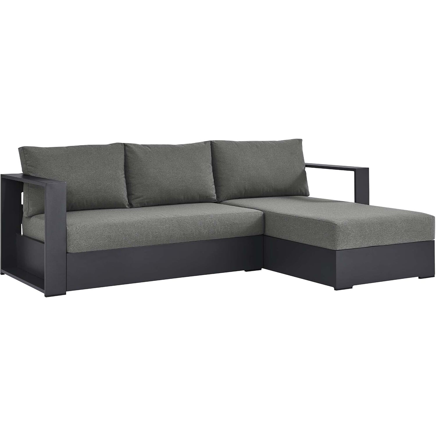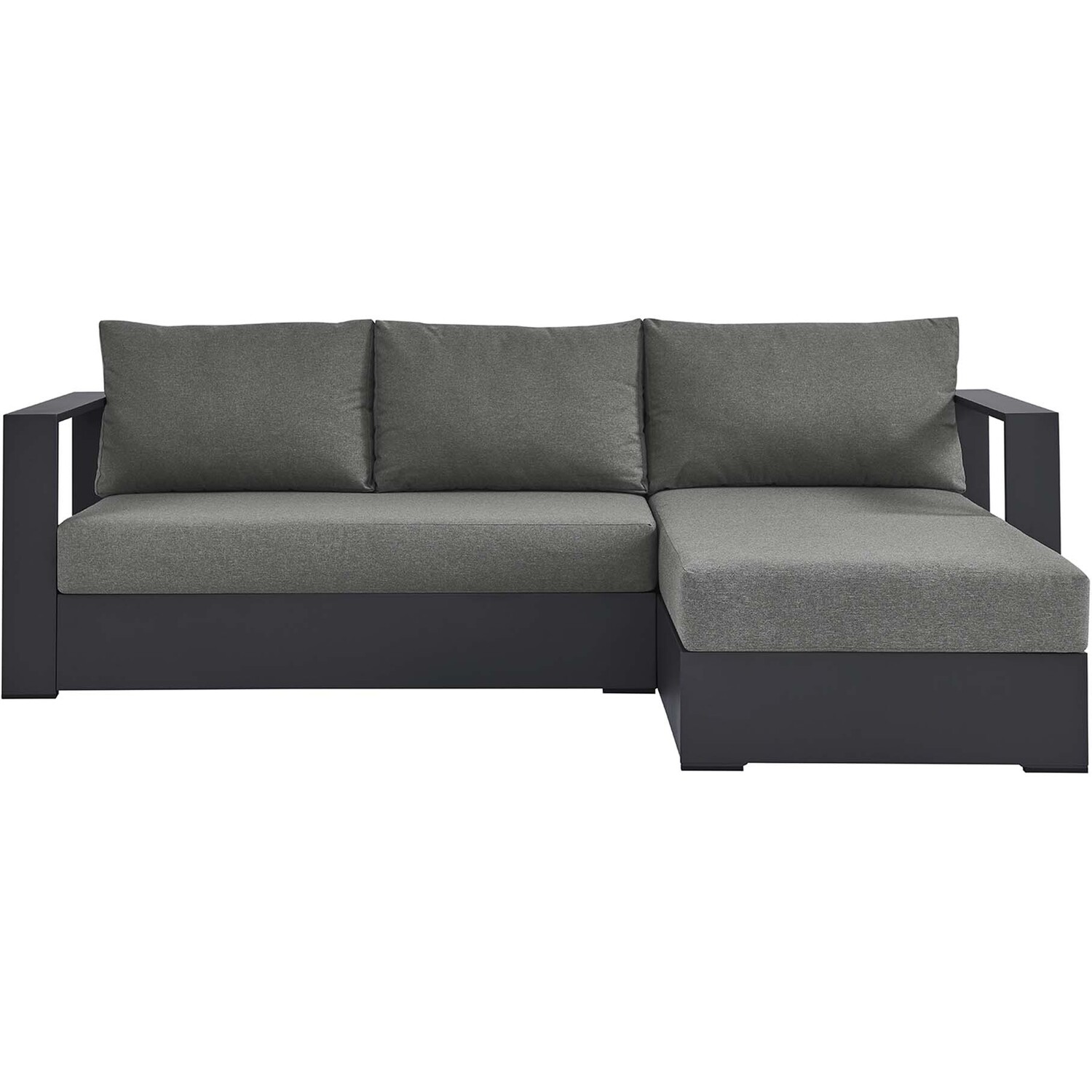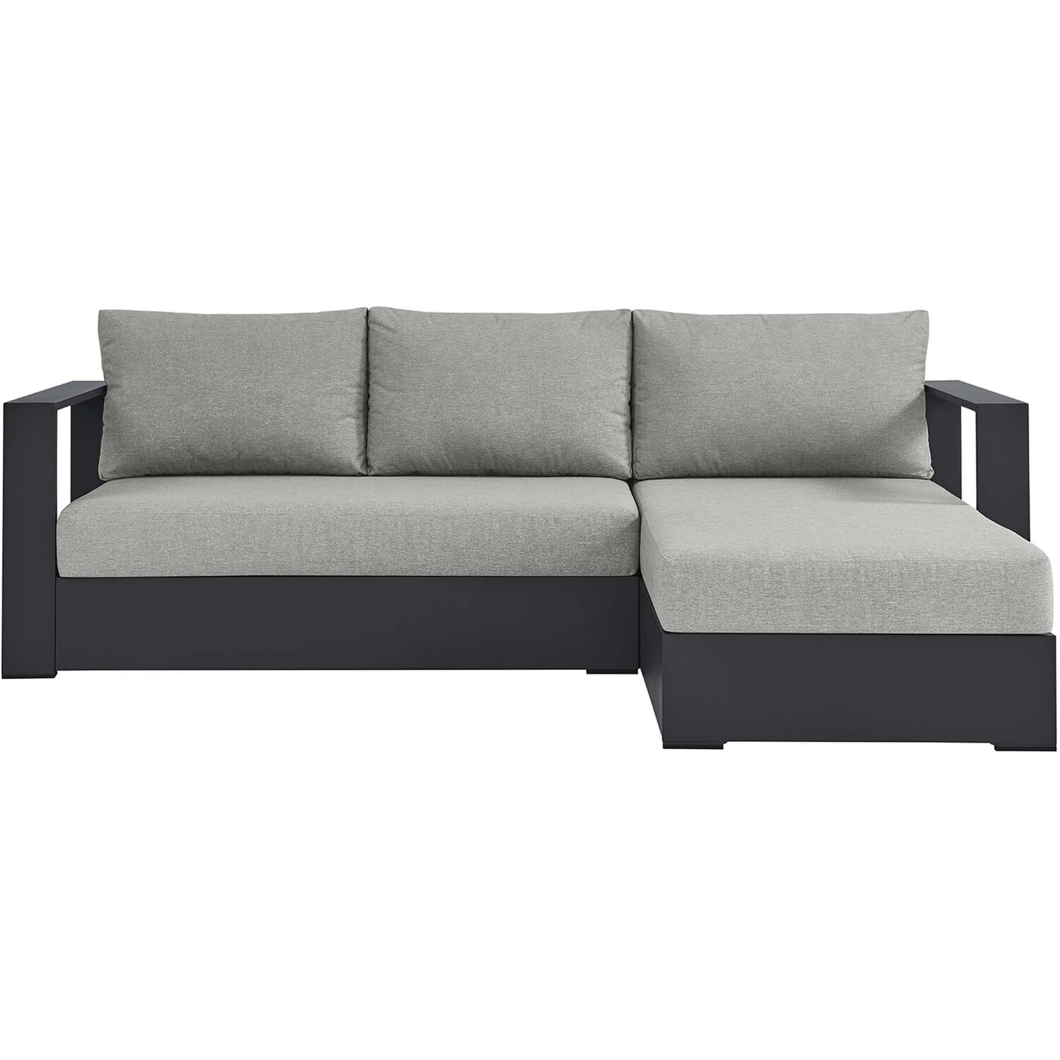 Enliven your alfresco spaces with the Tahoe Aluminum Outdoor Patio 2-Piece Sectional Sofa. This modern sectional sofa is constructed with well-crafted, durable powder-coated aluminum, dispensing contemporary elegance in your outdoor lounge spaces. Its dense foam padding ensures sustained comfort, making it ideal for poolside lounging or as outdoor deck furniture, complete with UV and water-resistant fabric-covered seats and backrests. The cushion covers are removable for easy machine washing. Part of a modular outdoor furniture collection, this 2-Piece sectional sofa offers adaptability and style while entertaining or relaxing. The entire Tahoe aluminum patio furniture set features non-marking foot glides to protect your deck or patio floor and comes with easy-to-follow assembly instructions. Set Includes: 1 Left-Facing Loveseat (Weight Capacity: 661 lbs.), 1 Right-Facing Chaise (Weight Capacity: 661 lbs.)Outdoor Patio Sectional Sofa
