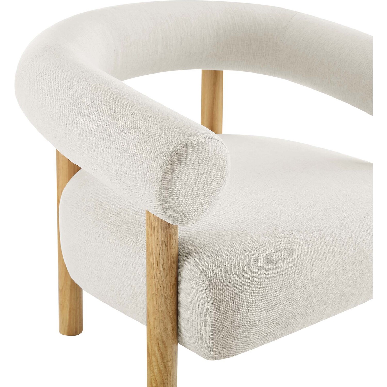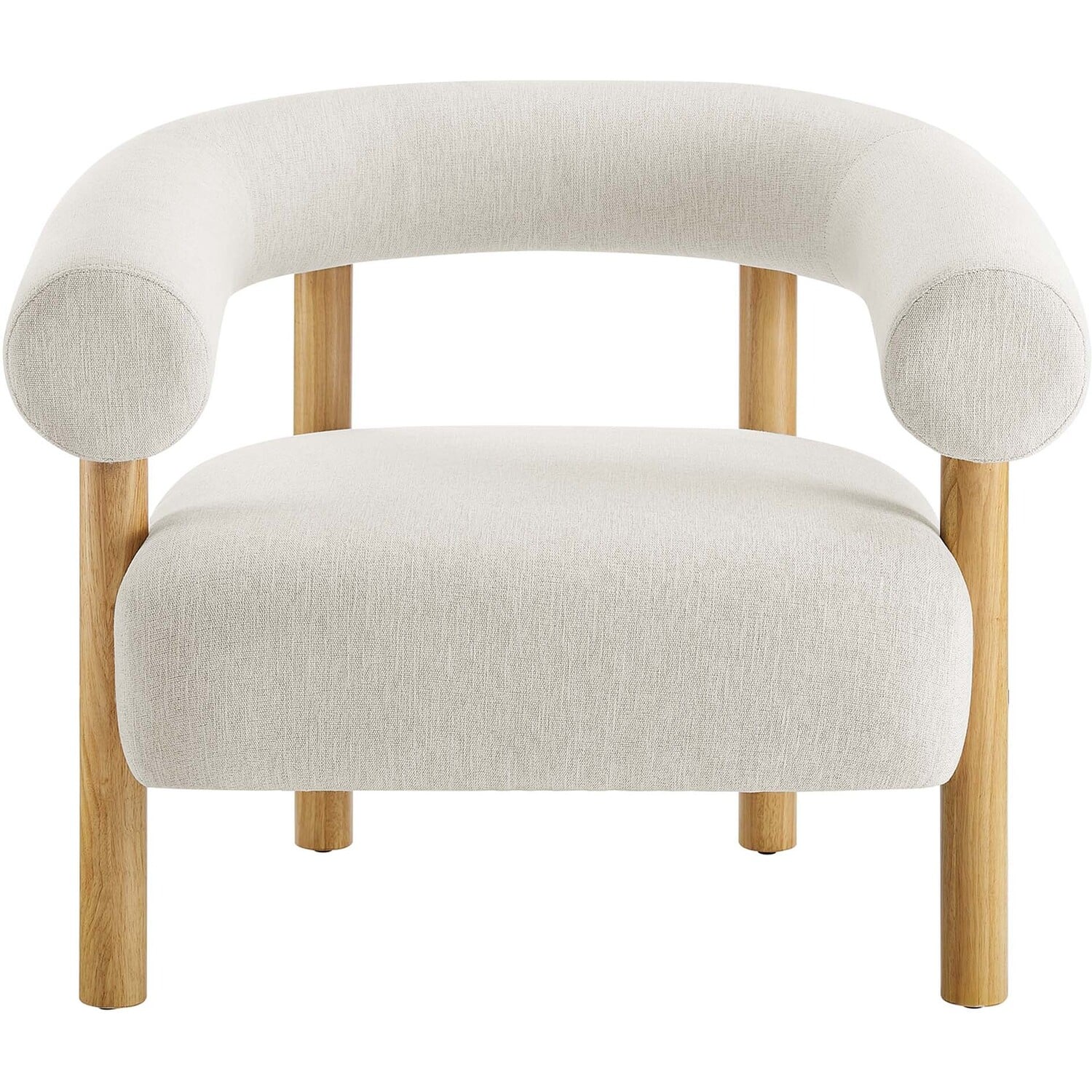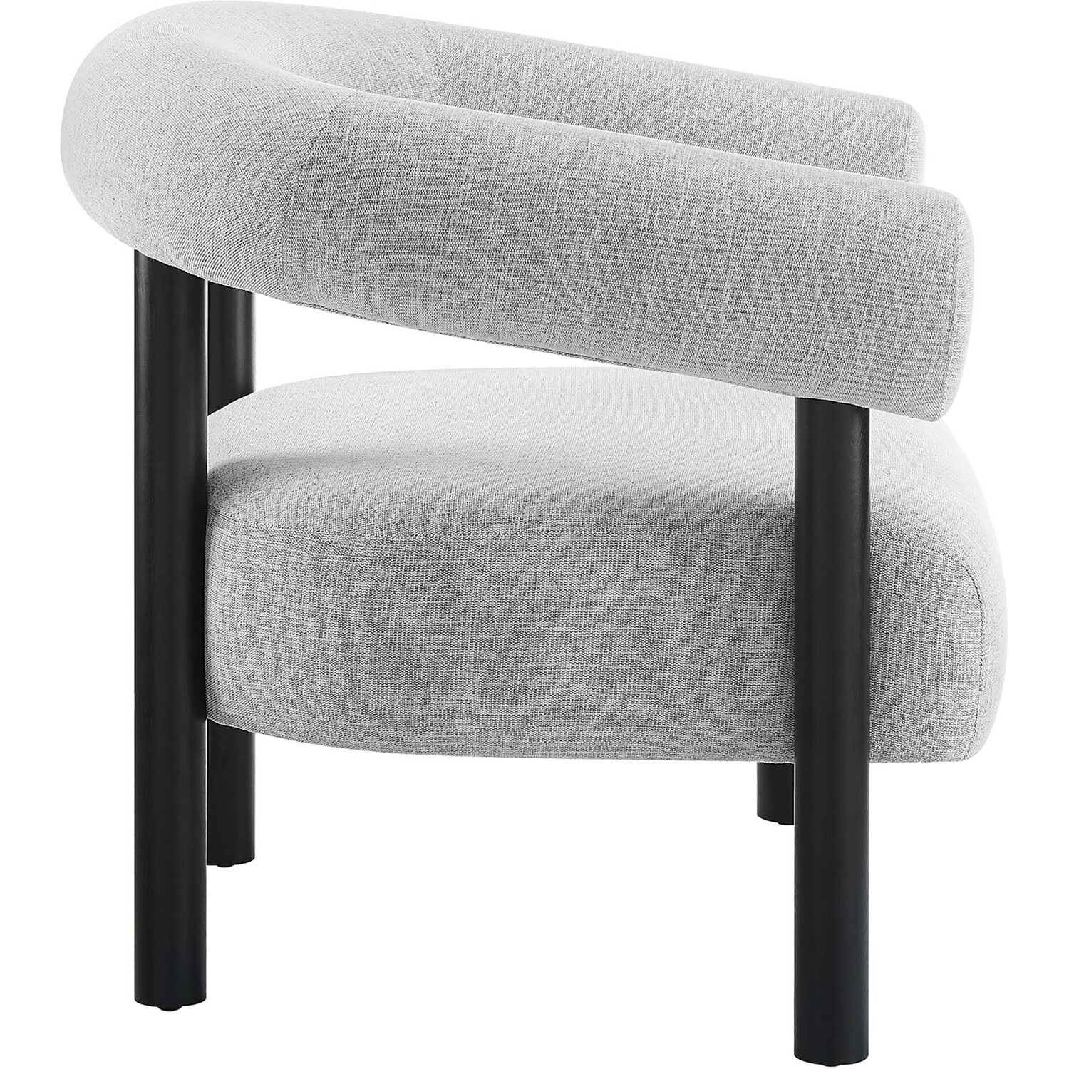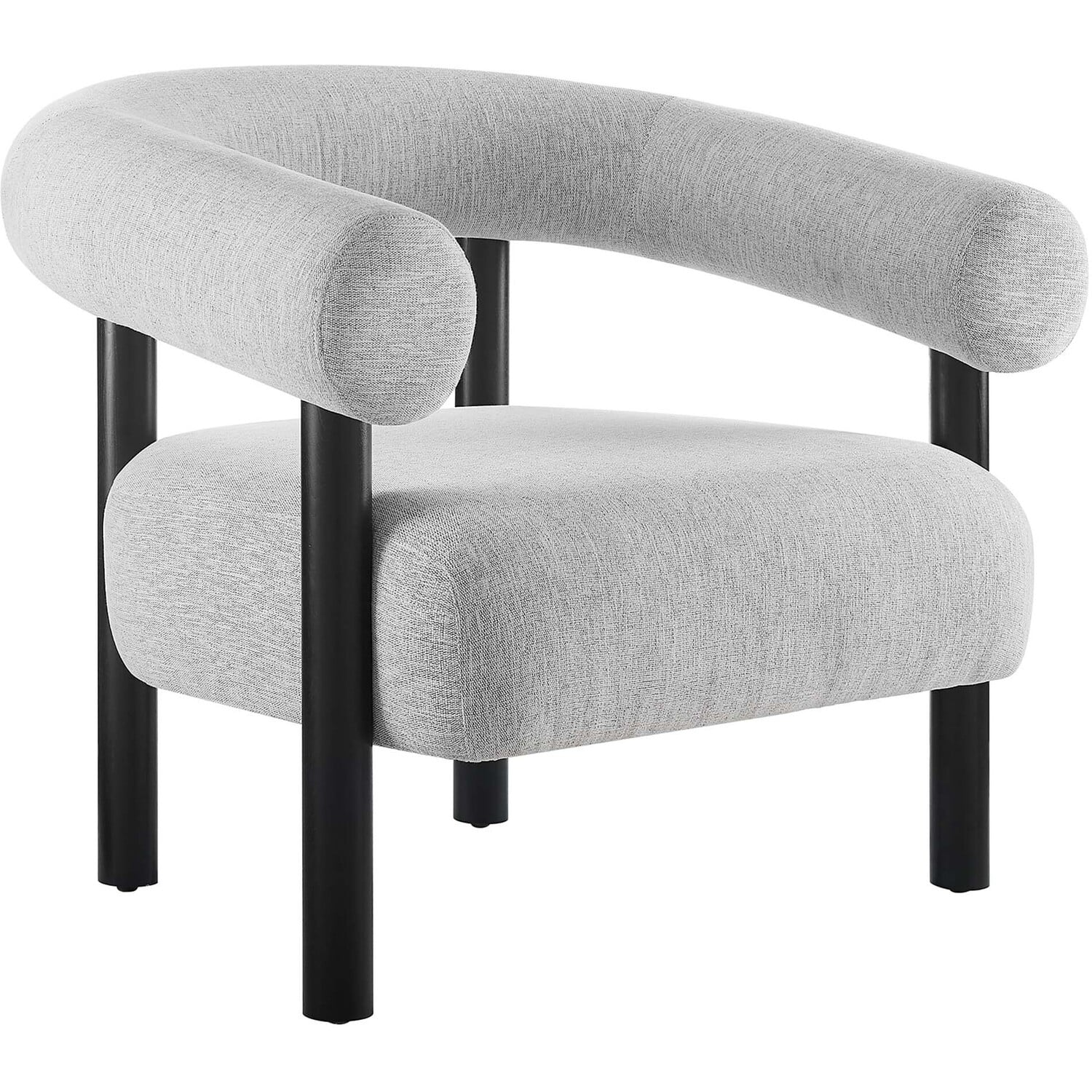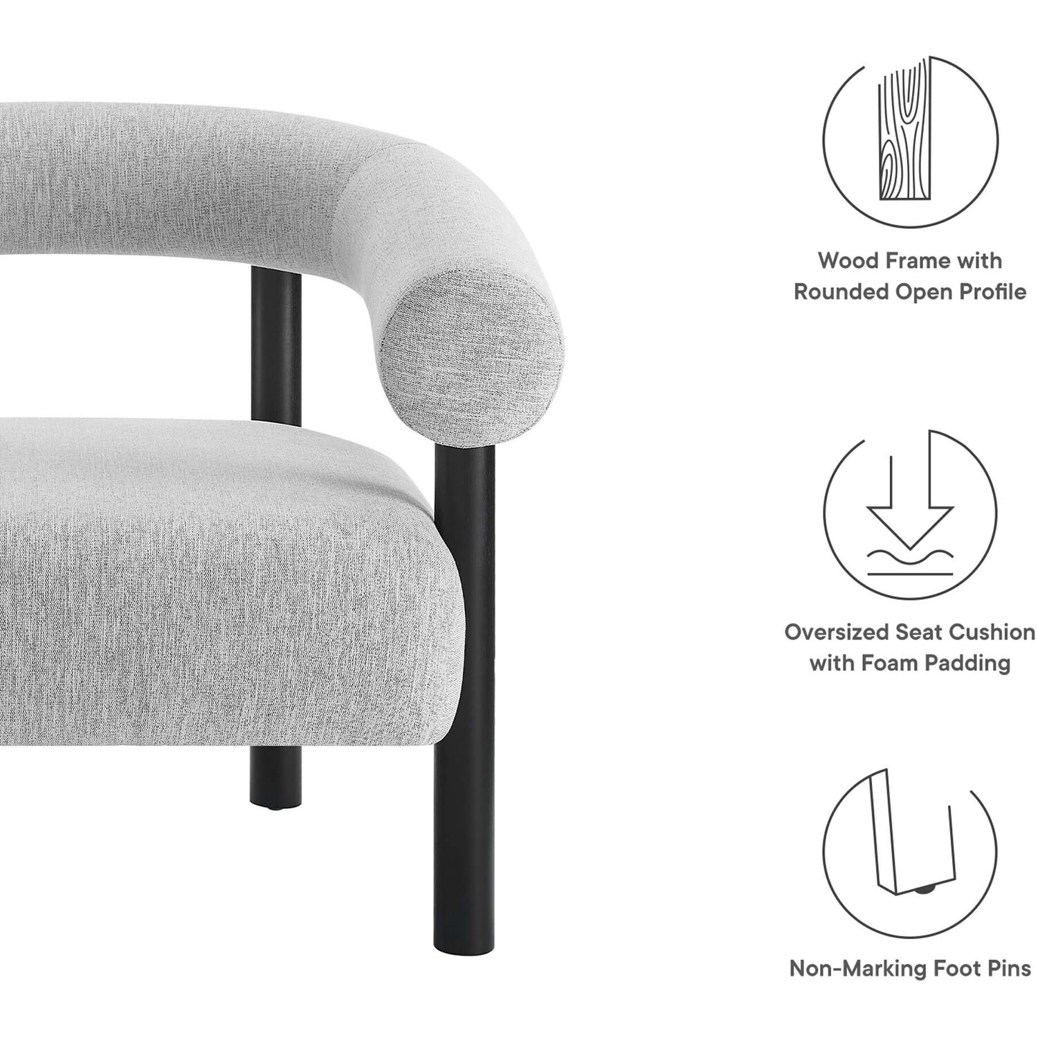 Add a dash of contemporary retro style to your living space with the Sable Armchair. Boasting a forward-thinking design complemented by a rounded open profile, this accent lounge chair is a guaranteed ambiance enhancer for any room. Upholstered in heathered fabric, the Sable living room chair radiates a vintage allure with a subtle speckled pattern and soft texture. Anchored by a sturdy wood frame, the four wooden legs seamlessly ascend to support the wrap-around backrest. This chair's comfortably padded oversized seat cushion offers both support and comfort. Whether placed in a living room, accentuating a home office area, or offering a cozy reading nook, the Sable Armchair doesn't just occupy space—it transforms it. Includes non-marking foot pins for maximum floor protection. Ships Fully Assembled. Weight Capacity: 331 lbs.Rounded Open Profile