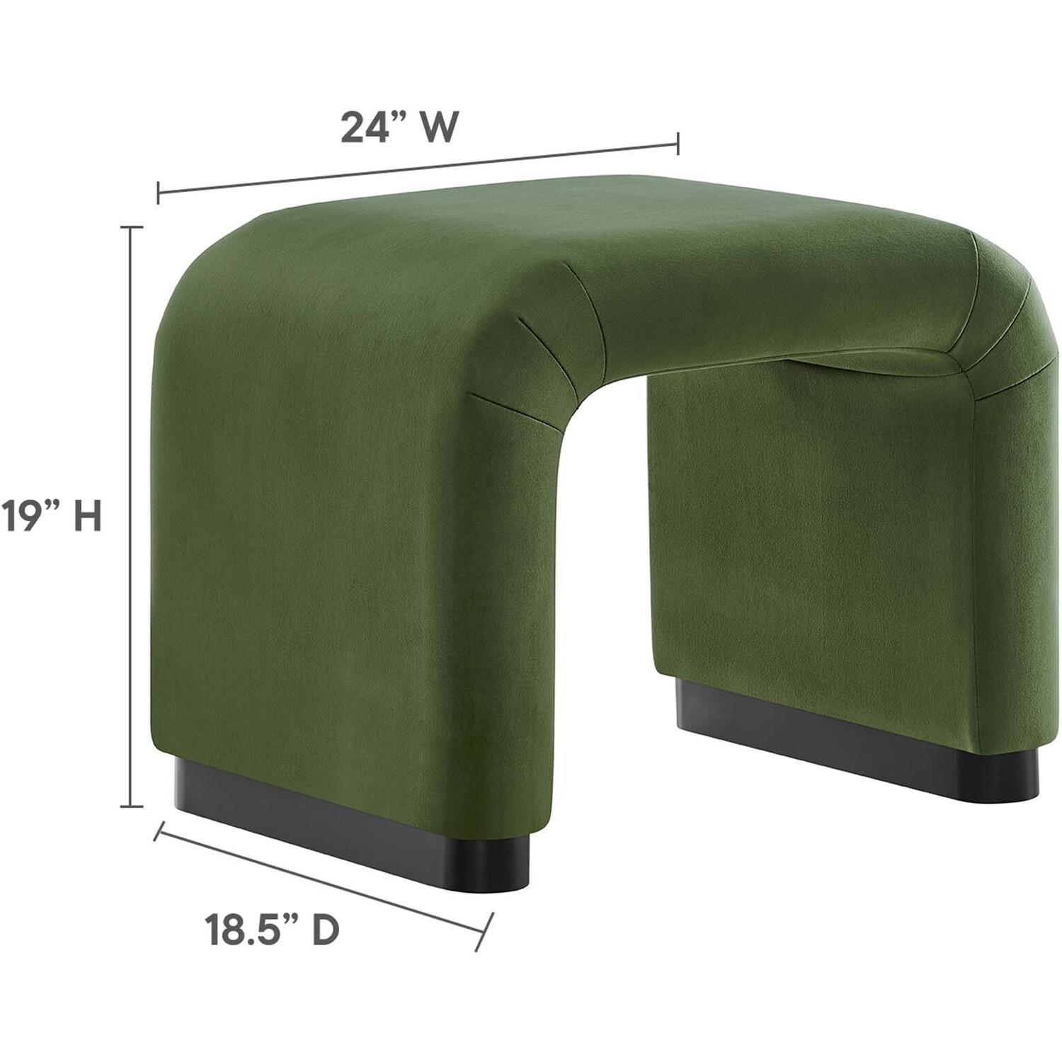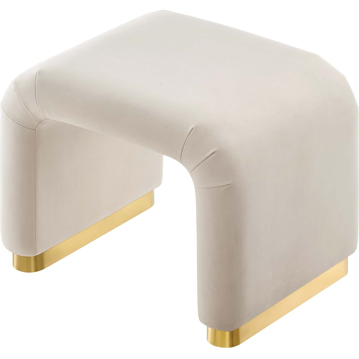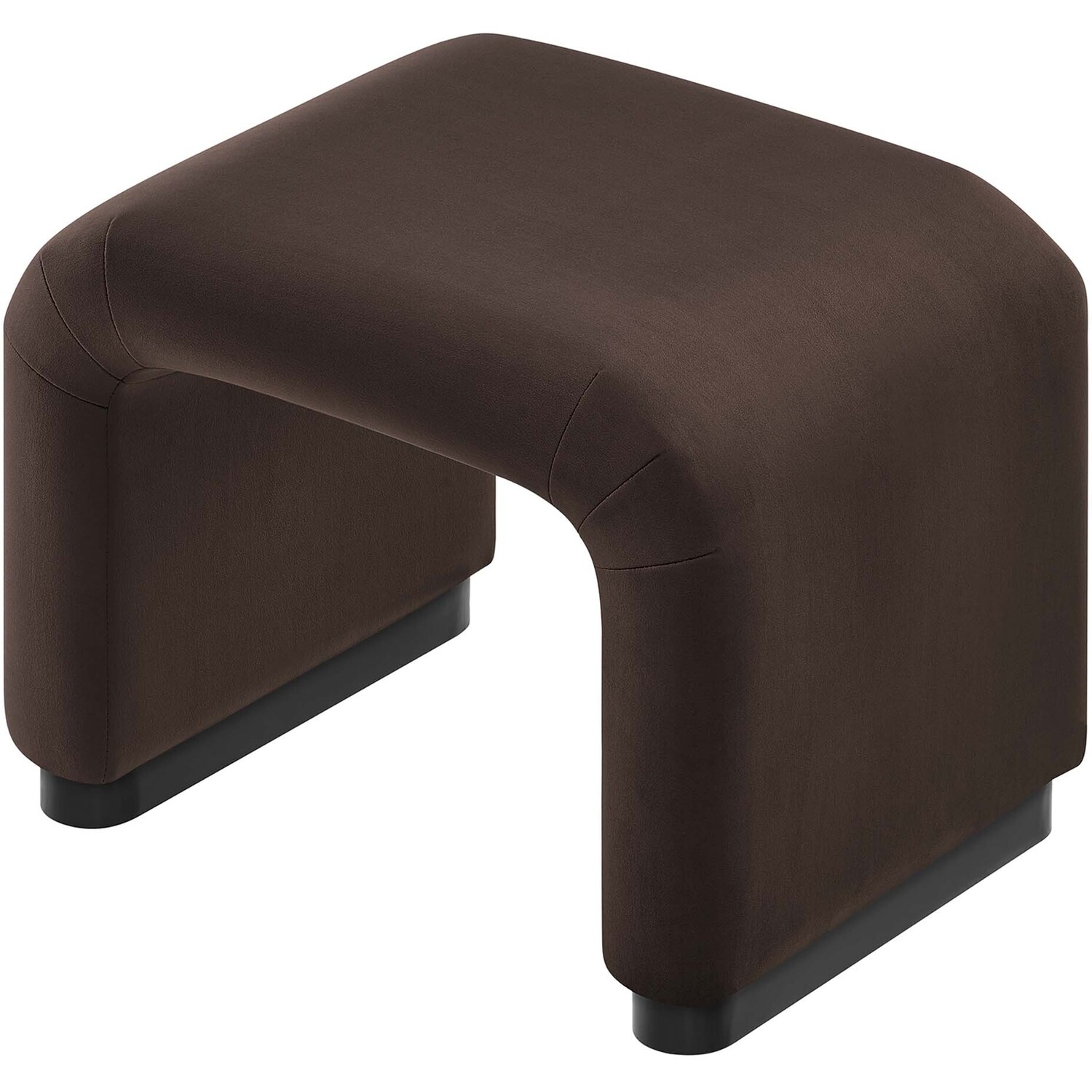 Let the Koda Performance Velvet Stool redefine your space with its style and adaptability. Crafted with a sturdy plywood frame, this backless stool exudes a soft and flowing silhouette. Koda features stain-resistant performance velvet upholstery and a unique waterfall design. This multifunctional piece serves as both a chic stool and a fashionable side table, effortlessly blending classic design with a touch of contemporary allure. The dense foam padding ensures a comfortable experience, whether as extra seating, a stylish surface, or a statement piece in your living room, lounge, or hallway. The Koda Upholstered Stool stands elegantly on a solid metal base with non-marking adjustable foot caps, ensuring stability while protecting your flooring. Assembly Required. Weight Capacity: 331 lbs.Performance Velvet Upholstery
