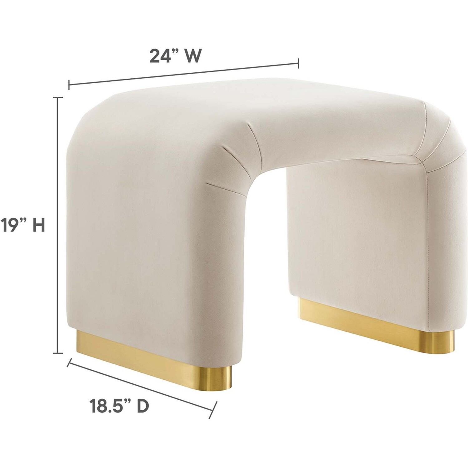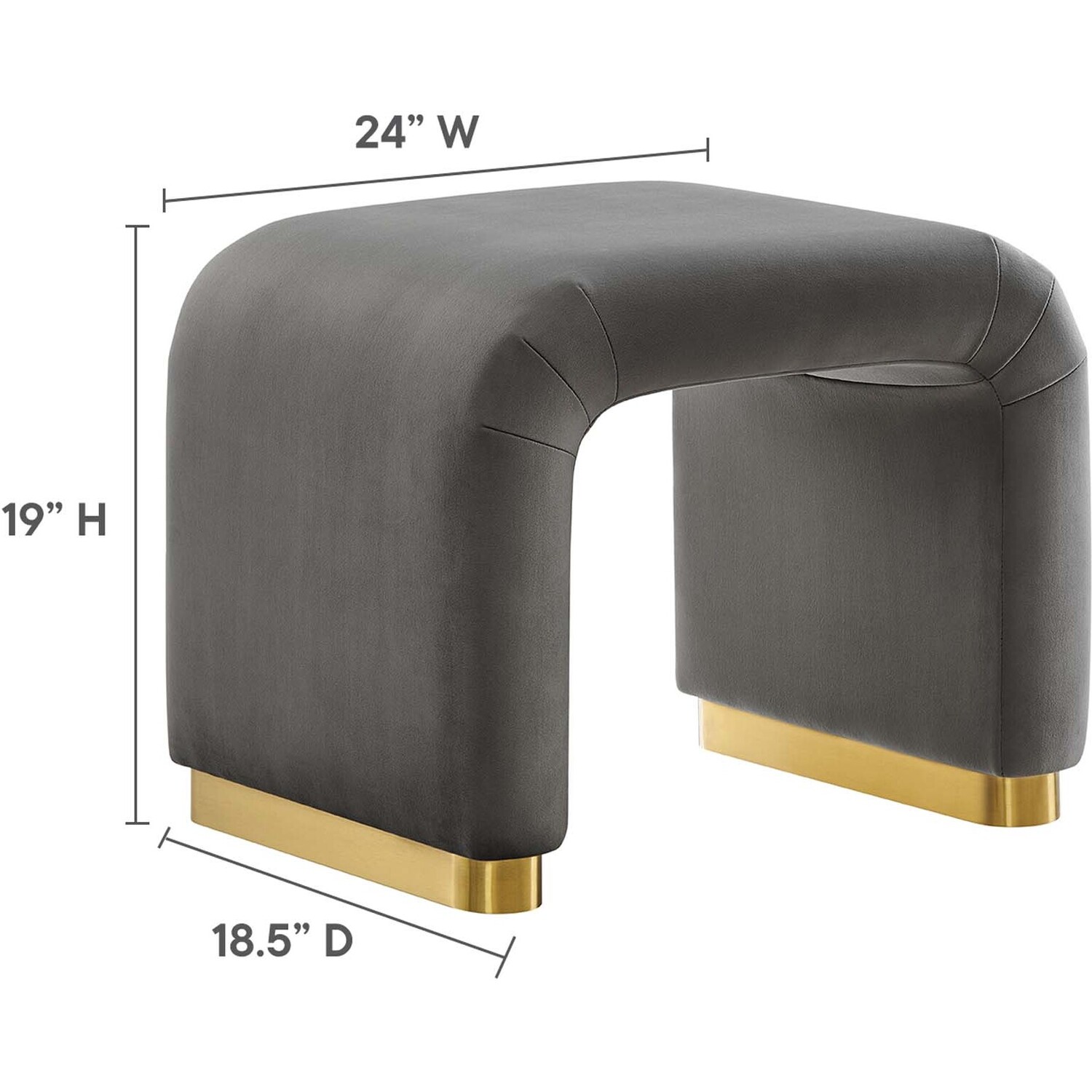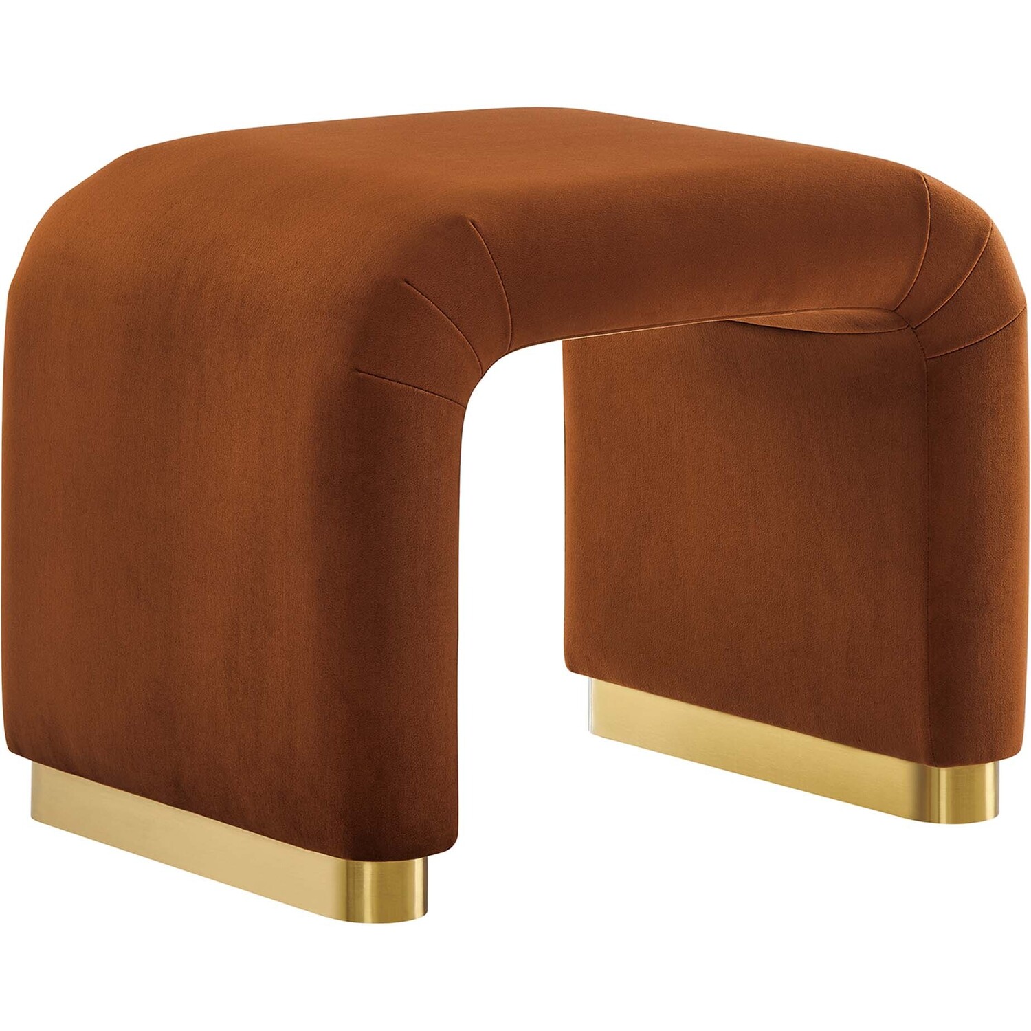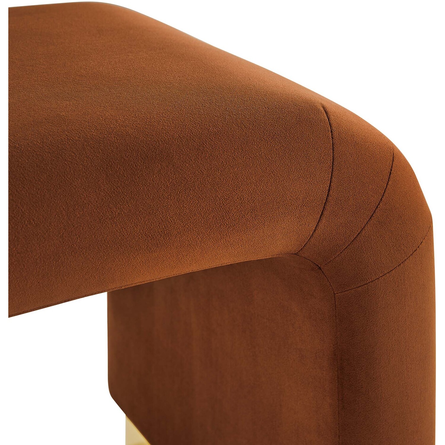 Let the Koda Performance Velvet Stool redefine your space with its style and adaptability. Crafted with a sturdy plywood frame, this backless stool exudes a soft and flowing silhouette. Koda features stain-resistant performance velvet upholstery and a unique waterfall design. This multifunctional piece serves as both a chic stool and a fashionable side table, effortlessly blending classic design with a touch of contemporary allure. The dense foam padding ensures a comfortable experience, whether as extra seating, a stylish surface, or a statement piece in your living room, lounge, or hallway. The Koda Upholstered Stool stands elegantly on a solid metal base with non-marking adjustable foot caps, ensuring stability while protecting your flooring. Assembly Required. Weight Capacity: 331 lbs.Performance Velvet Upholstery