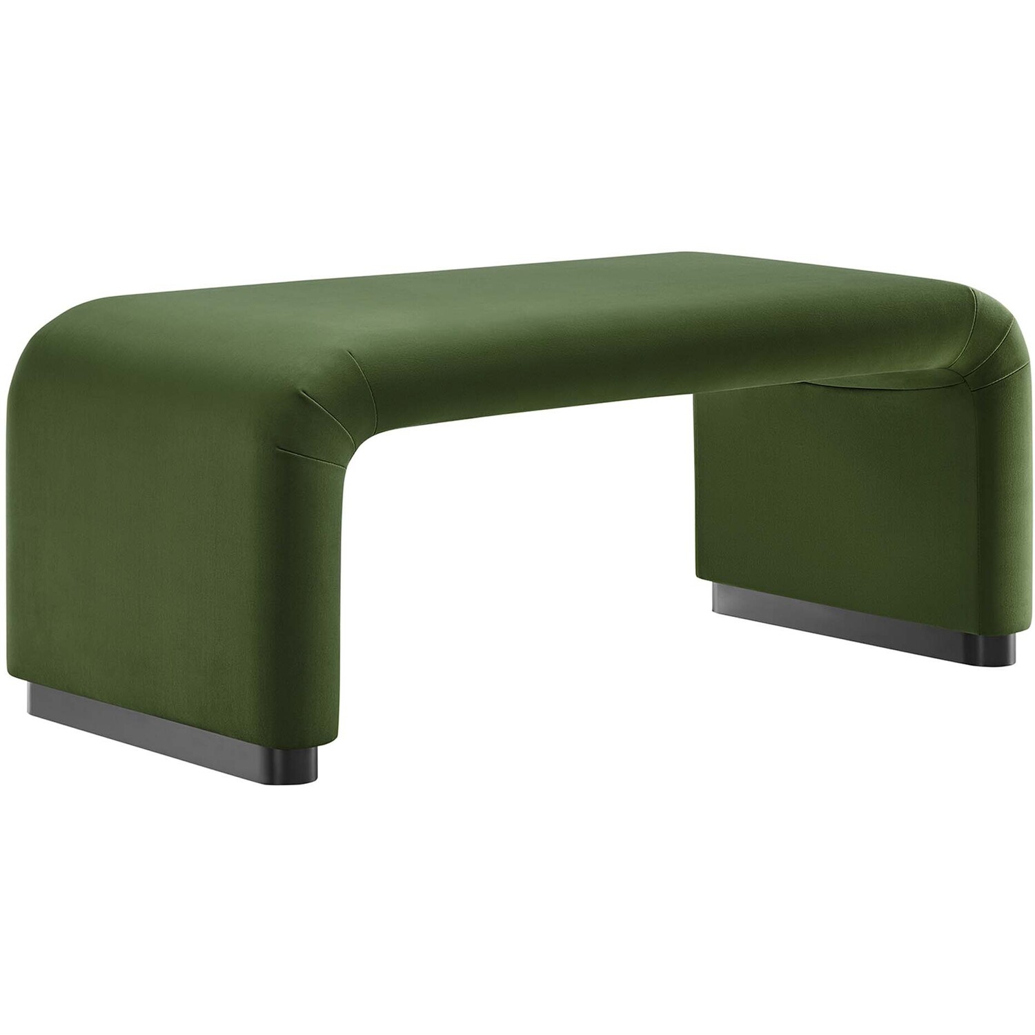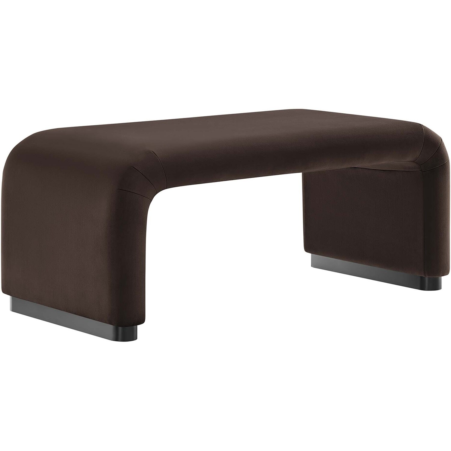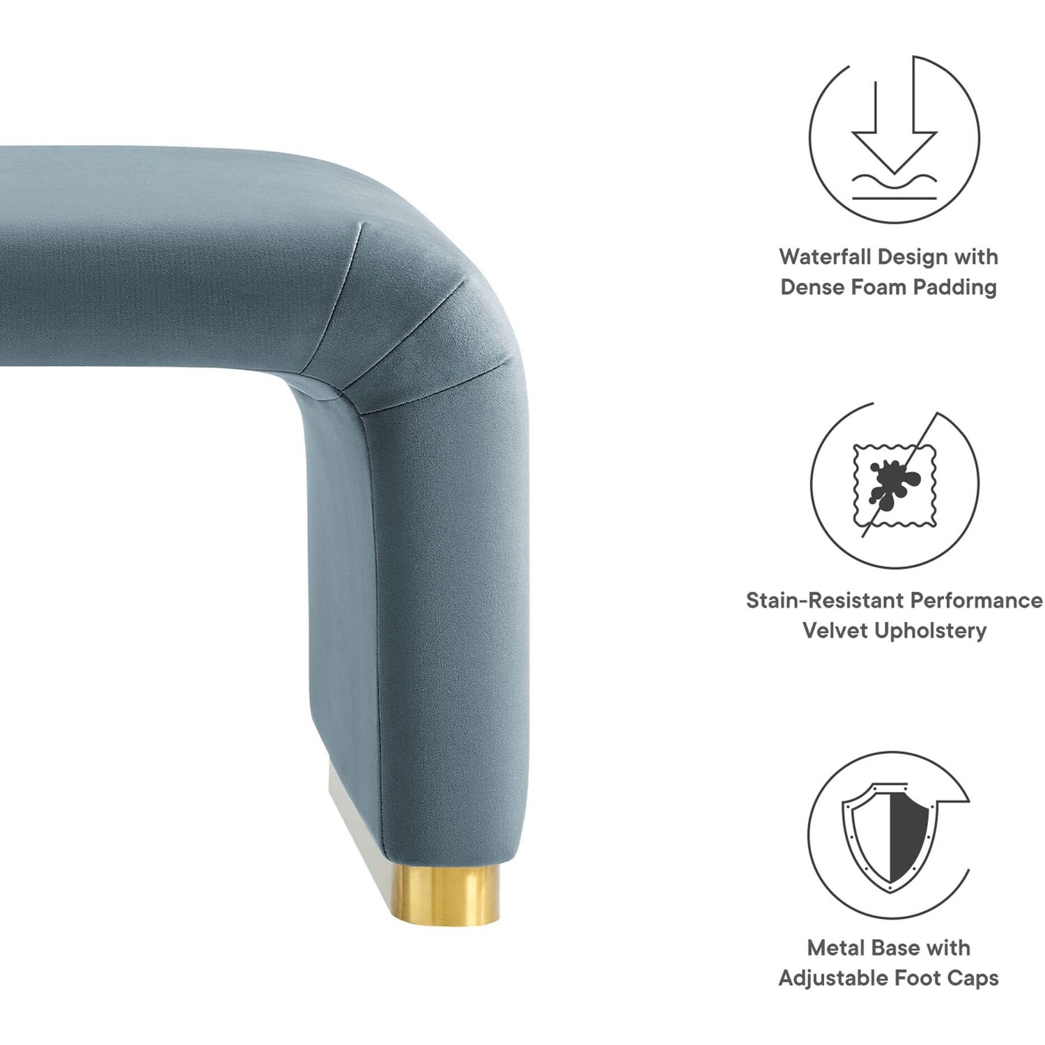 Let the Koda Performance Velvet Ottoman redefine your space with its style and adaptability. Crafted with a sturdy plywood frame, this large ottoman exudes a soft and flowing silhouette. Koda features stain-resistant performance velvet upholstery and a unique waterfall design. This multifunctional piece serves as both a chic ottoman and a fashionable coffee table, effortlessly blending classic design elements with a touch of contemporary allure. The dense foam padding ensures a comfortable experience, whether as extra seating, a footrest, or a stylish surface in your living room or lounge area. The Koda Upholstered Ottoman stands elegantly on a solid metal base with non-marking adjustable foot caps, ensuring stability while protecting your flooring. Assembly Required. Weight Capacity: 662 lbs.Performance Velvet Upholstery