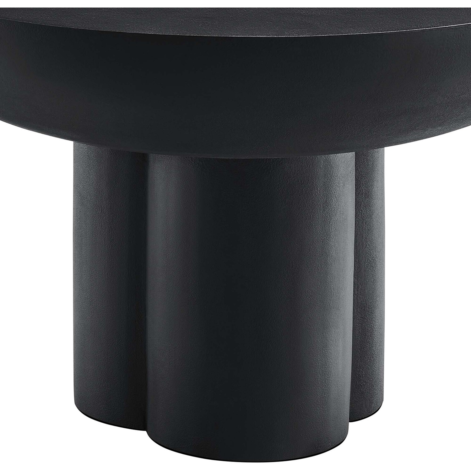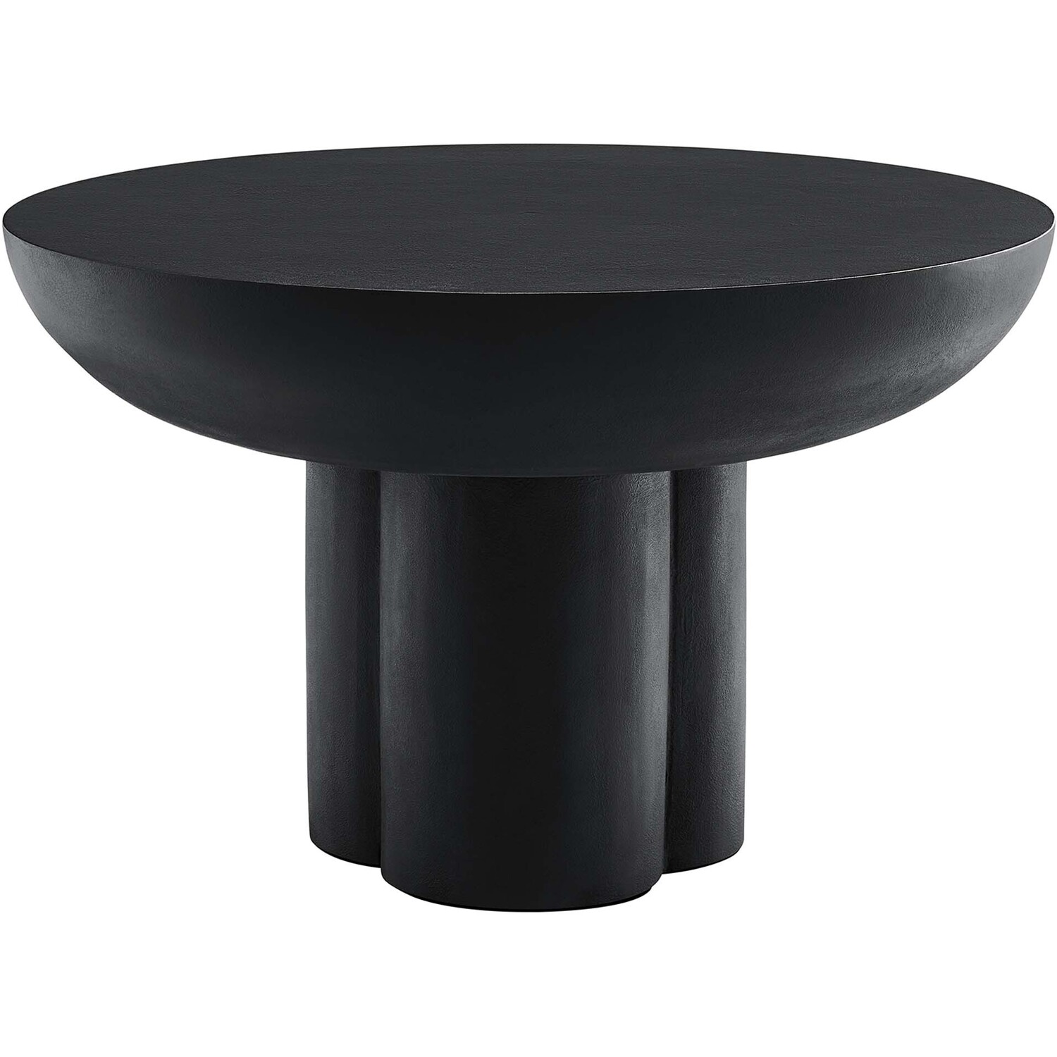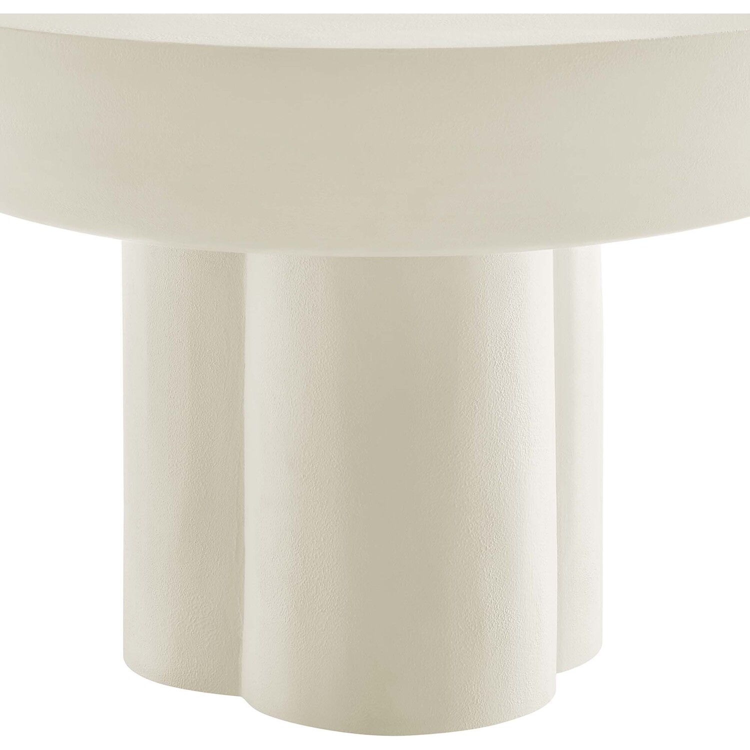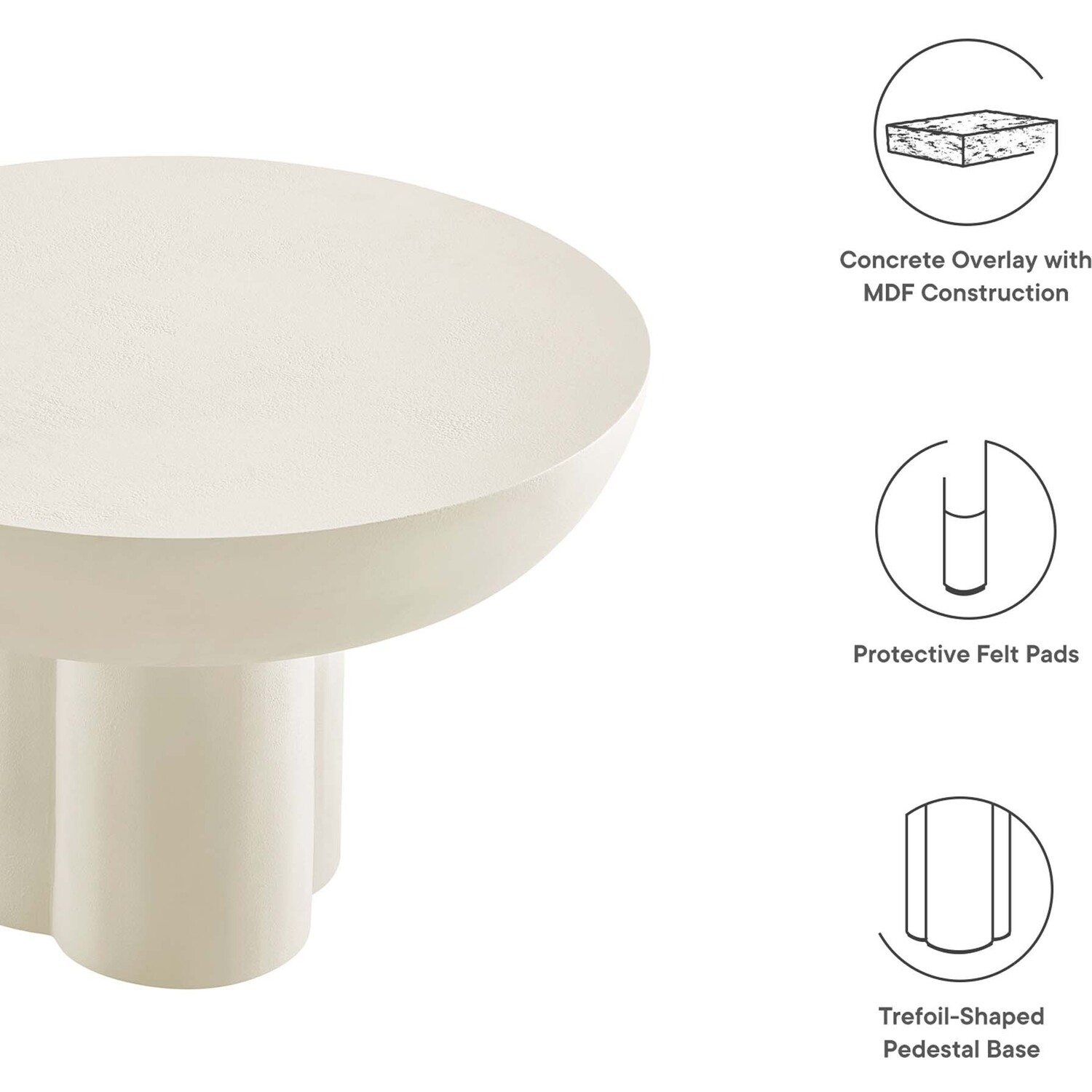 Transform your living space with the Caspian Coffee Table, a versatile and modern piece, the perfect center table for living room gatherings and daily relaxation. This striking round coffee table, an eye-catching feature in any living room or lounge area, showcases a unique trefoil-shaped pedestal base, effortlessly blending mid century modern aesthetics with contemporary design. Constructed from MDF with a stylish concrete overlay, this coffee table combines durability with a chic design. The Caspian living room table, complete with felt pads for floor protection, brings a modern vibe into your living room decor or urban apartment. Assembly required. Weight Limit: 275 lbs.Contemporary Modern Coffee Table