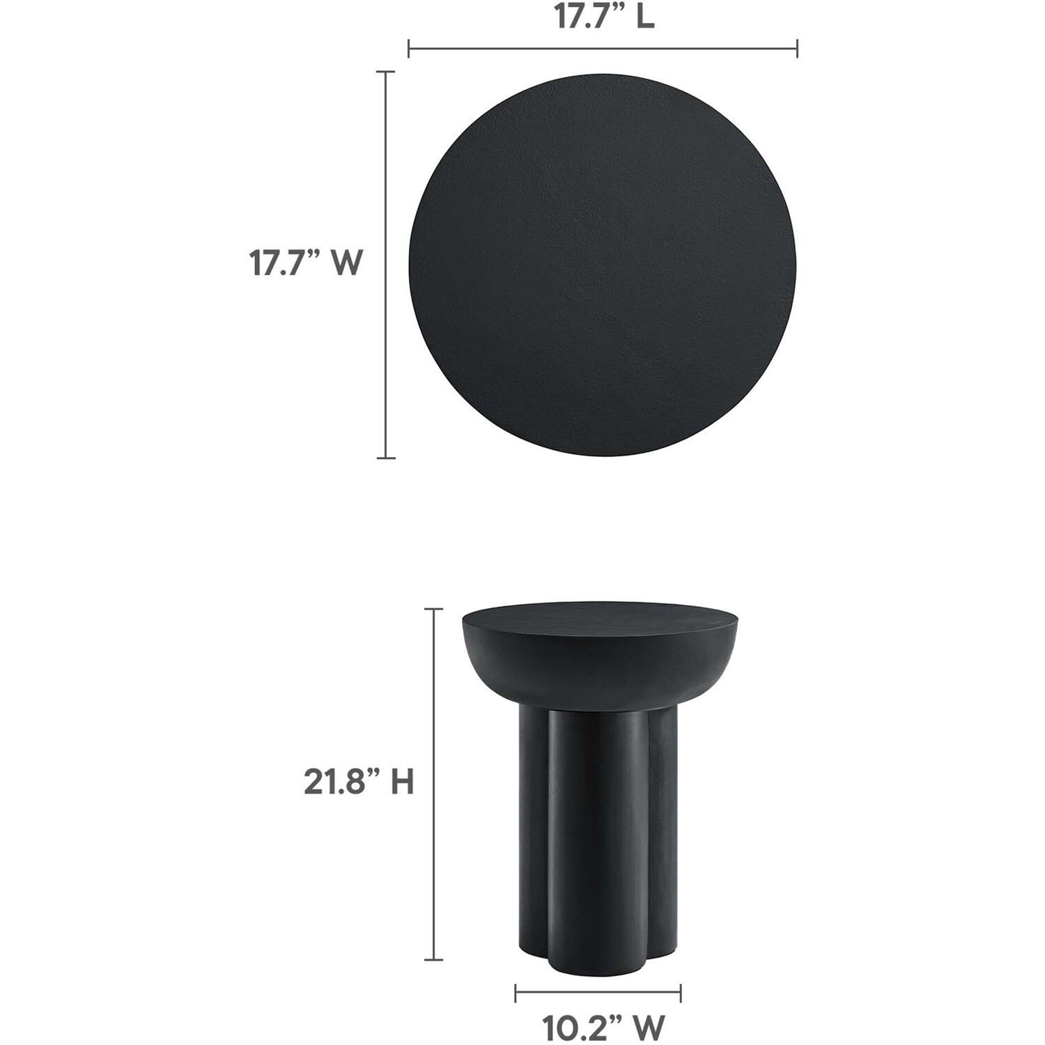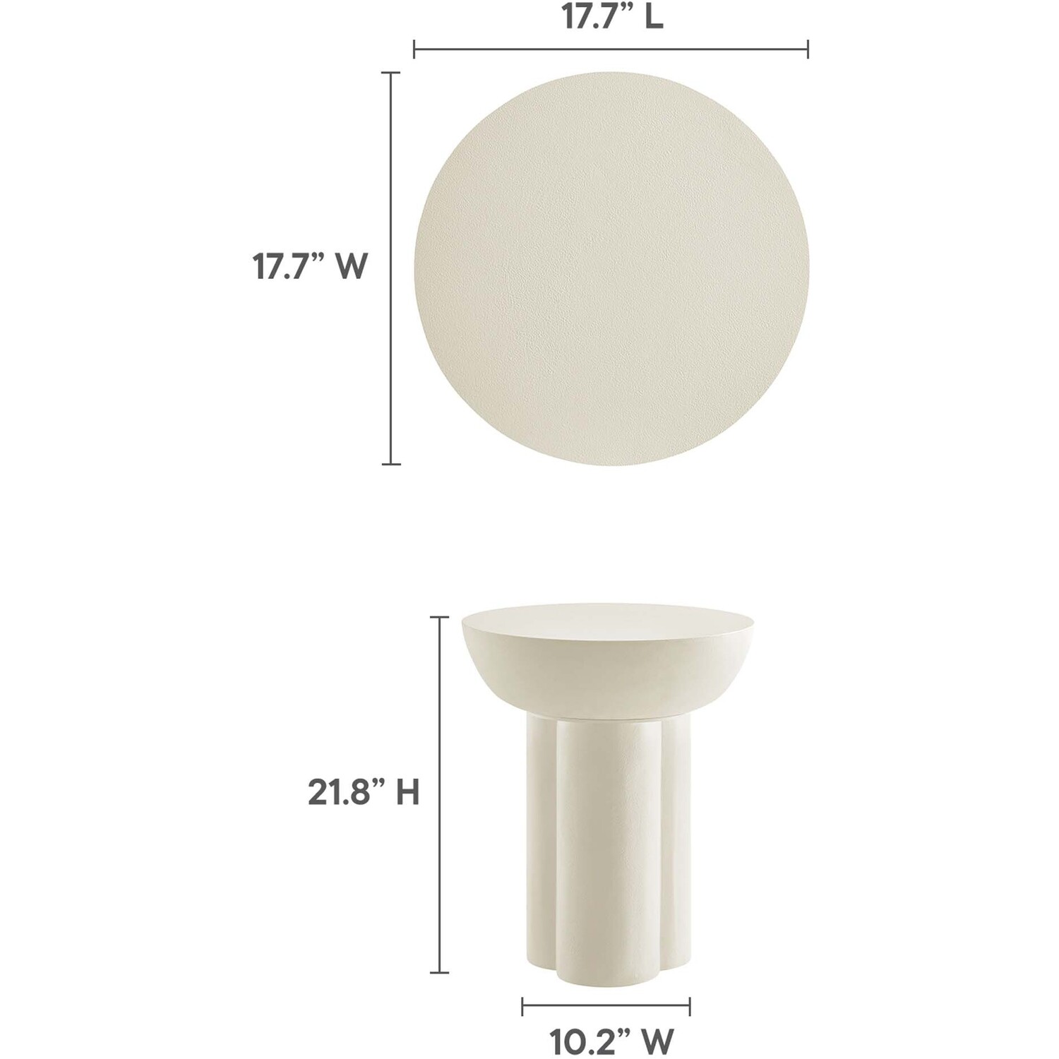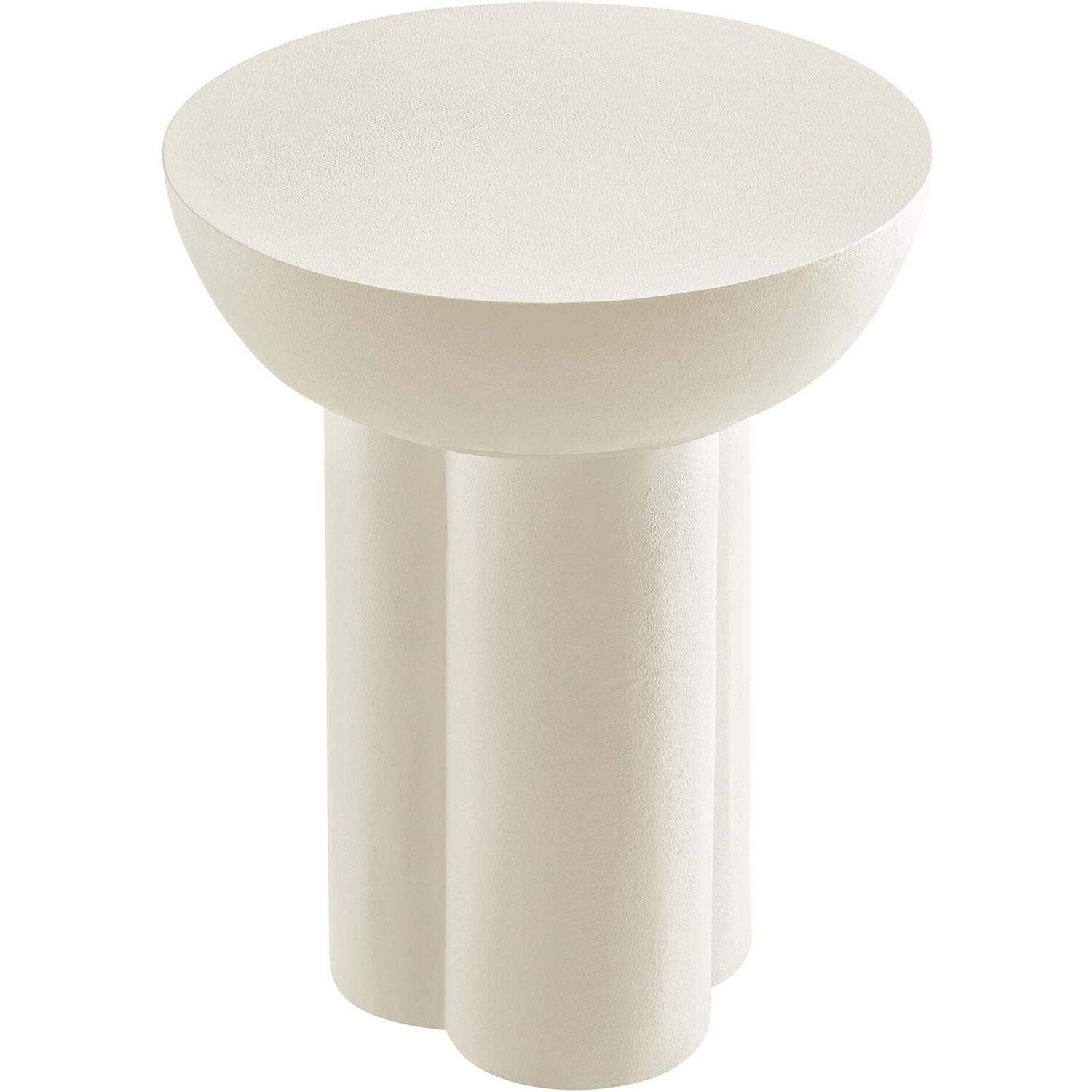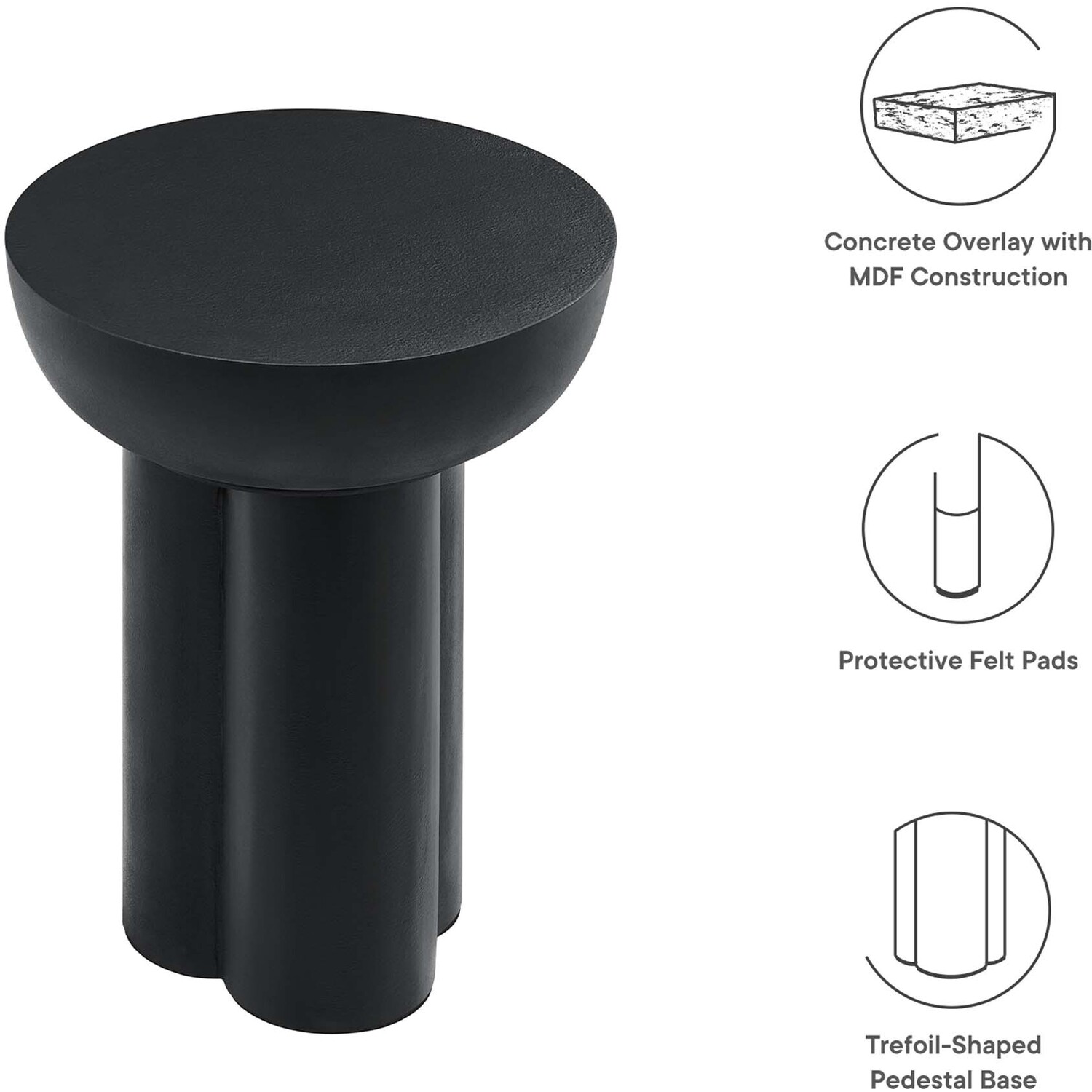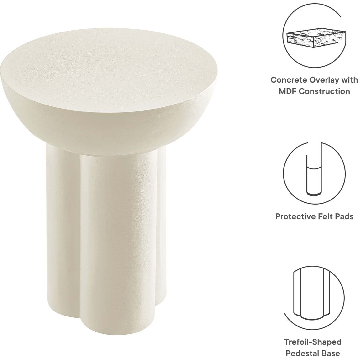 Enhance your living area with the Caspian Side Table, an ideal modern accent table for daily convenience and decorative flair. This elegant round end table, perfect for any living room, bedroom, or lounge area, features a unique trefoil-shaped pedestal base, adding a contemporary touch to your home or apartment. Crafted from MDF with a stylish concrete overlay, this piece serves well as a compact side table for small spaces or as a chic hallway table. The Caspian Living Room Side Table, balancing durability with sleek design, includes felt pads for floor protection. Weight Limit: 198 lbs.Contemporary Modern Side Table