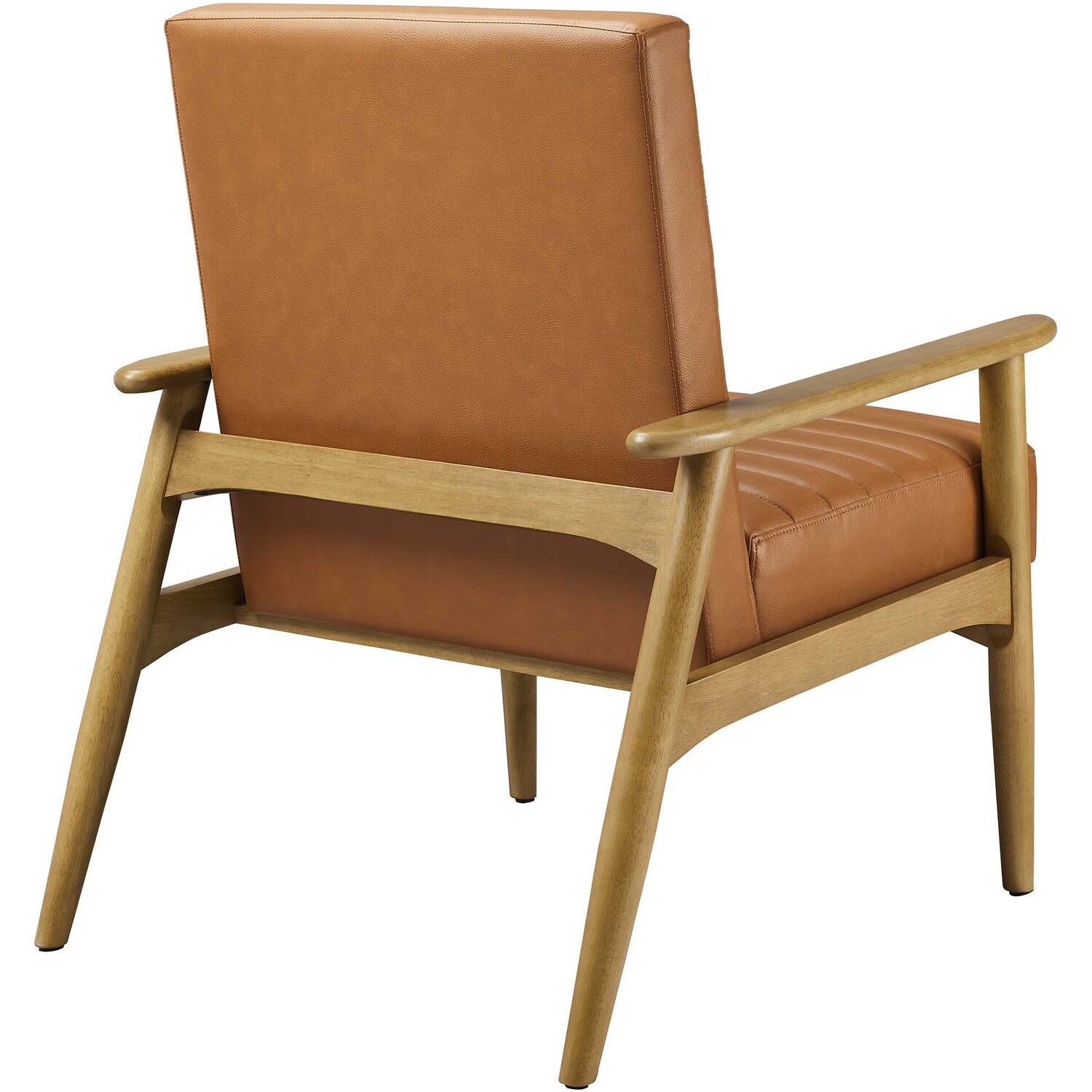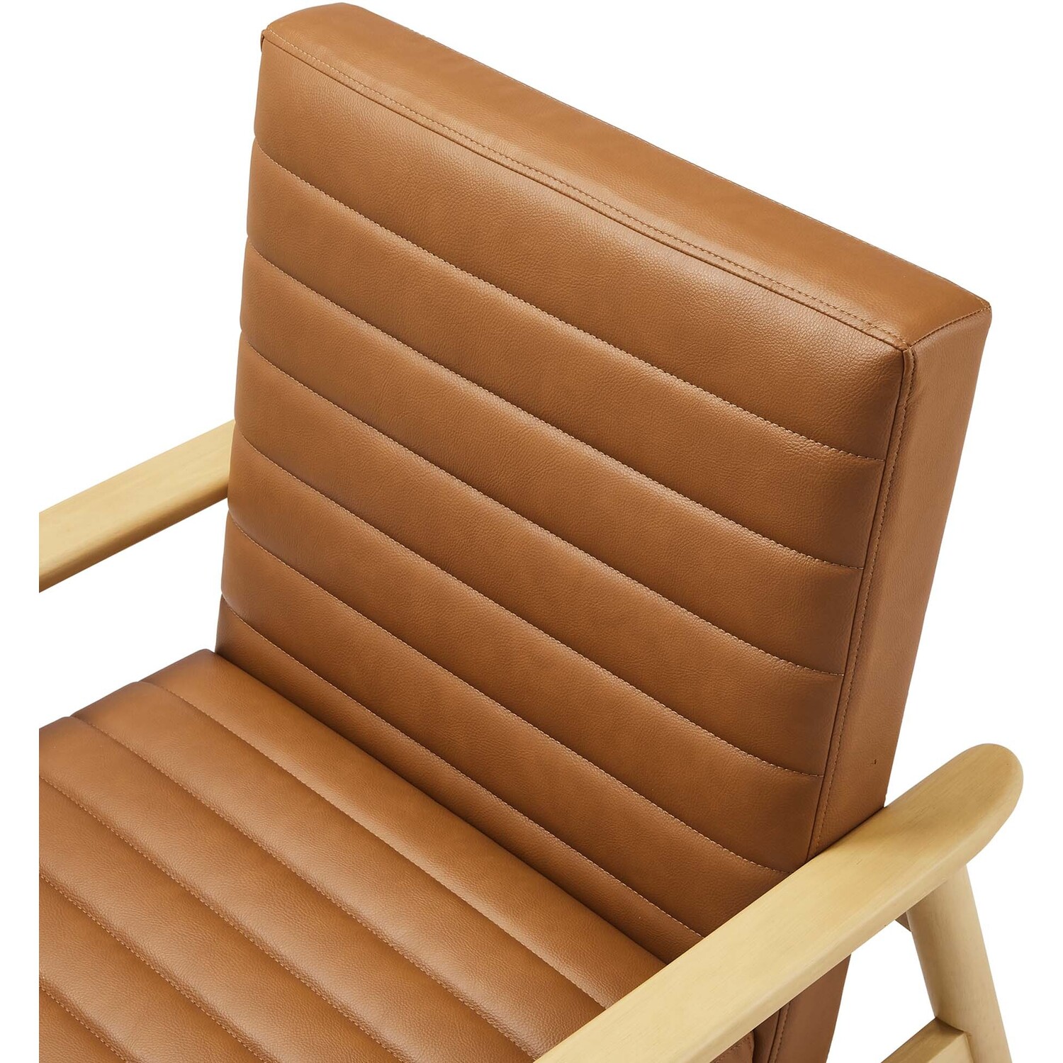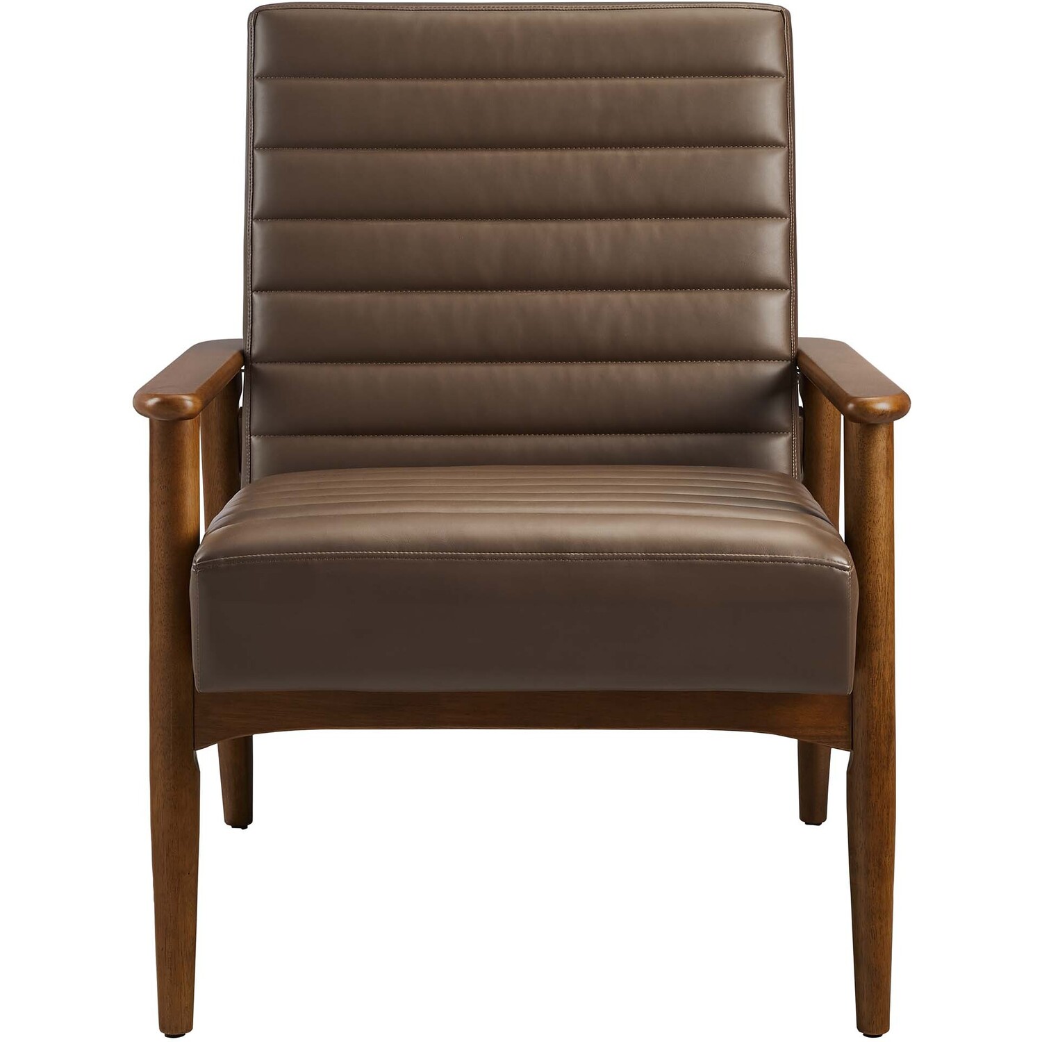Showcasing modern craftsmanship and chic design, the Jensen Vegan Leather Accent Chair elevates your living space with its elegant contours and contemporary profile. Upholstered in high-quality vegan leather, this modern club chair offers a cost-effective alternative without compromising the plush feel and durability of traditional leather. This faux leather lounge chair is further complemented by luxurious horizontal channel tufting, and dense foam padding that together enhance its visual appeal while providing unparalleled comfort. With a solid rubberwood frame, the Jensen Faux Leather Armchair offers a sturdy base that can withstand the rigors of daily use. Whether used as a reading chair, a cozy corner chair, or even a faux leather office chair, the Jensen Living Room Lounge Chair brings a premium seating experience that accommodates all occasions. Its sleek design suits any decor theme, from modern minimalist to mid-century chic. Includes non-marking foot glides to protect floors. Assembly required. Weight Capacity: 507 lbs.Upholstered Vegan Leather