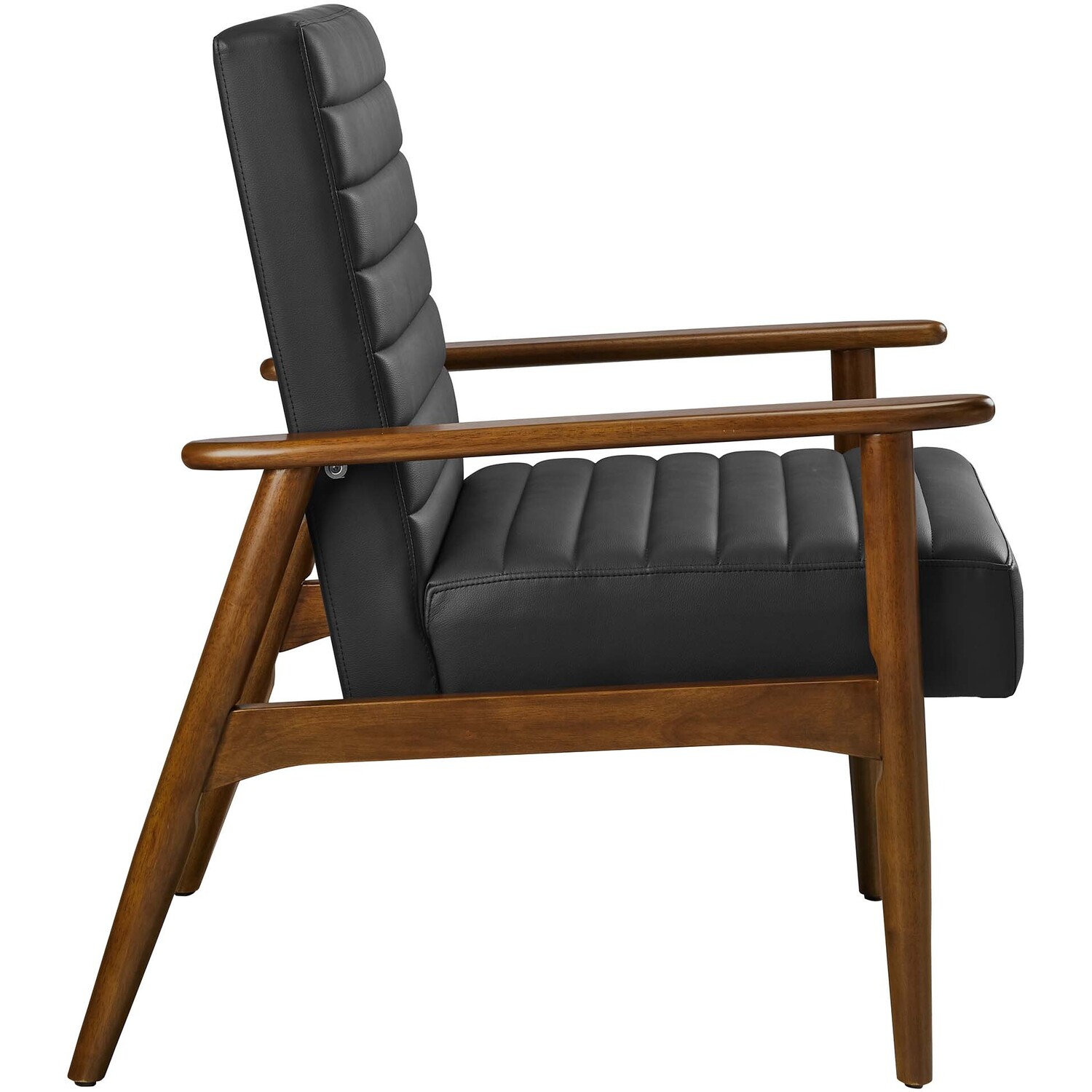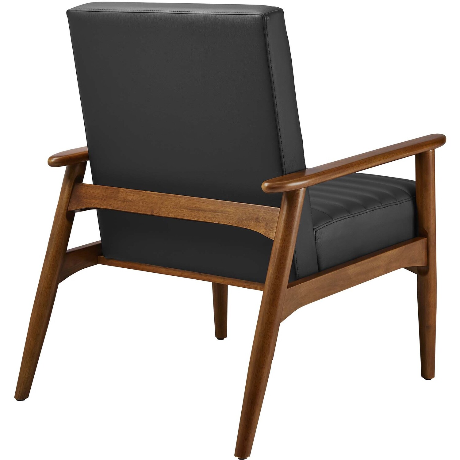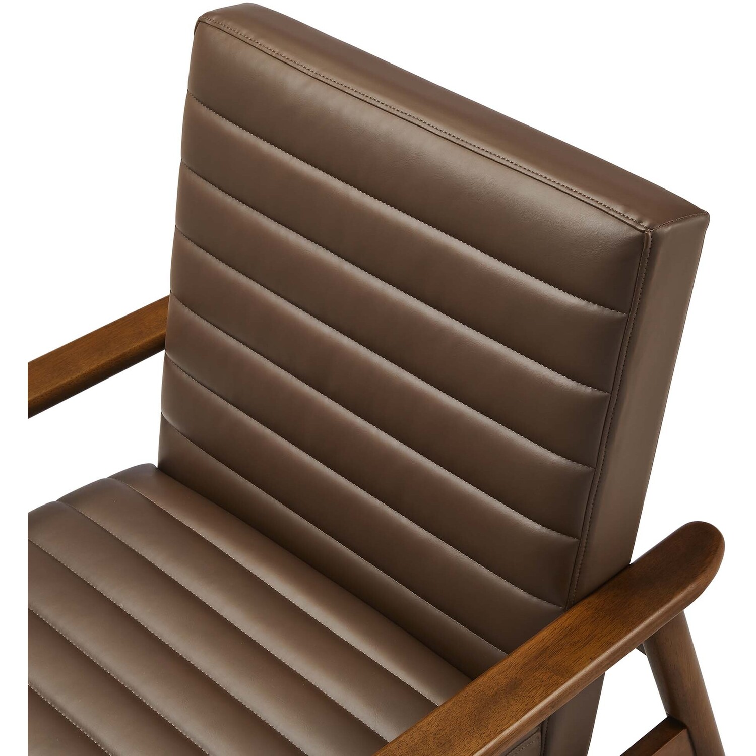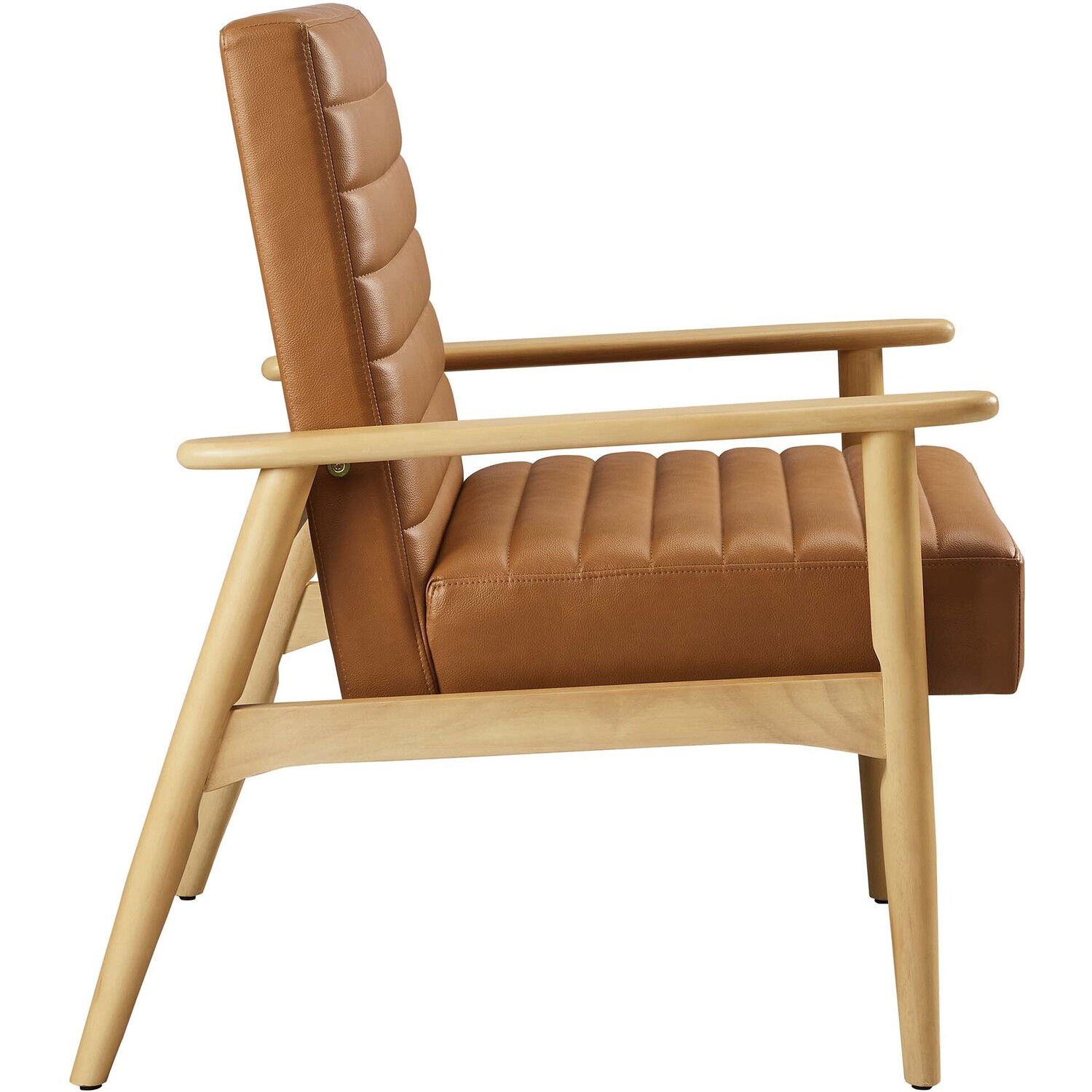 Showcasing modern craftsmanship and chic design, the Jensen Vegan Leather Accent Chair elevates your living space with its elegant contours and contemporary profile. Upholstered in high-quality vegan leather, this modern club chair offers a cost-effective alternative without compromising the plush feel and durability of traditional leather. This faux leather lounge chair is further complemented by luxurious horizontal channel tufting, and dense foam padding that together enhance its visual appeal while providing unparalleled comfort. With a solid rubberwood frame, the Jensen Faux Leather Armchair offers a sturdy base that can withstand the rigors of daily use. Whether used as a reading chair, a cozy corner chair, or even a faux leather office chair, the Jensen Living Room Lounge Chair brings a premium seating experience that accommodates all occasions. Its sleek design suits any decor theme, from modern minimalist to mid-century chic. Includes non-marking foot glides to protect floors. Assembly required. Weight Capacity: 507 lbs.Upholstered Vegan Leather
