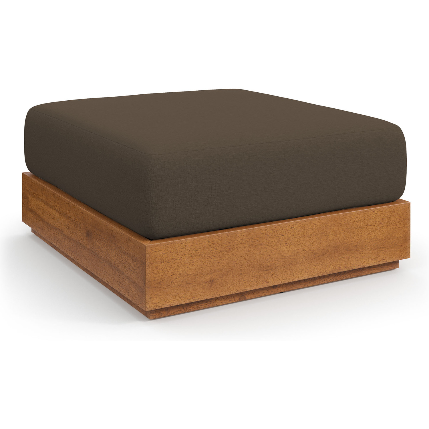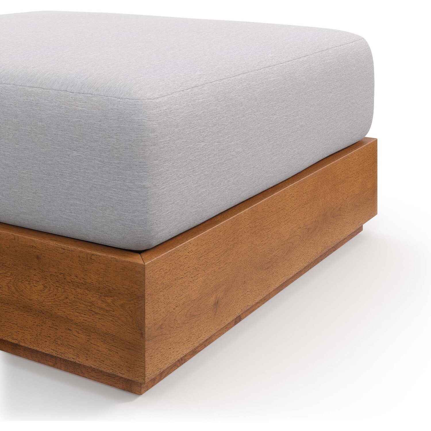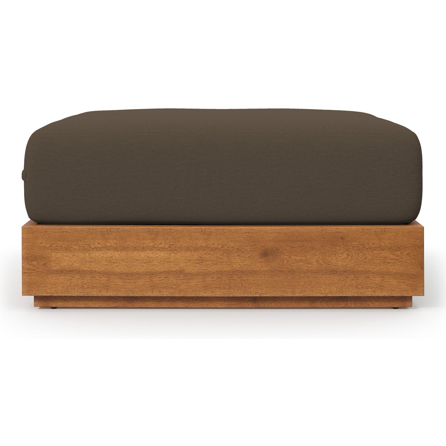 Enliven your alfresco spaces with the Tahoe Acacia Wood Outdoor Ottoman. This modern outdoor patio ottoman is constructed with FSC-certified acacia wood, blending seamlessly into your outdoor lounge spaces as a stylish outdoor footstool. Its dense foam padding ensures sustained comfort, making it ideal for poolside lounging or as a cozy porch seat. Featuring a UV and water-resistant fabric-cover, the removable cushion renders this outdoor ottoman low maintenance and high performing. An accommodating all-weather ottoman, Tahoe is perfect for outdoor relaxing and entertaining. Complementing outdoor furniture sofas or patio loveseats, this wood ottoman offers the ideal place to prop up your feet and unwind. It features non-marking foot glides to protect your deck or patio floor. Weight Capacity: 500 lbs.Outdoor Patio Ottoman