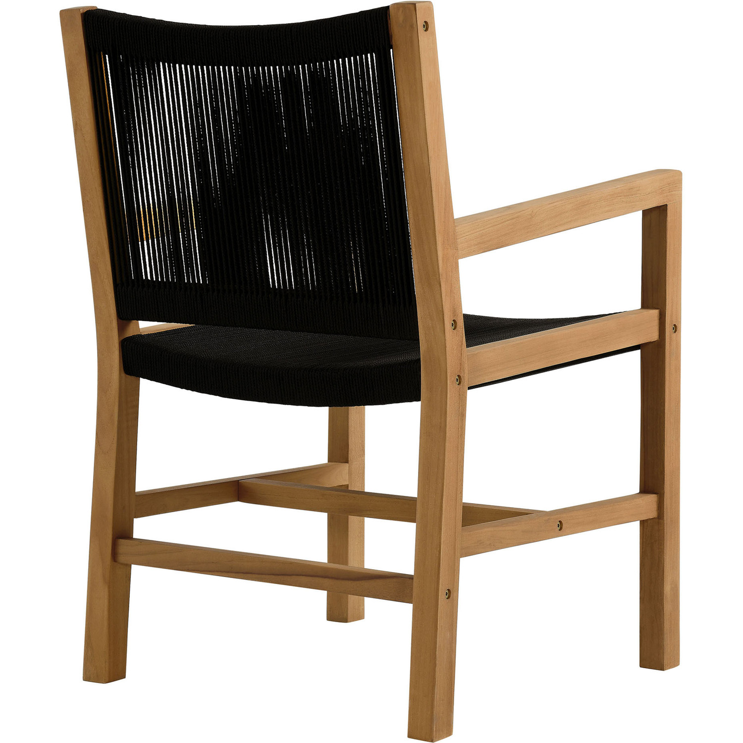 Refresh your outdoor dining experience with the Vienna Outdoor Dining Armchair Set, an al fresco addition that invites relaxation and conversation. This pair of 2 dining patio chairs features a beautiful teak wood frame, naturally resistant to weather, paired with seats intricately woven with high-quality nylon rope, creating a contemporary and cohesive look ideal for any patio or garden setting. The inclusion of armrests in these outdoor rope dining chairs turns any dining experience into a more relaxed, enjoyable occasion. Add to that its H-frame stretchers, curved seat, and slight recline in the backrest, and these rope chairs provide the comfort needed for extended dinner conversations. Whether paired with the complete Vienna Outdoor Teak Wood Dining Set or mixed with other outdoor patio furniture, these woven rope outdoor chairs blend effortlessly, complementing a diverse range of outdoor patios. Assembly Required. Weight Capacity of Each Chair: 200 lbs.Set of 2 Dining Armchairs