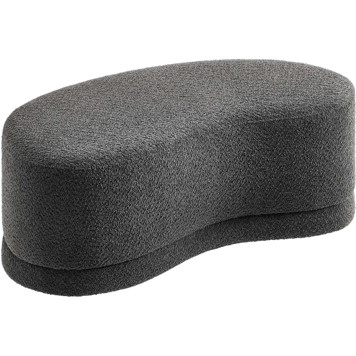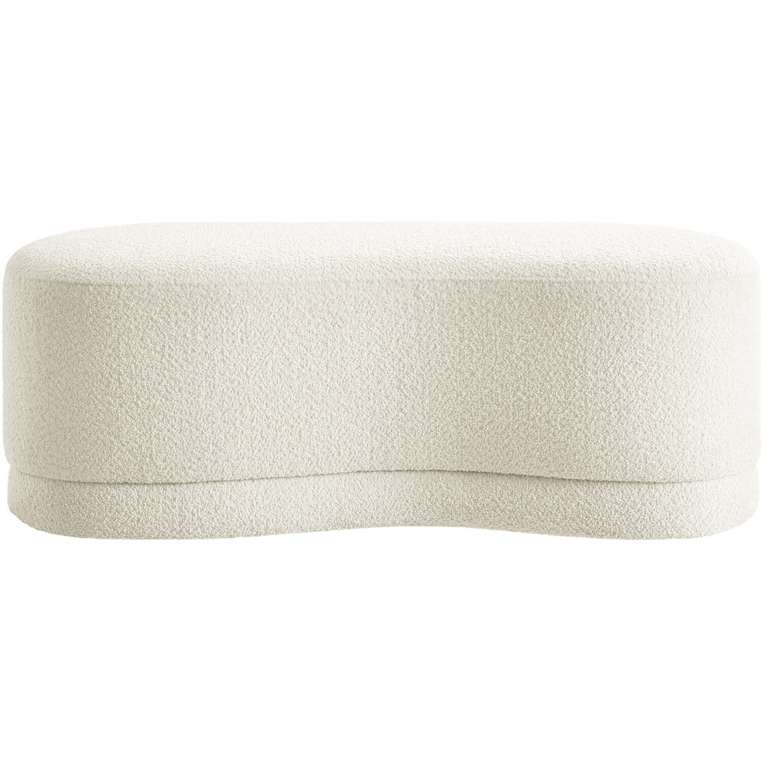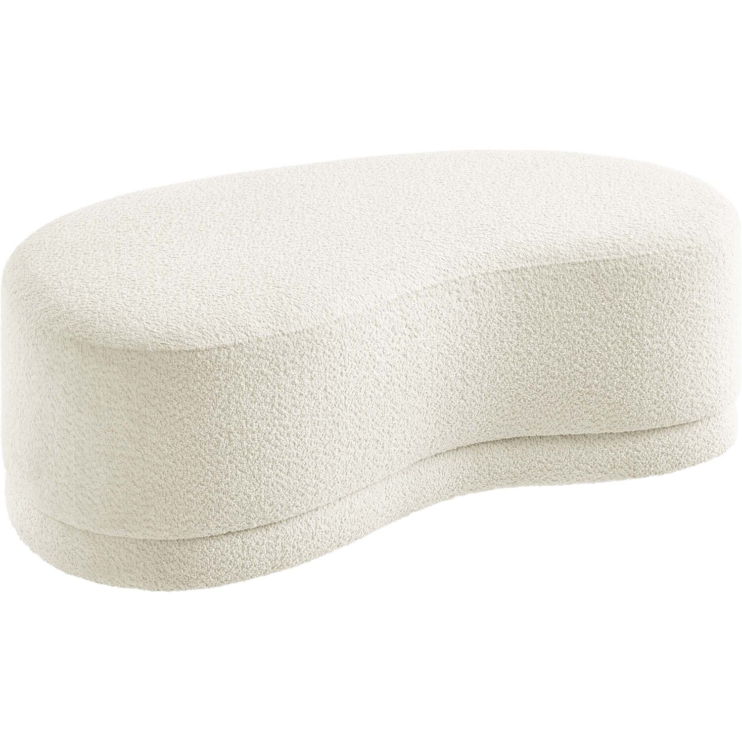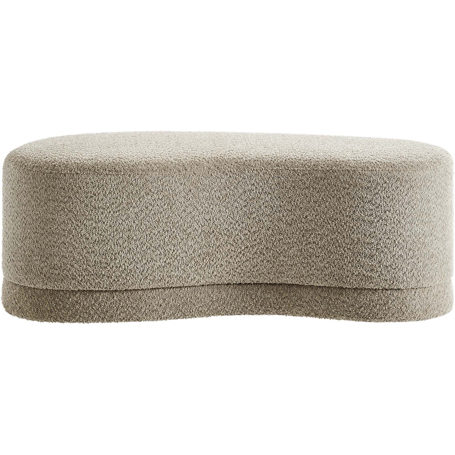 The Nimbus Ottoman, with its organic contours and curved lines, brings a touch of modernity to any living room or bedroom. Wrapped in a soft chenille fabric with a texture similar to boucle, this upholstered ottoman elevates comfort as both a bedroom ottoman and a modern living room furniture piece. The solid frame and dense foam padding of this bed ottoman provide a stable base, rendering it a sturdy footstool perfect for propping up your feet. The Nimbus upholstered curved bench includes non-marking plastic floor glides to safeguard your floors. Whether it's used as a bedroom bench or an innovative upholstered coffee table, this soft fabric ottoman marries style with multipurpose appeal. The Nimbus accent ottoman arrives fully assembled and ready to use. Weight Capacity: 804 lbs.Soft Chenille Upholstery