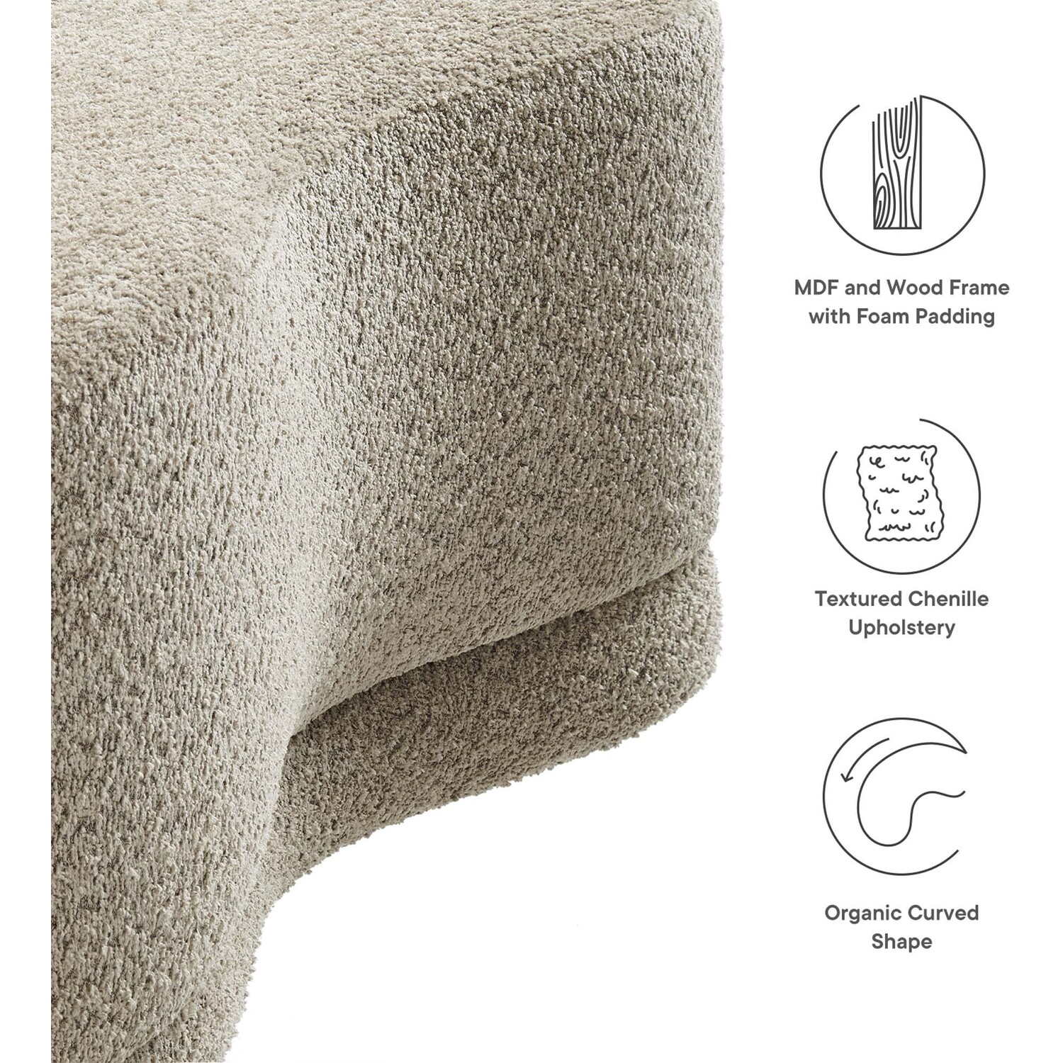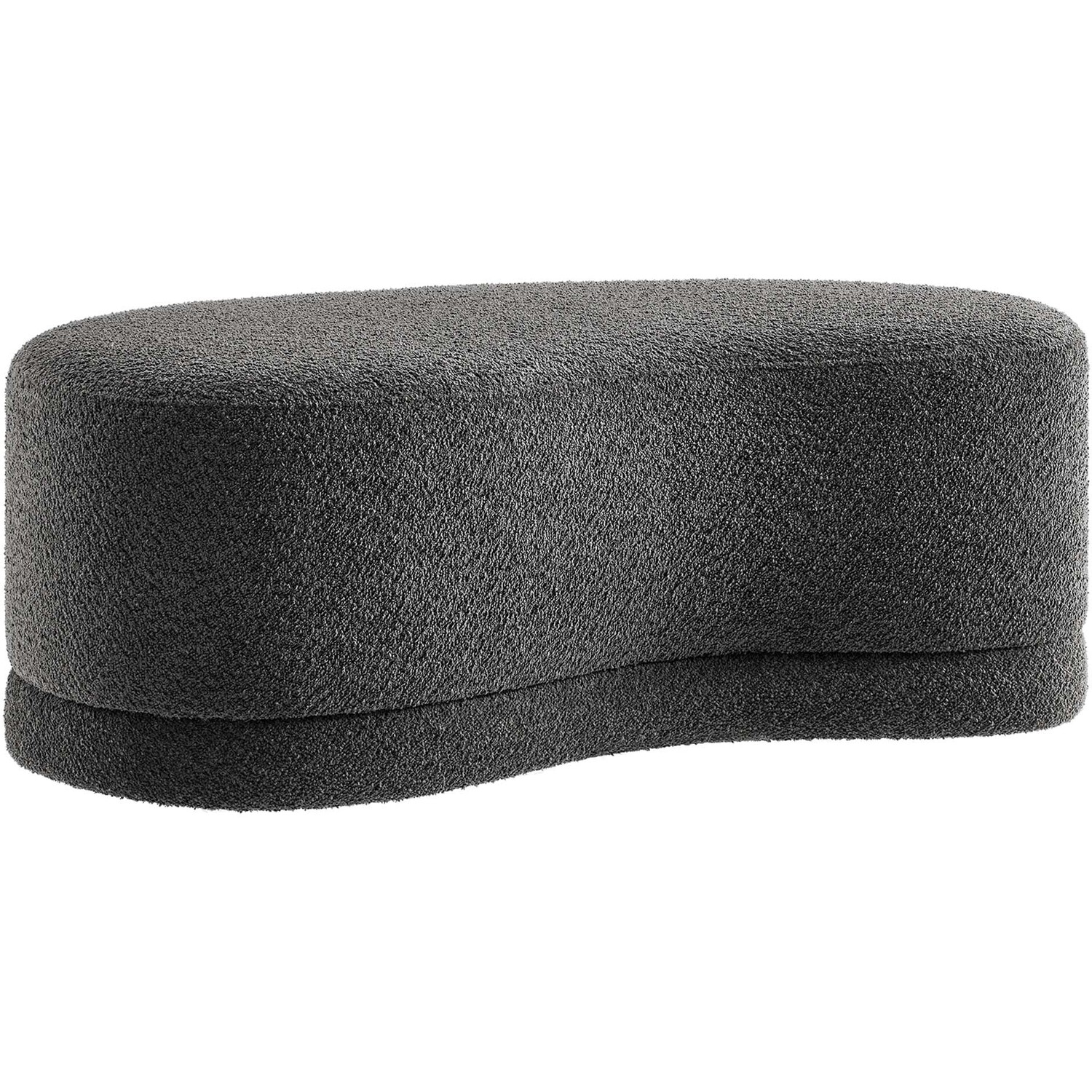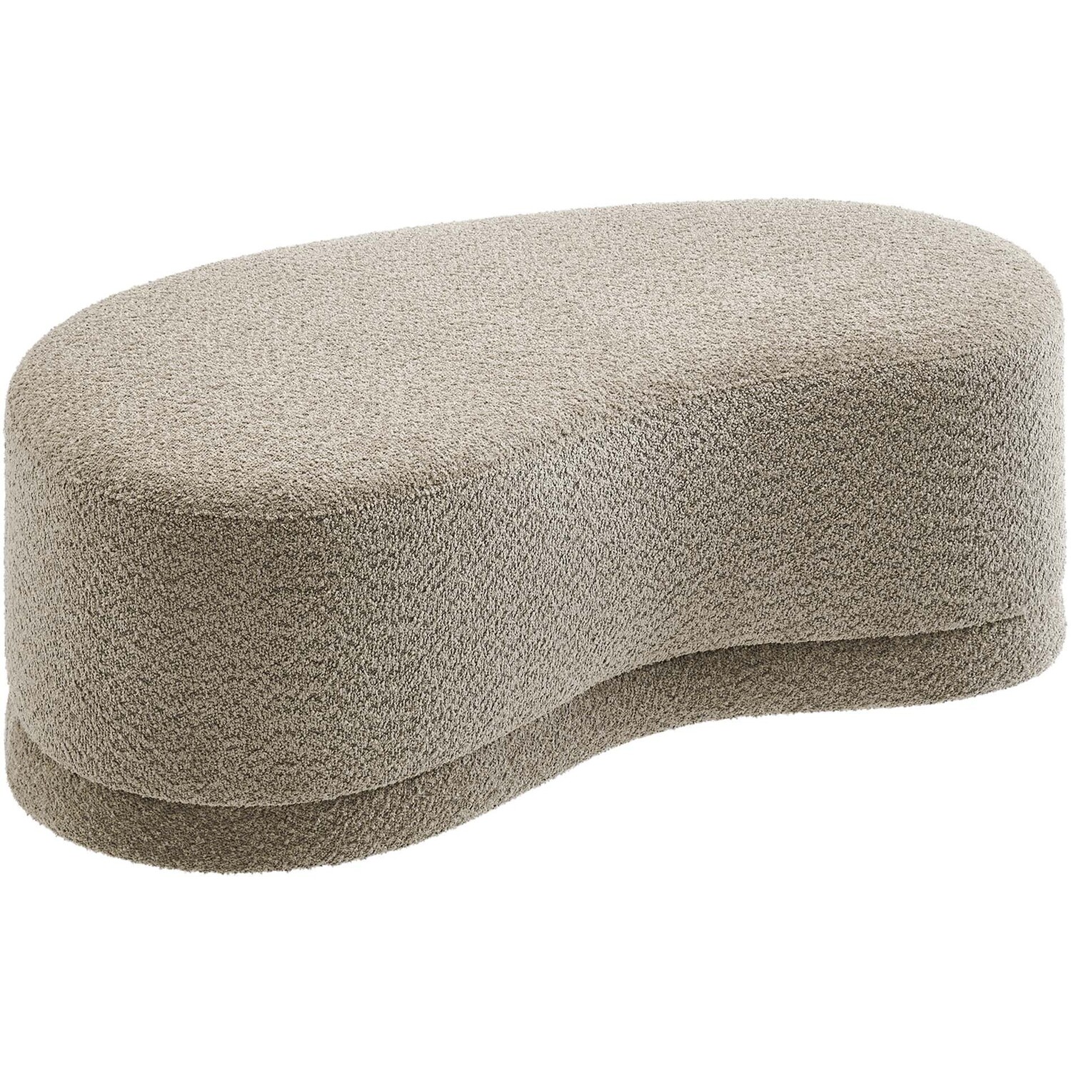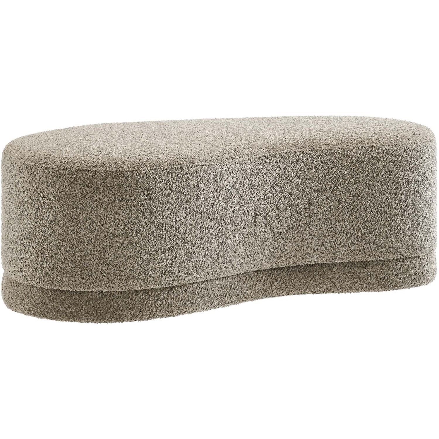 The Nimbus Ottoman, with its organic contours and curved lines, brings a touch of modernity to any living room or bedroom. Wrapped in a soft chenille fabric with a texture similar to boucle, this upholstered ottoman elevates comfort as both a bedroom ottoman and a modern living room furniture piece. The solid frame and dense foam padding of this bed ottoman provide a stable base, rendering it a sturdy footstool perfect for propping up your feet. The Nimbus upholstered curved bench includes non-marking plastic floor glides to safeguard your floors. Whether it's used as a bedroom bench or an innovative upholstered coffee table, this soft fabric ottoman marries style with multipurpose appeal. The Nimbus accent ottoman arrives fully assembled and ready to use. Weight Capacity: 804 lbs.Soft Chenille Upholstery