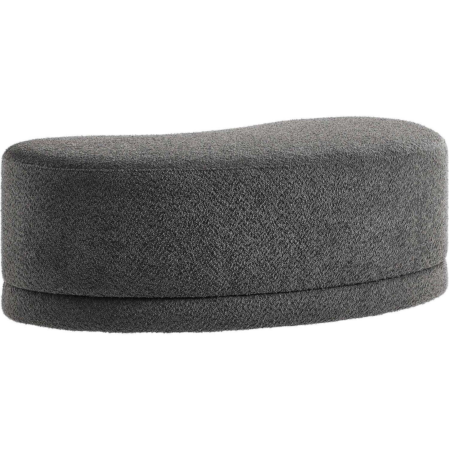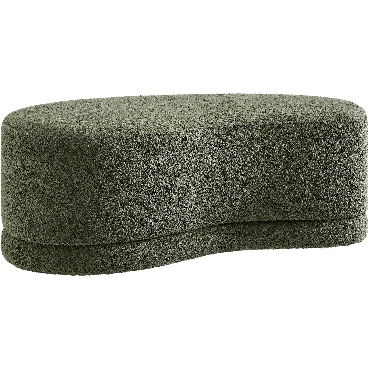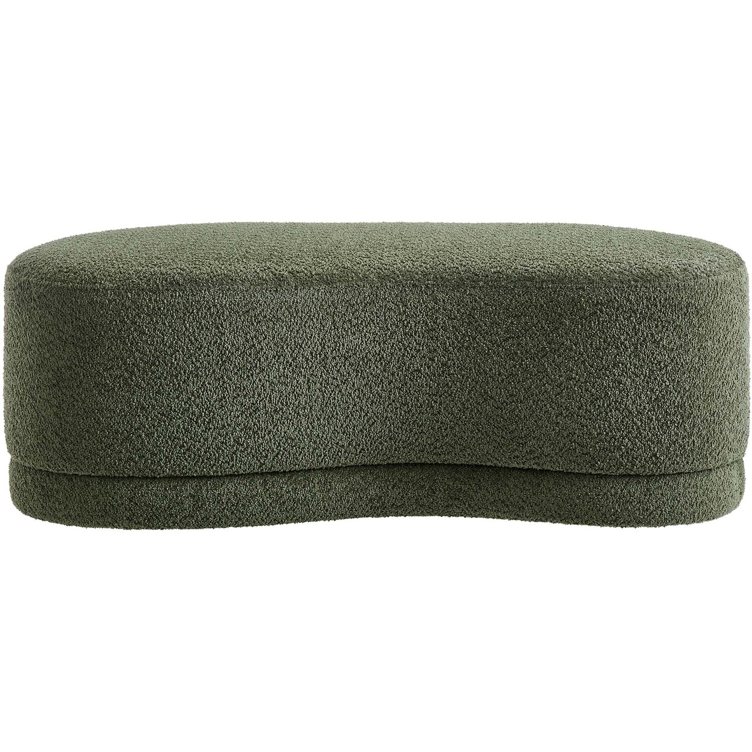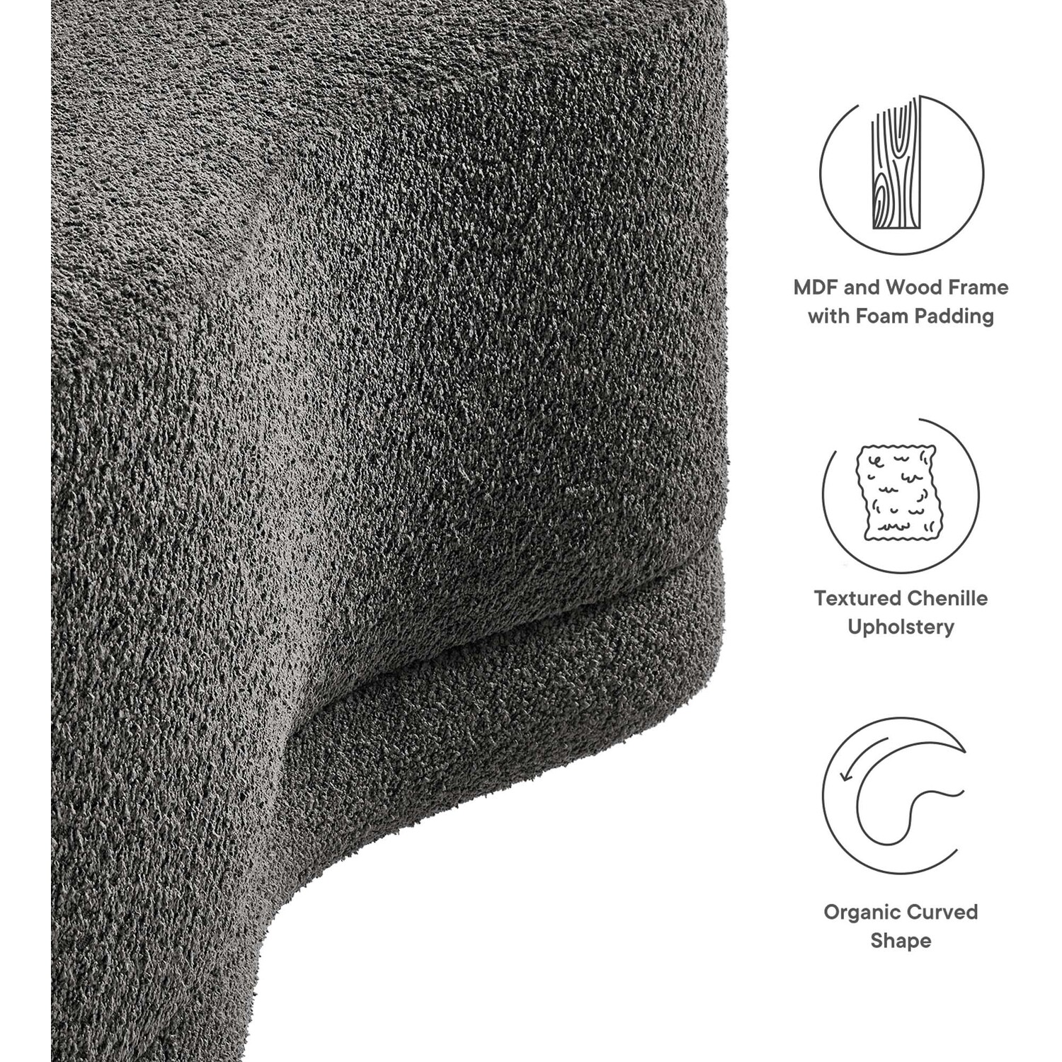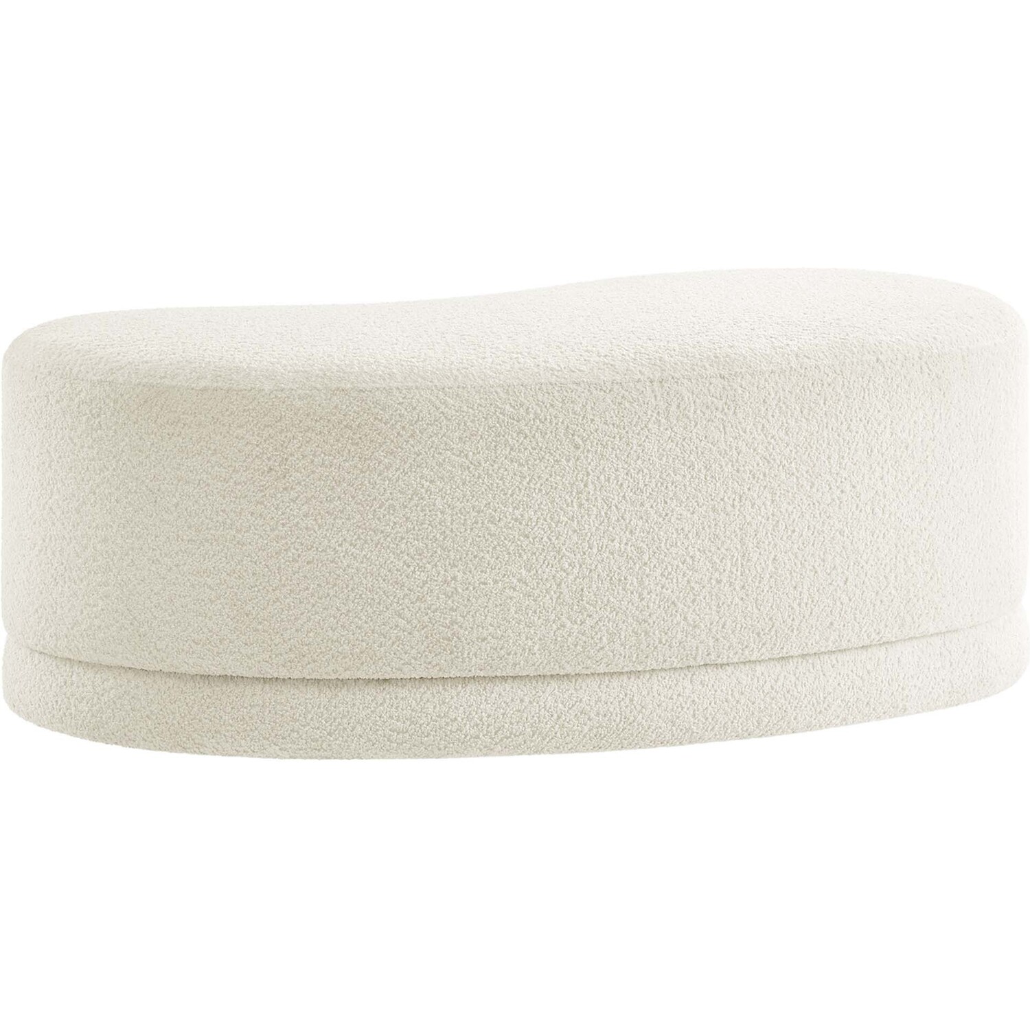 The Nimbus Ottoman, with its organic contours and curved lines, brings a touch of modernity to any living room or bedroom. Wrapped in a soft chenille fabric with a texture similar to boucle, this upholstered ottoman elevates comfort as both a bedroom ottoman and a modern living room furniture piece. The solid frame and dense foam padding of this bed ottoman provide a stable base, rendering it a sturdy footstool perfect for propping up your feet. The Nimbus upholstered curved bench includes non-marking plastic floor glides to safeguard your floors. Whether it's used as a bedroom bench or an innovative upholstered coffee table, this soft fabric ottoman marries style with multipurpose appeal. The Nimbus accent ottoman arrives fully assembled and ready to use. Weight Capacity: 804 lbs.Soft Chenille Upholstery