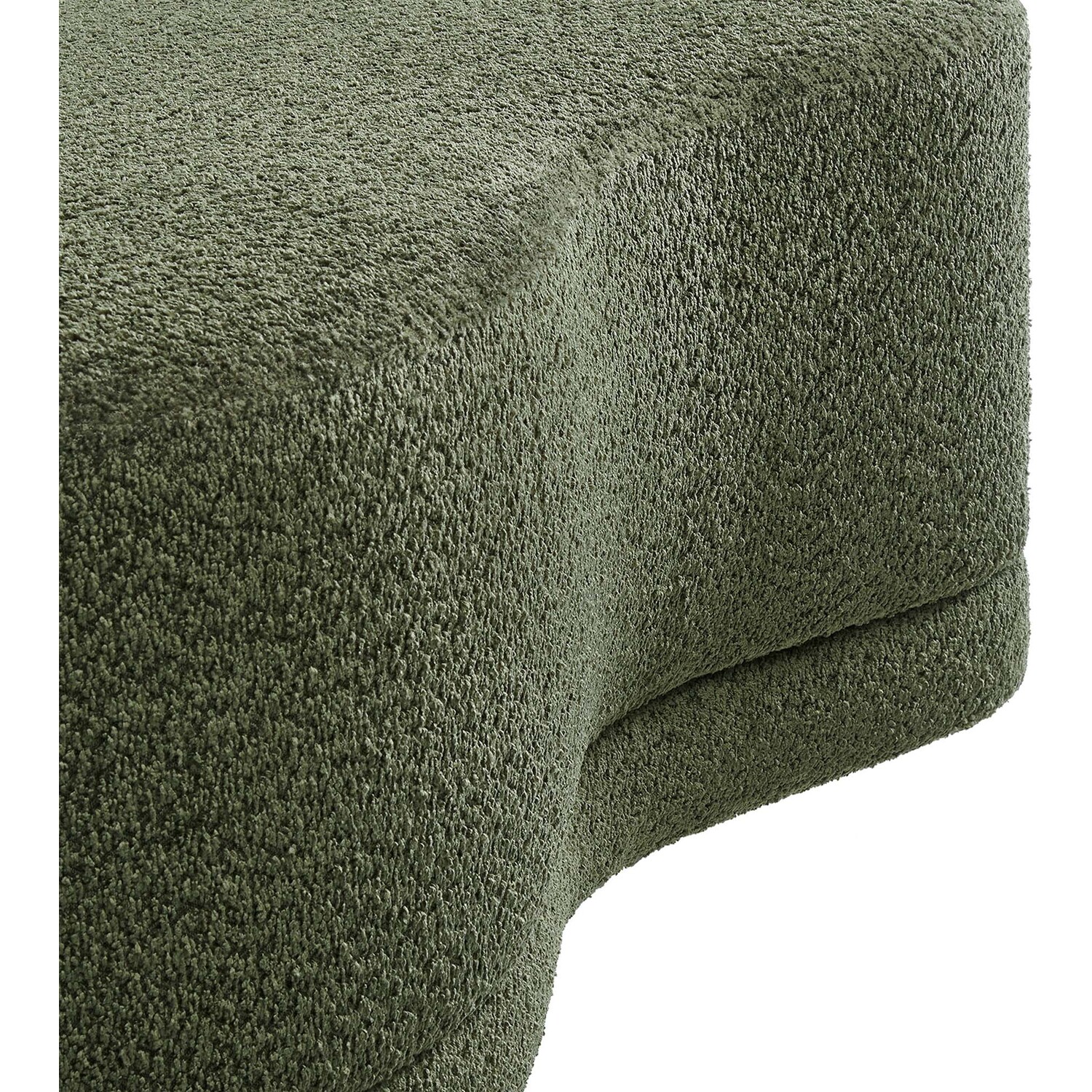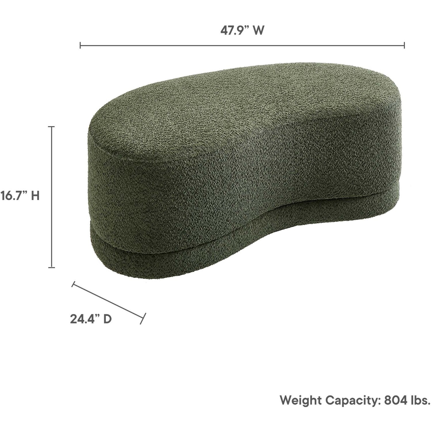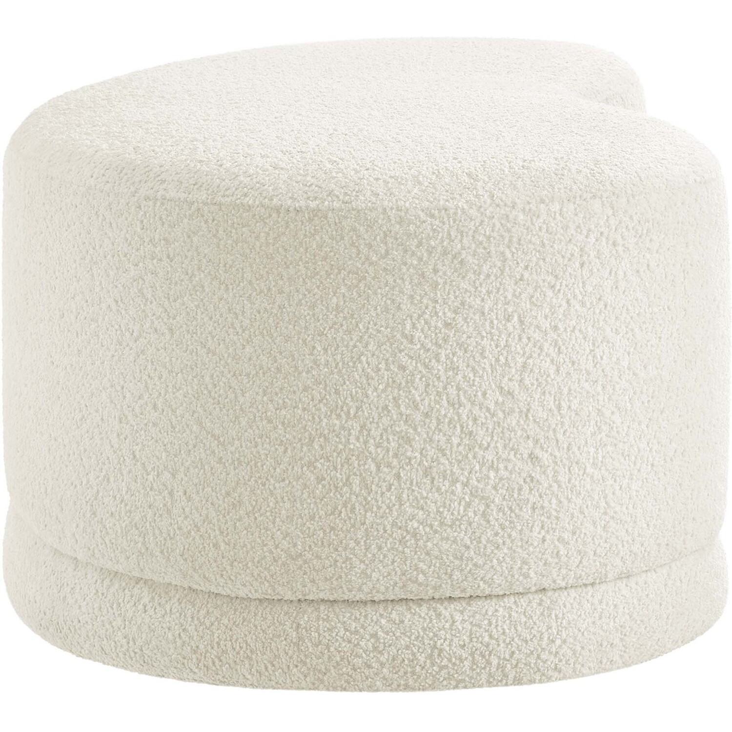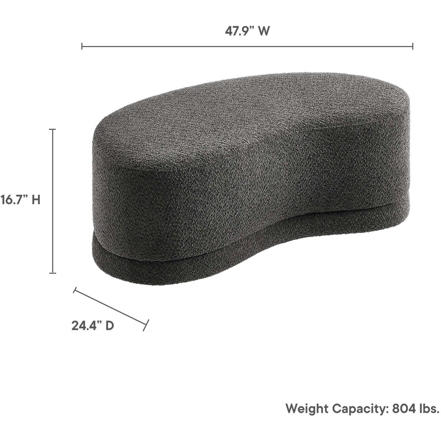 The Nimbus Ottoman, with its organic contours and curved lines, brings a touch of modernity to any living room or bedroom. Wrapped in a soft chenille fabric with a texture similar to boucle, this upholstered ottoman elevates comfort as both a bedroom ottoman and a modern living room furniture piece. The solid frame and dense foam padding of this bed ottoman provide a stable base, rendering it a sturdy footstool perfect for propping up your feet. The Nimbus upholstered curved bench includes non-marking plastic floor glides to safeguard your floors. Whether it's used as a bedroom bench or an innovative upholstered coffee table, this soft fabric ottoman marries style with multipurpose appeal. The Nimbus accent ottoman arrives fully assembled and ready to use. Weight Capacity: 804 lbs.Soft Chenille Upholstery
