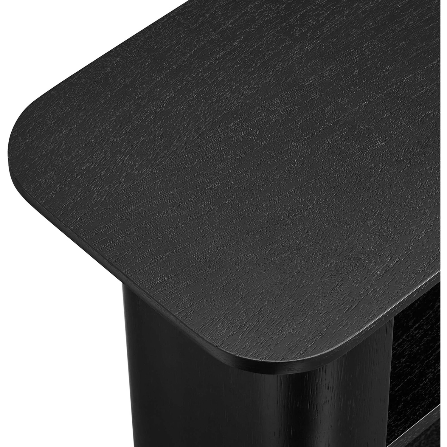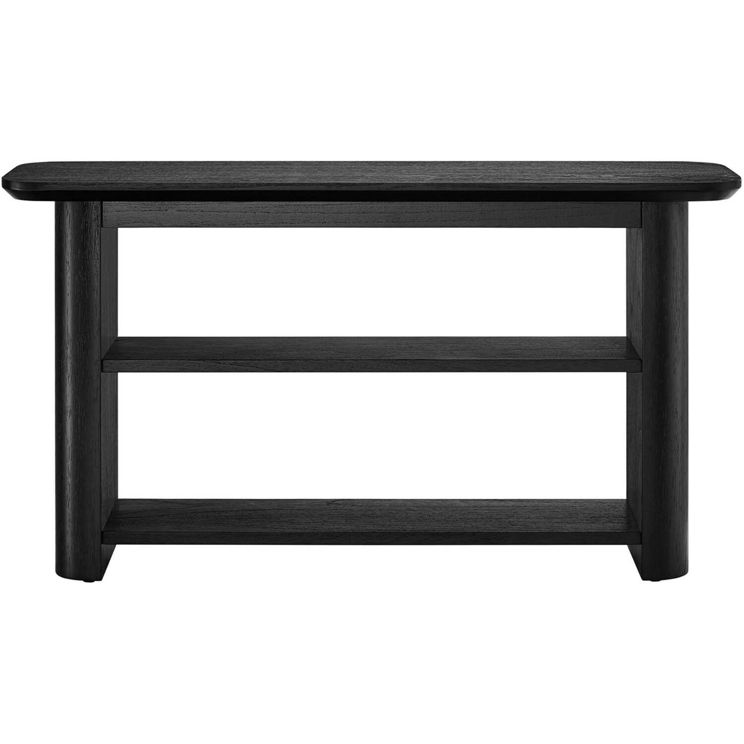 Elevate your home's aesthetic with the sleek and versatile design of the Calix Console Table with open shelves. This multifunctional hallway table is not merely an eye-catching addition to your entryway but also serves as a practical slim console table for your living room or a streamlined TV console supporting TVs up to 62"es. Crafted from robust plywood and finished with rich wood veneer and laminate, this narrow entryway table is designed to complement modern decor. Featuring two spacious open shelves, the Calix sofa console offers ample room to showcase books, vases, and various decorative pieces. It’s also equipped with leveling, non-marking feet, to protect floors and provide stability on irregular surfaces. Whether you're searching for a foyer table, an entrance table for the front door or hallway, or even a console table for behind the couch, Calix is a functional and stylish choice for any space. Its minimalist design renders it a standout focal point in your home, providing a chic narrow table for your decorative flair. Assembly Required. Top Shelf Weight Capacity: 264.5 lbs, Shelves: 82 lbs eachVersatile Console Table