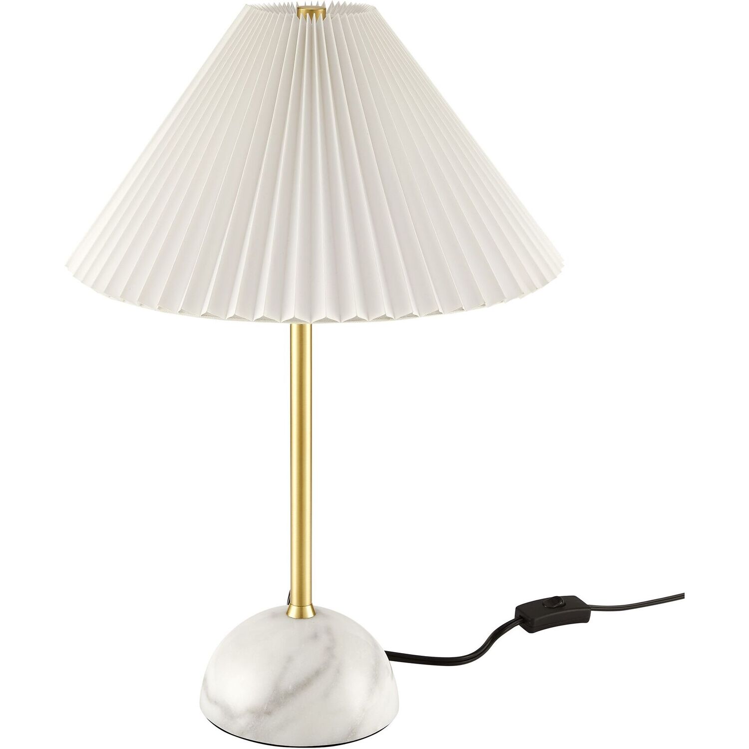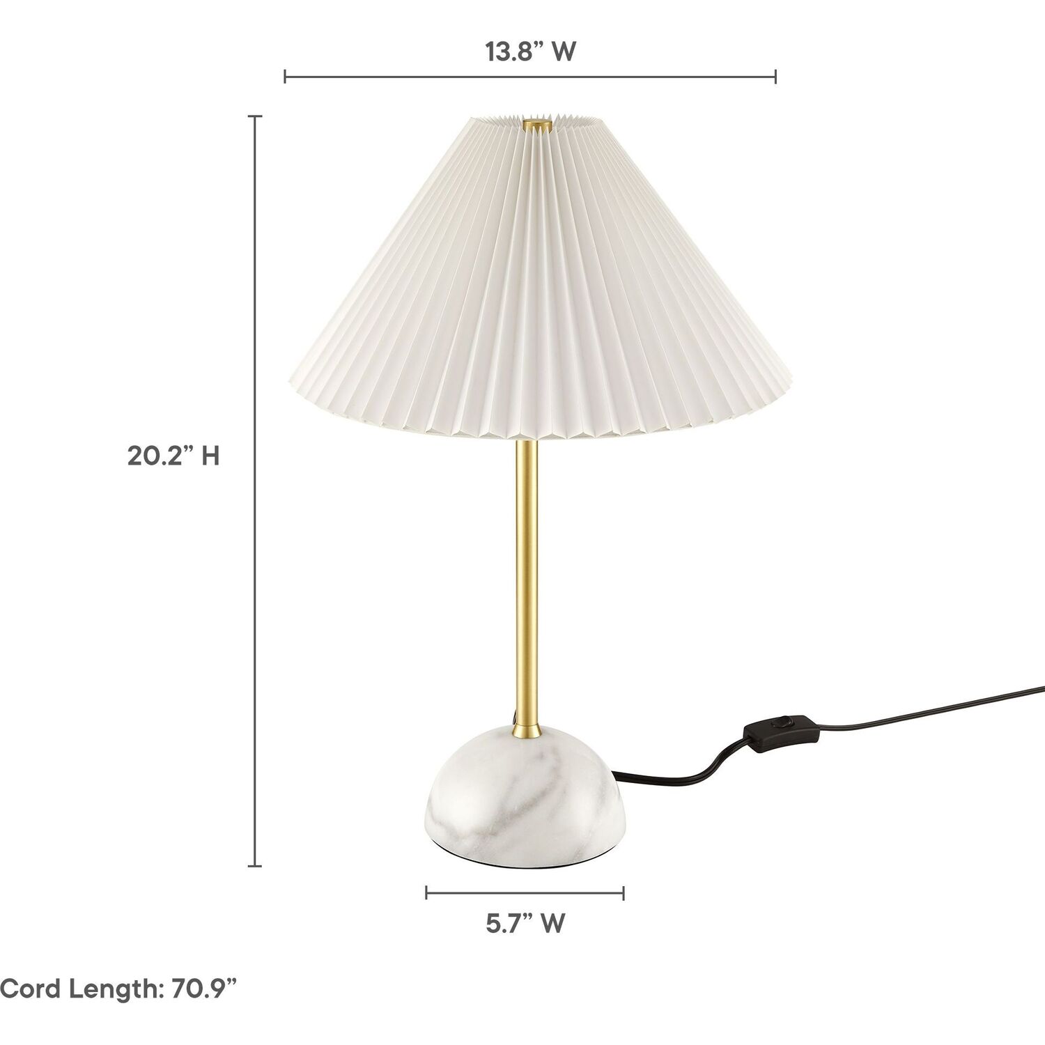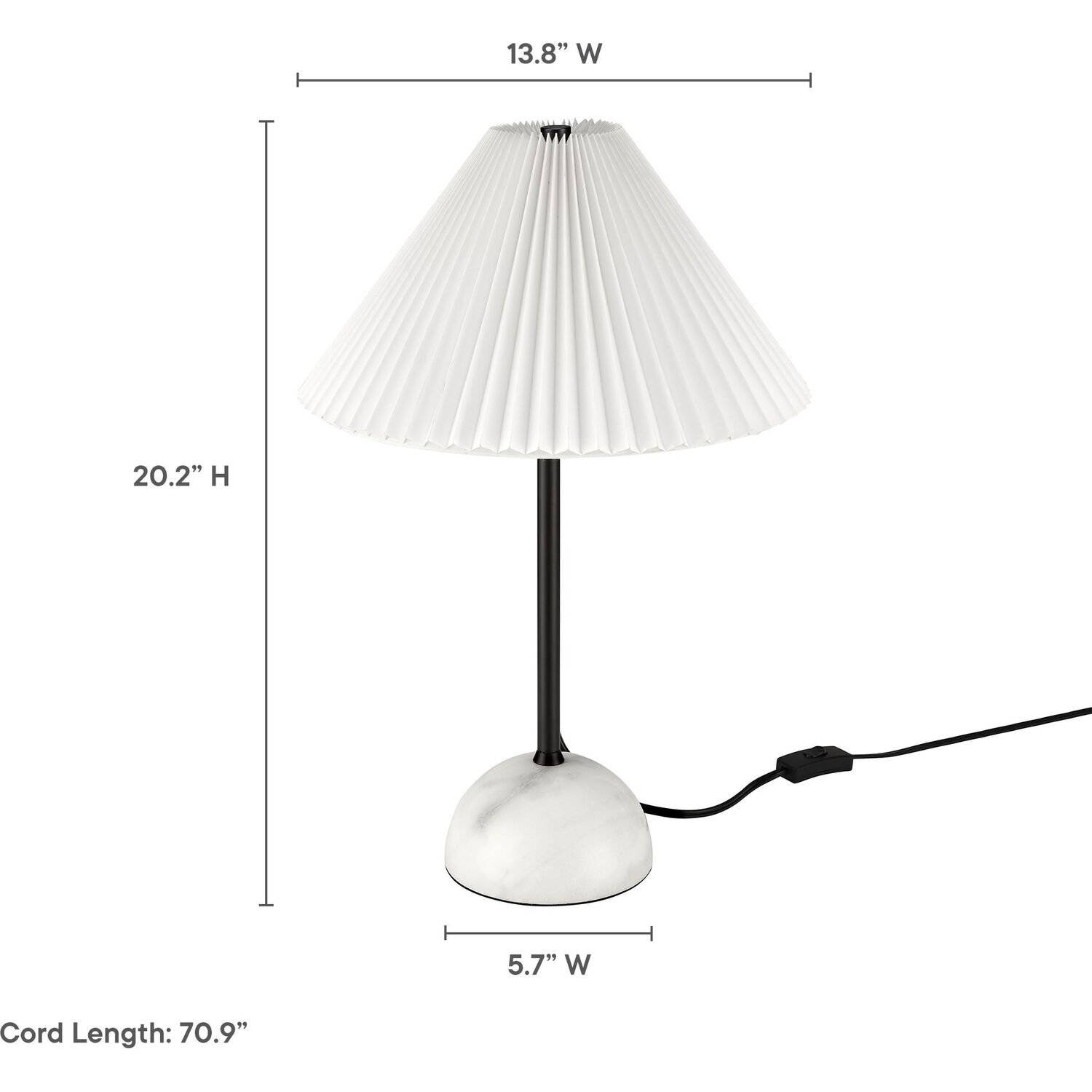Crafted to captivate, the Illusion Table Lamp fuses the raw elegance of a luxe dome marble base with the classic charm of a pleated lamp shade. The understated glow it emits is designed to enhance your room with ambient lighting that’s both soft and inviting. Whether perched on a bedside table or as a statement piece on a side table, office desk, or entryway table, this small table lamp is designed to be a versatile accent light in any setting. The Illusion Marble Base Table Lamp is ETL listed and approved, and operates with a single E26 25W bulb (not included). Features a PVC power cord and a convenient on/off switch. Assembly required.Modern Table Lamp