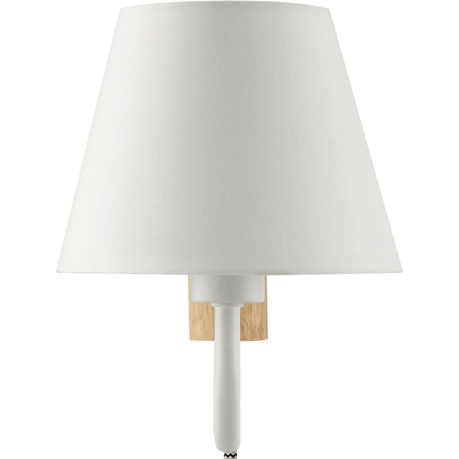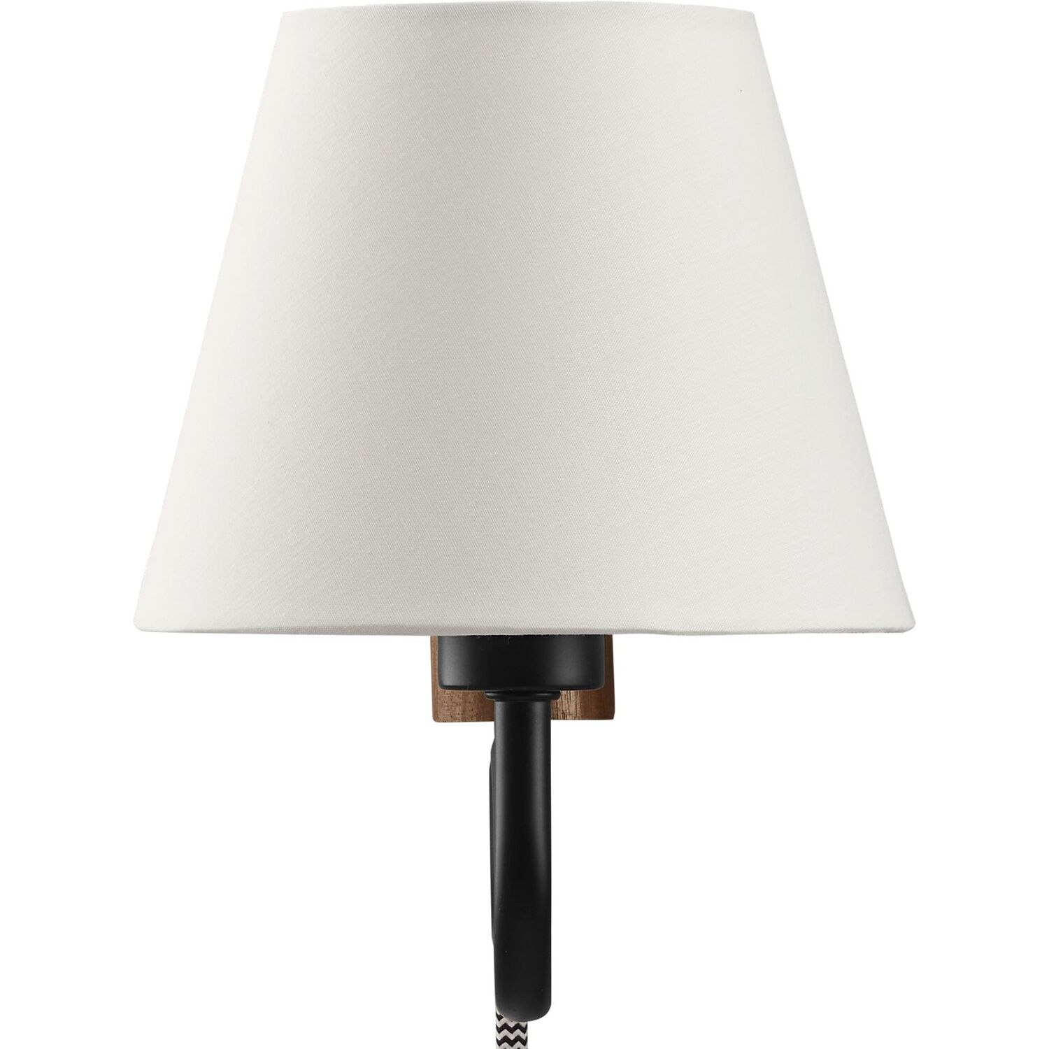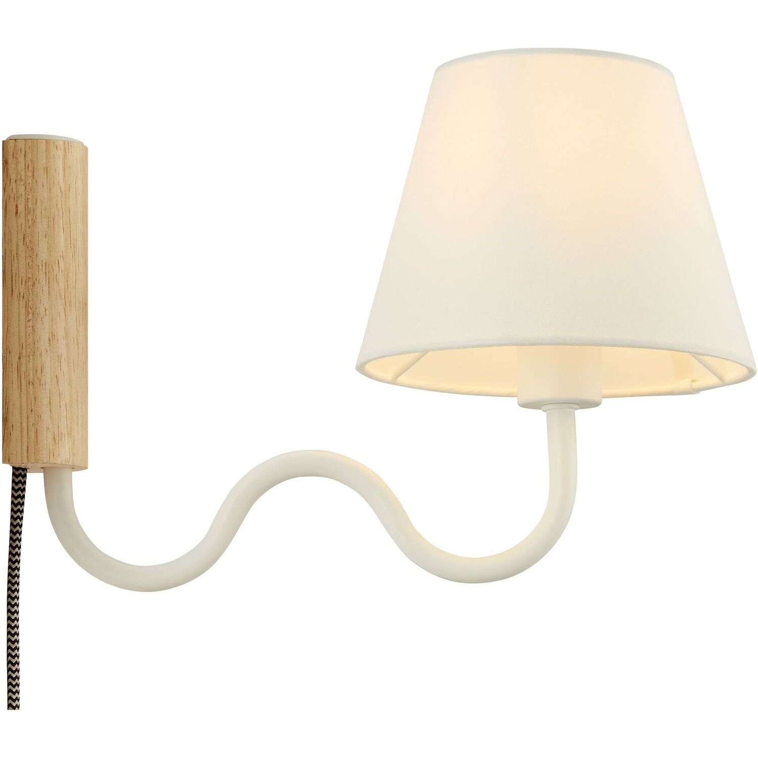 Illuminate your living space with the Sunlit Swivel Wall Sconce. A beautifully crafted wooden backplate anchors the design, offering a touch of natural aesthetics that complements any room. This wall sconce with fabric shade diffuses light to cast a warm, welcoming glow, perfect for a bedroom, living room, lounge space, or hallway. Function meets sophistication in this wall-mounted reading lamp's design, with a 144º swivel that lets you direct light where it's most needed. Conveniently designed, this wall lamp features a plug-in power cord and convenient on/off switch and offers a practical solution to avoid the need for hardwiring. The powder-coated metal rod features an undulating squiggle design reminiscent of ocean waves. Standing as a testament to playful form and modern wall sconce style, the ETL-listed Sunlit Wall Light requires one E12 25W bulb (not included). Assembly required.1-Light Wall Sconce