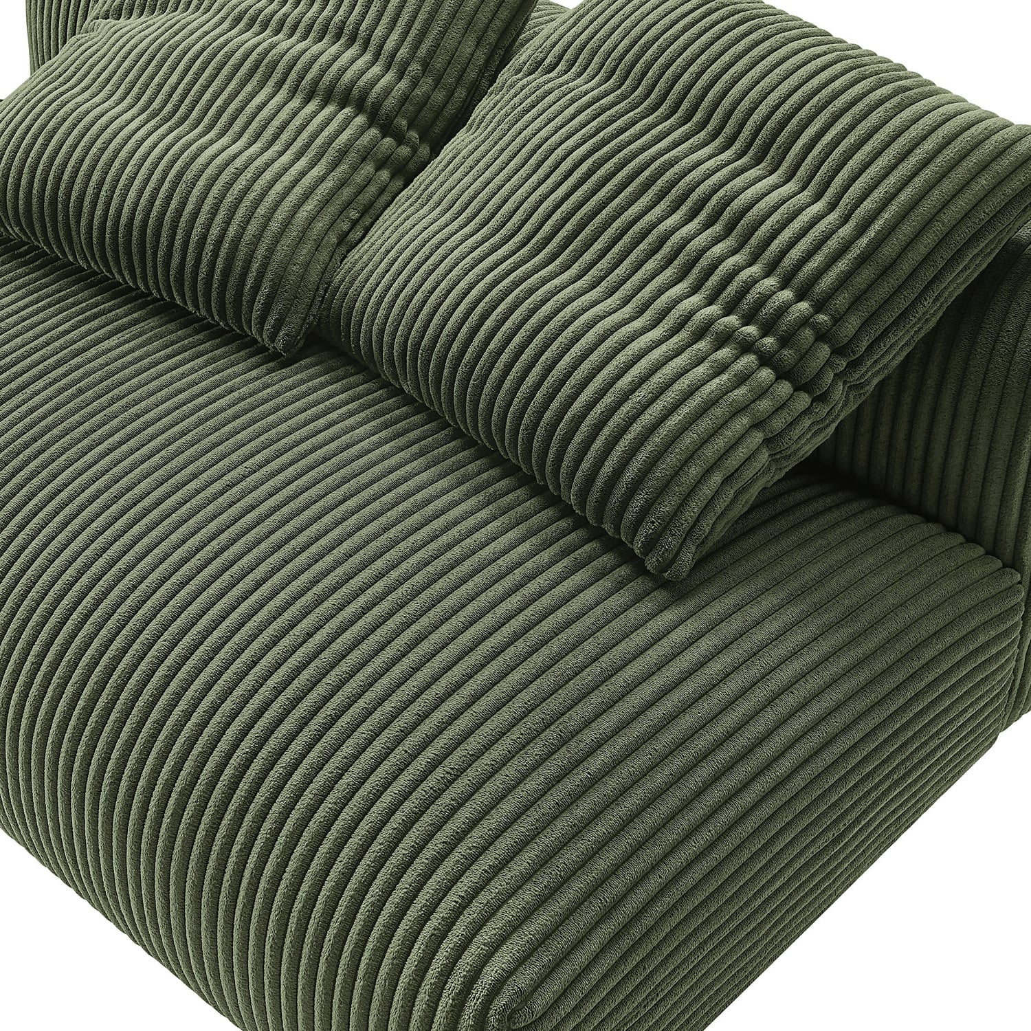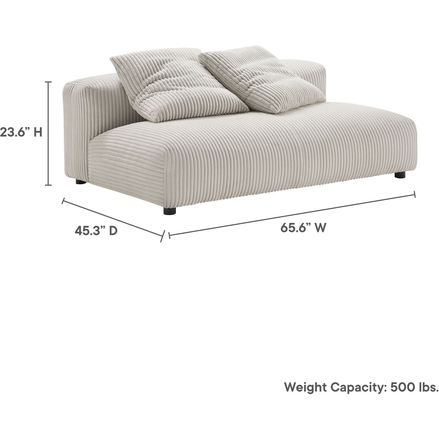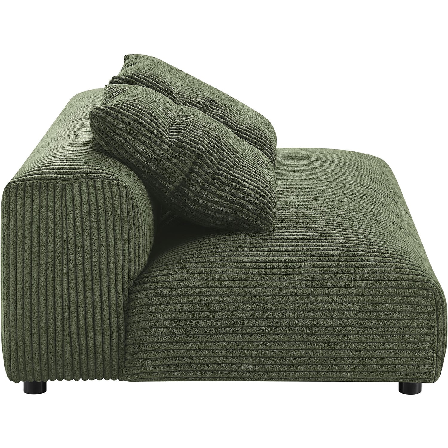 Revel in ultimate comfort and modern style with the Solace Modular Corduroy Loveseat. This oversized corduroy fabric loveseat is perfect for any living room, offering endless flexibility. Its modular furniture design allows you to change the arrangement to suit the needs of the moment or expand your seating by adding more pieces in the future. Featuring a sturdy frame, dense foam padding, and a sinuous spring support system, the Solace Armless Loveseat grants a premium seating experience. The comfy corduroy upholstery adds a cozy, casual vibe, making this modular loveseat a perfect addition to any living space or lounge area. Equipped with non-marking plastic glides and complementing accent pillows, this corduroy modern loveseat sofa couch is both stylish and practical. With easy assembly required, you can enjoy immediate relaxation on this upholstered loveseat. Weight Capacity: 800 lbs.Modular Armless Loveseat