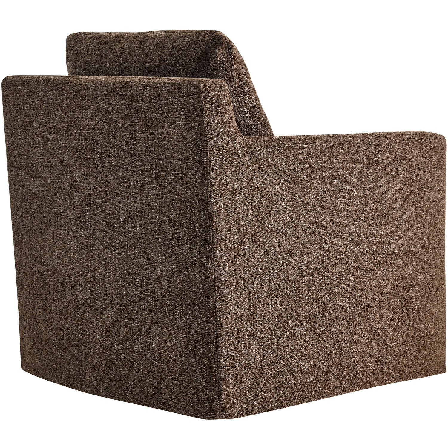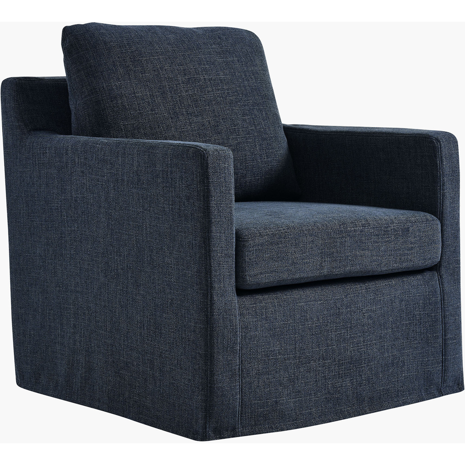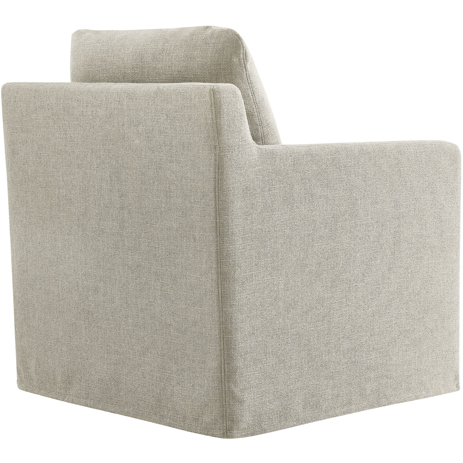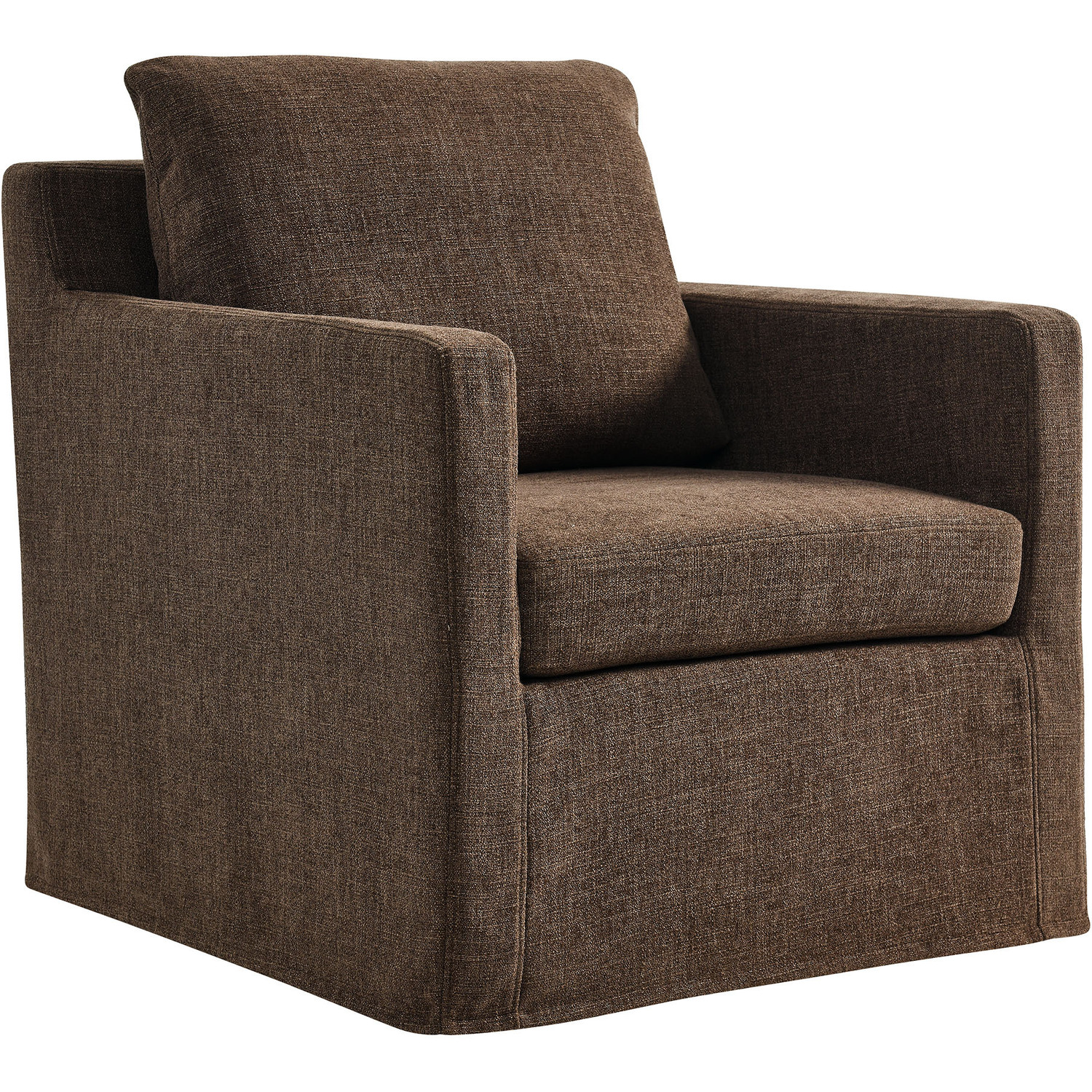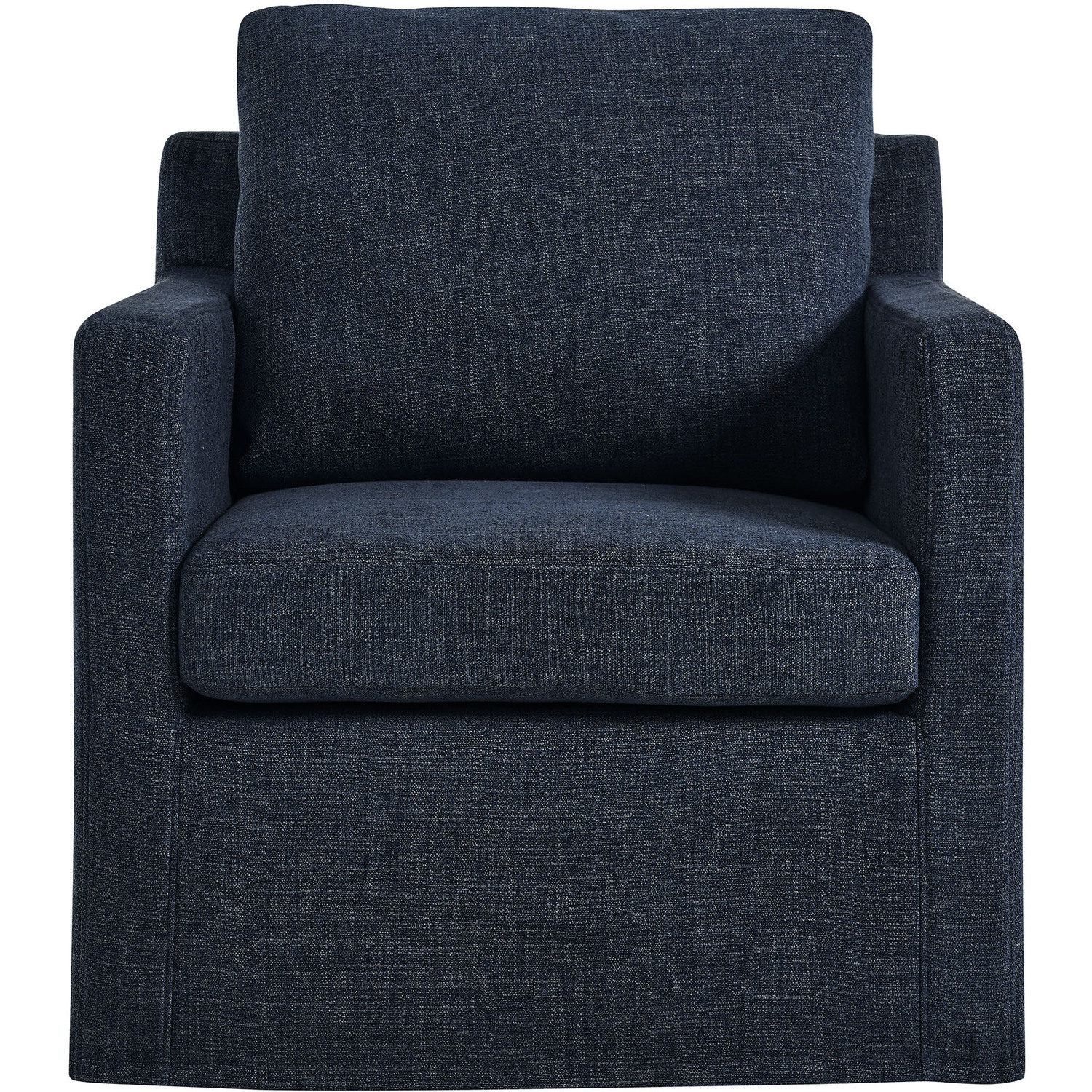 The Serene Slipcovered Swivel Armchair seamlessly combines modern elegance with superior comfort. Upholstered in premium fabric, this upholstered accent chair features a removable, washable slipcover, making cleaning and maintenance a breeze. The swivel chair’s crisp lines and tailored profile enhance any decor style, fitting well in both home and office environments. Enjoy a smooth 360-degree swivel with this modern fabric chair, supported by a robust yet discreet iron base with non-marking floor glides to protect your floors. Dense foam padding and removable cushions provide luxurious comfort and support. Perfect as a stylish accent piece, this slipcovered armchair is a versatile and functional addition to any space in your home. Whether used as an accent chair for bedroom or swivel chair for living room, it showcases a chic and modern look with its polyester upholstery and generous cushioning. Assembly required. Weight Capacity: 330 lbs.Modern Swivel Armchair