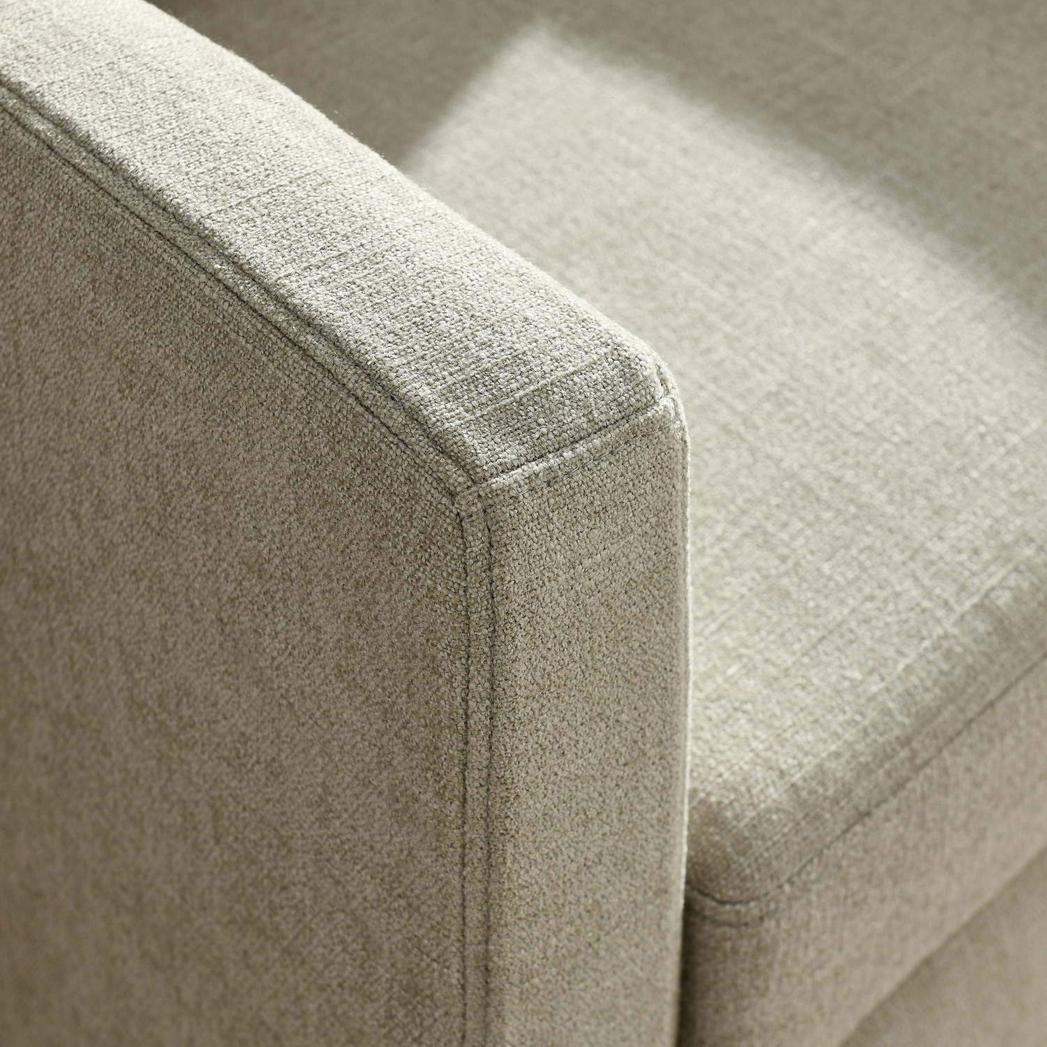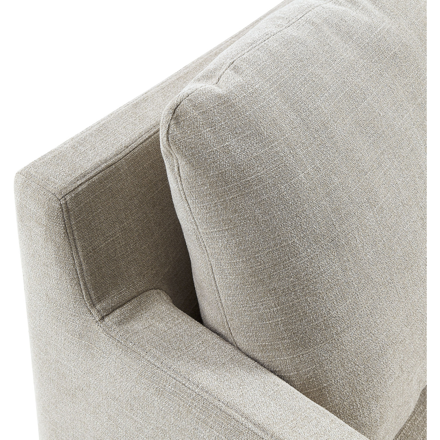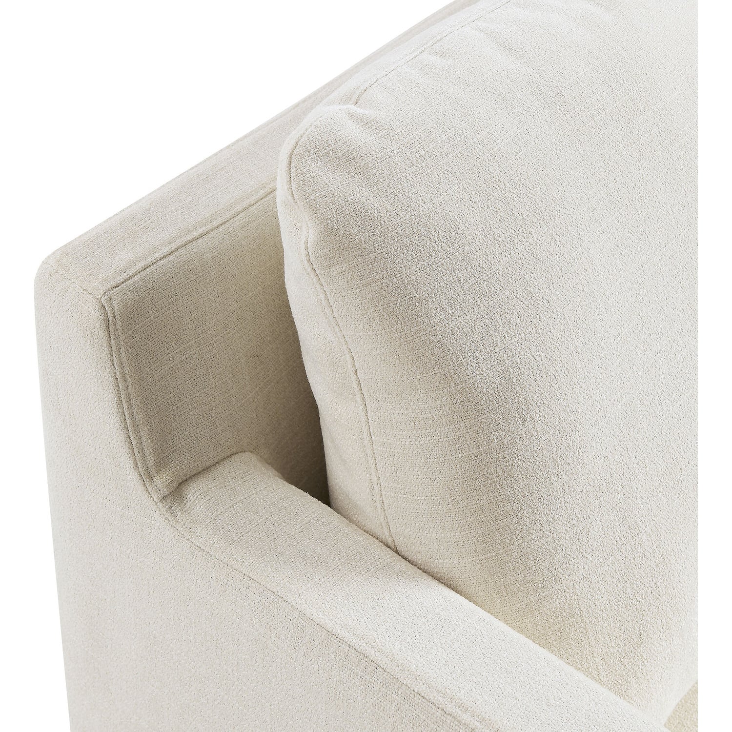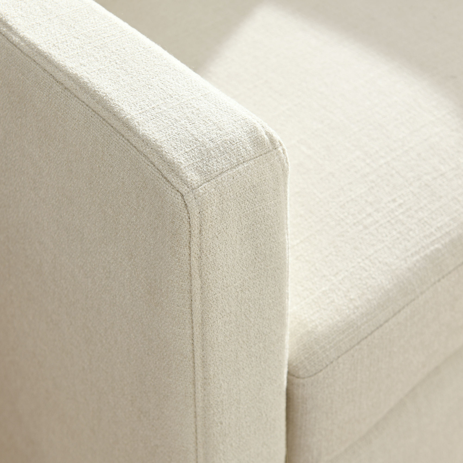 The Serene Slipcovered Swivel Armchair seamlessly combines modern elegance with superior comfort. Upholstered in premium fabric, this upholstered accent chair features a removable, washable slipcover, making cleaning and maintenance a breeze. The swivel chair’s crisp lines and tailored profile enhance any decor style, fitting well in both home and office environments. Enjoy a smooth 360-degree swivel with this modern fabric chair, supported by a robust yet discreet iron base with non-marking floor glides to protect your floors. Dense foam padding and removable cushions provide luxurious comfort and support. Perfect as a stylish accent piece, this slipcovered armchair is a versatile and functional addition to any space in your home. Whether used as an accent chair for bedroom or swivel chair for living room, it showcases a chic and modern look with its polyester upholstery and generous cushioning. Assembly required. Weight Capacity: 330 lbs.Modern Swivel Armchair