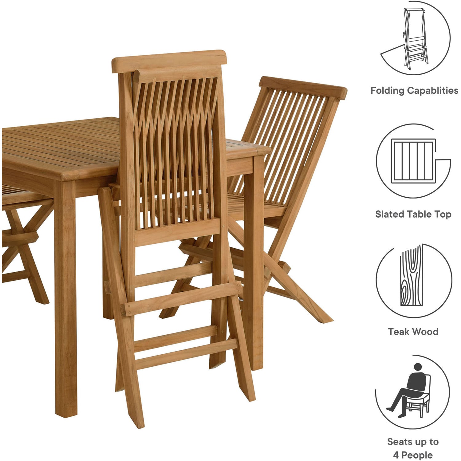 Modway Furniture Vienna 5-Piece Outdoor Patio Teak Wood Dining Set with Folding Chairs by Modway, 889654177906, EEI-6931