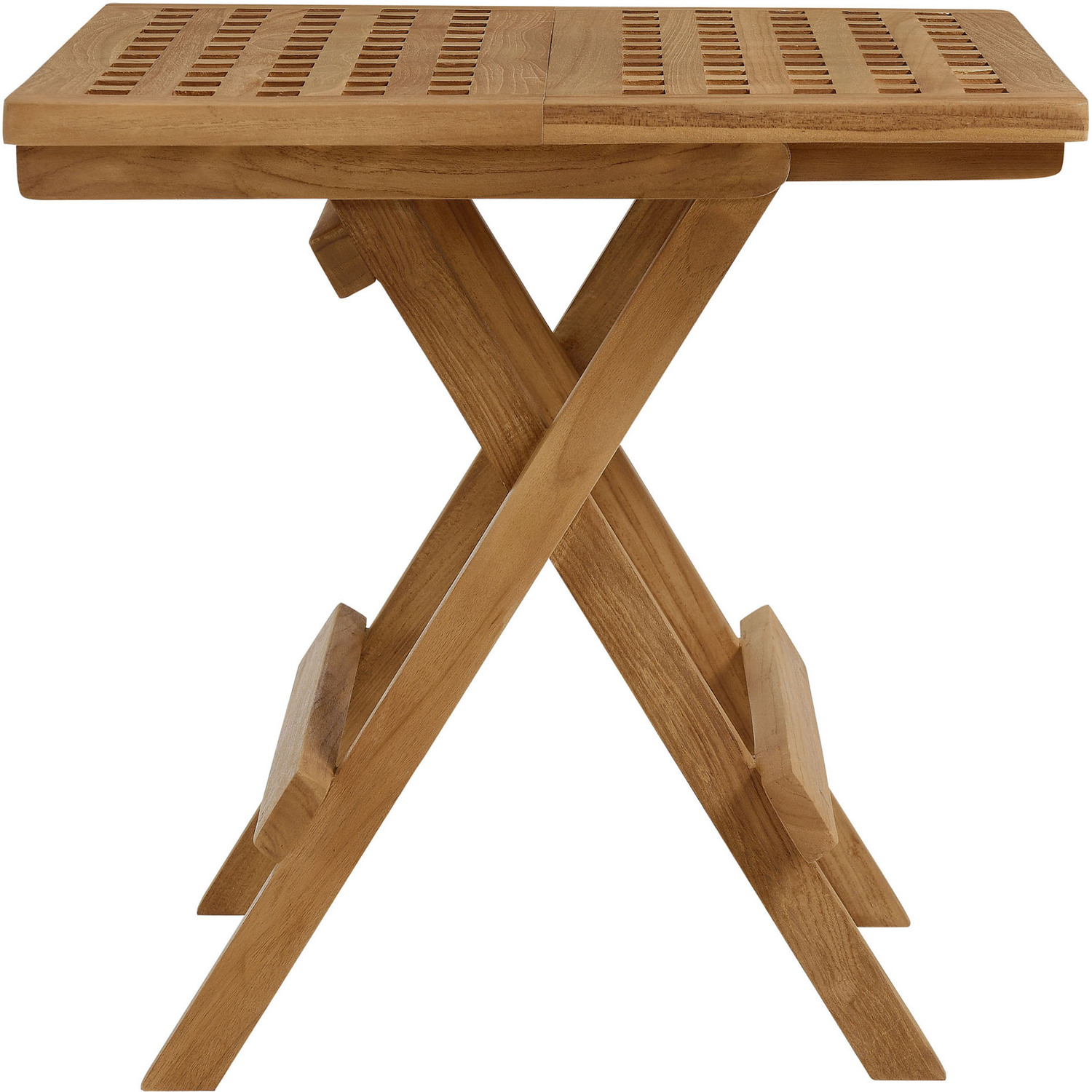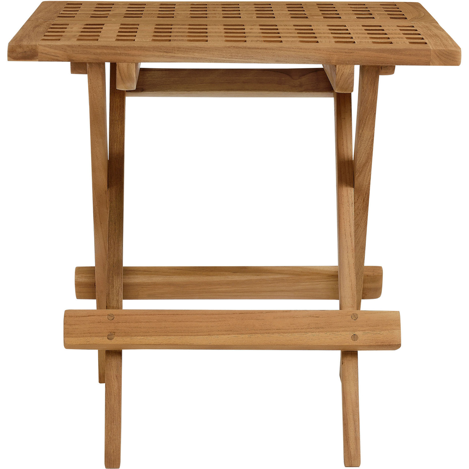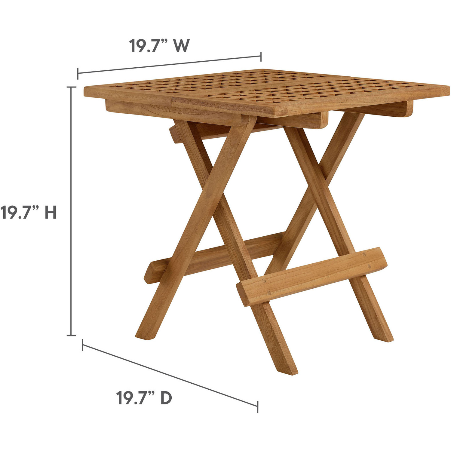 Refresh your outdoor lounging experience with the Vienna 3-Piece Patio Set. This modern outdoor patio set includes a solid teak wood square side table and 2 armchairs, perfect for relaxing moments for two. The naturally weather-resistant teak outdoor end table features a unique square-grid top and is conveniently foldable, while the wood armchairs are woven with high-quality nylon rope, adding a contemporary and cohesive look to this balcony table and chairs set. Whether used on its own or mixed with other outdoor patio furniture, this 3 piece outdoor patio furniture set blends effortlessly, complementing a diverse range of al fresco spaces. Assembly required.Foldable Square Side Table