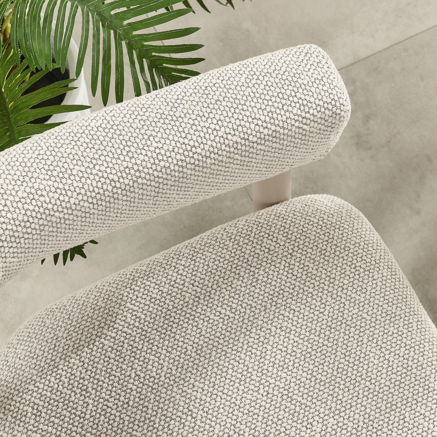 Elevate your outdoor space with the Nautica Modern Contemporary Patio Dining Armchairs Set of 2. Crafted from powder-coated metal, these aluminum outdoor dining chairs combine durability with sleek design. The curved back and sleek tubular frame offer a perfect blend of comfort and style, making them standout patio chairs in any setting. Designed for all weather conditions, these outdoor dining chairs feature quick-drying dense foam padding and water-resistant fabric upholstery. Non-marking plastic foot glides protect your flooring, making these aluminum outdoor chairs ideal for any surface. Whether you need seating for your outdoor dining table, balcony, or stylish patio setup, the Nautica Fabric Upholstered Metal Armchairs Set of 2 is your go-to choice for exceptional outdoor seating. Enhance your patio, porch, or garden with this versatile aluminum patio furniture collection, and enjoy comfort and style all year round. No assembly required. Weight Capacity of each aluminum patio chair : 300 lbs.Powder-Coated Aluminum Frame