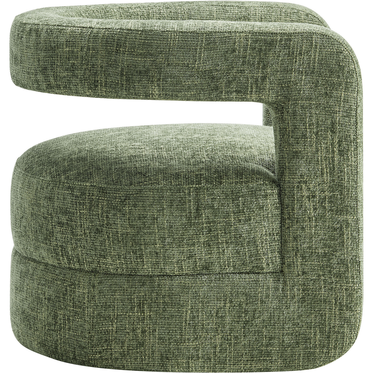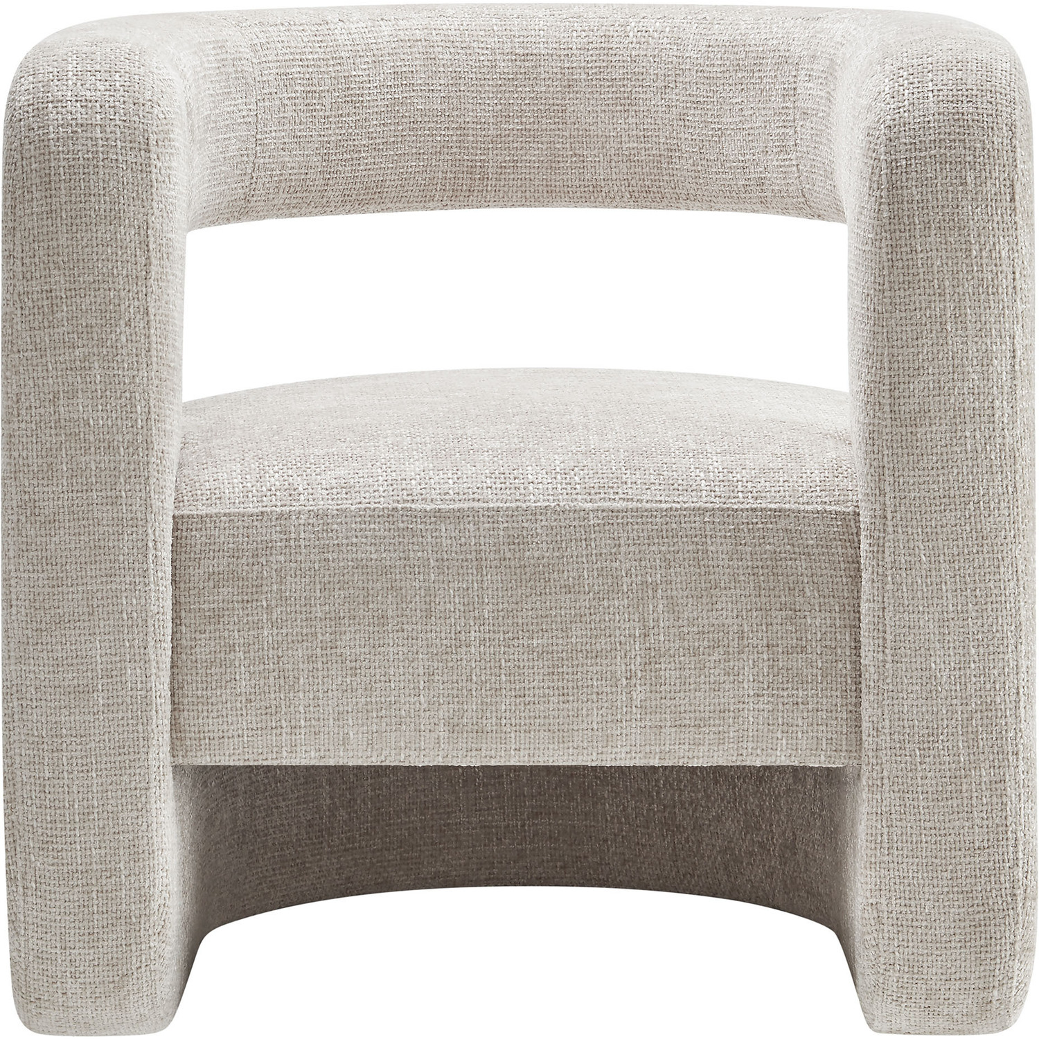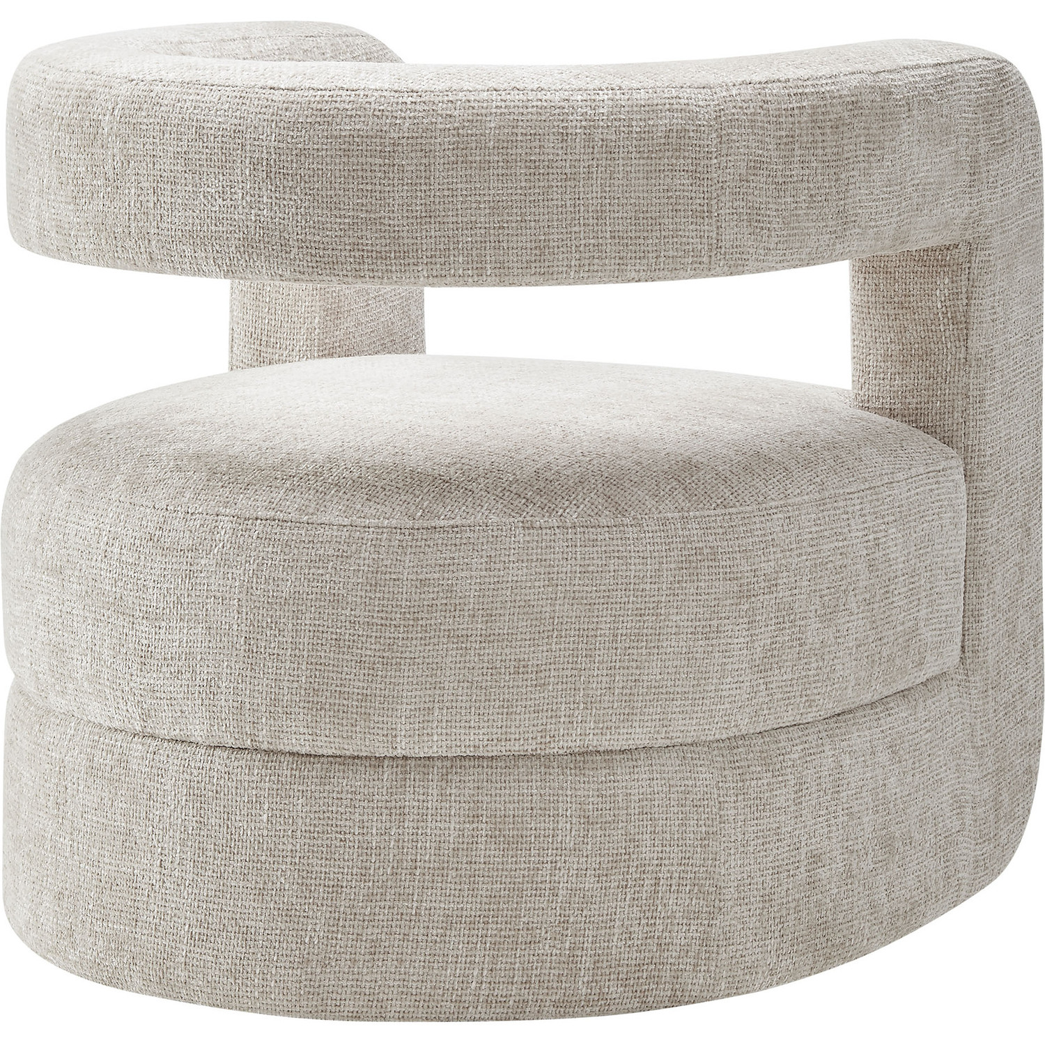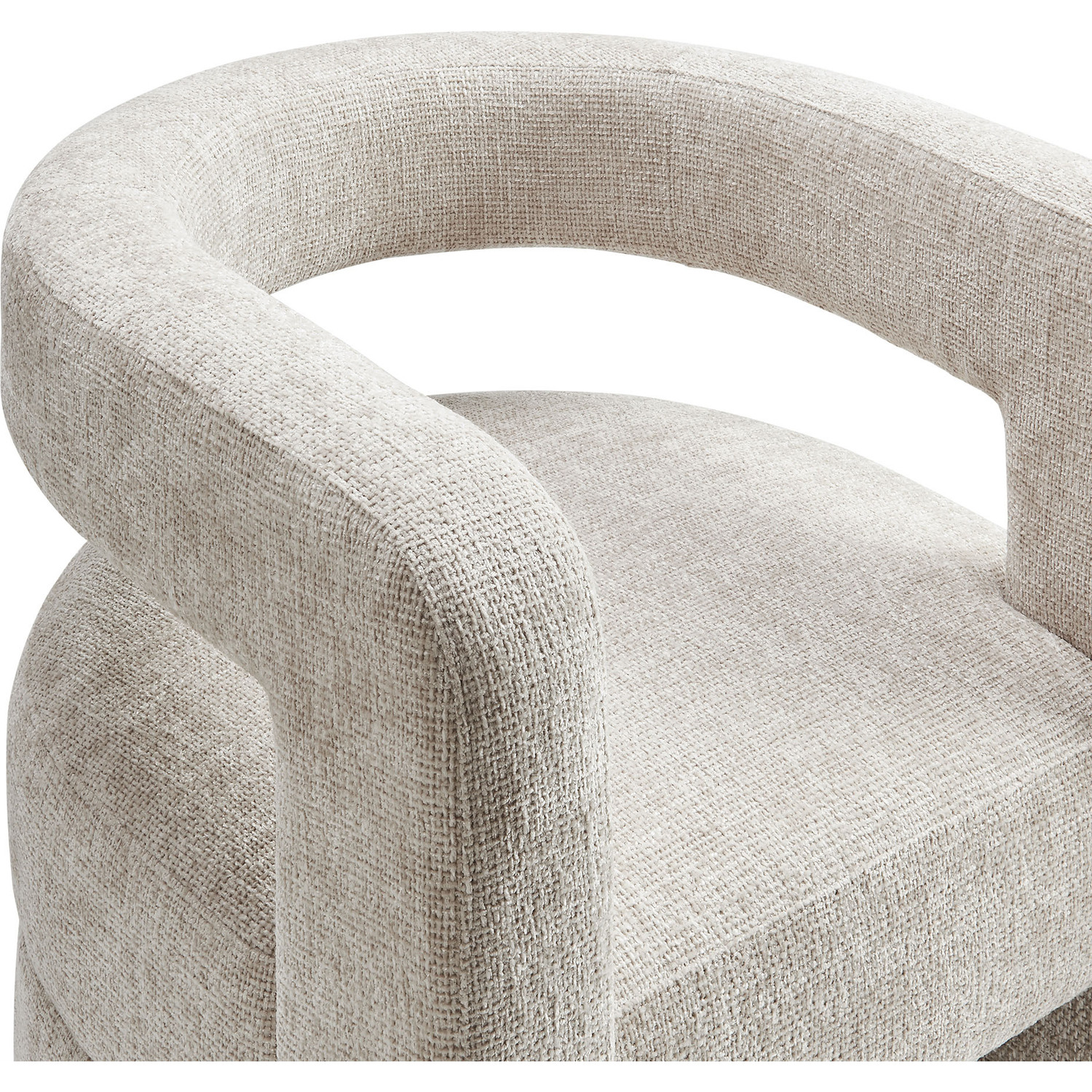 Redefine your decor with the chic and contemporary Jaylin Chenille Accent Chair. Its striking U-shaped frame makes this unique barrel chair an eye-catching addition to any space. The open-back design and thick, curved arms create a distinctive floating appearance that is both contemporary and inviting, while its plush circular seat nestles perfectly within the rounded frame. Padded with dense foam and covered in luxurious chenille fabric, this wide armchair has sinuous spring support, for a durable and cozy seating experience. Featuring non-marking foot pins that protect your floors, this round accent chair arrives fully assembled. Whether used as a bedroom accent chair, a cozy reading chair, or a living room single sofa chair, the Jaylin Chenille U Shaped Club Chair complements various decor themes with its versatile elegance. Weight Capacity: 330 lbs.Chenille Upholstery